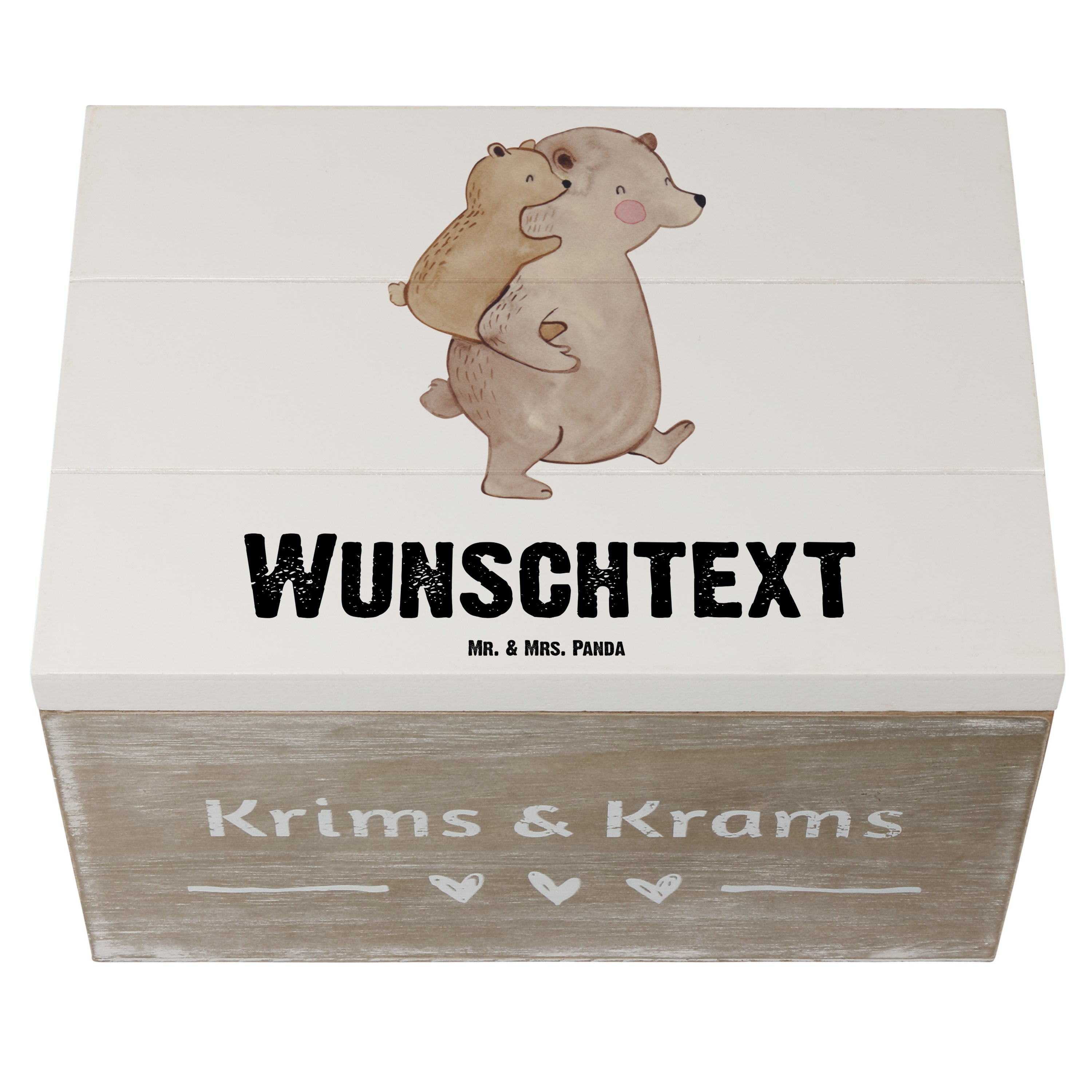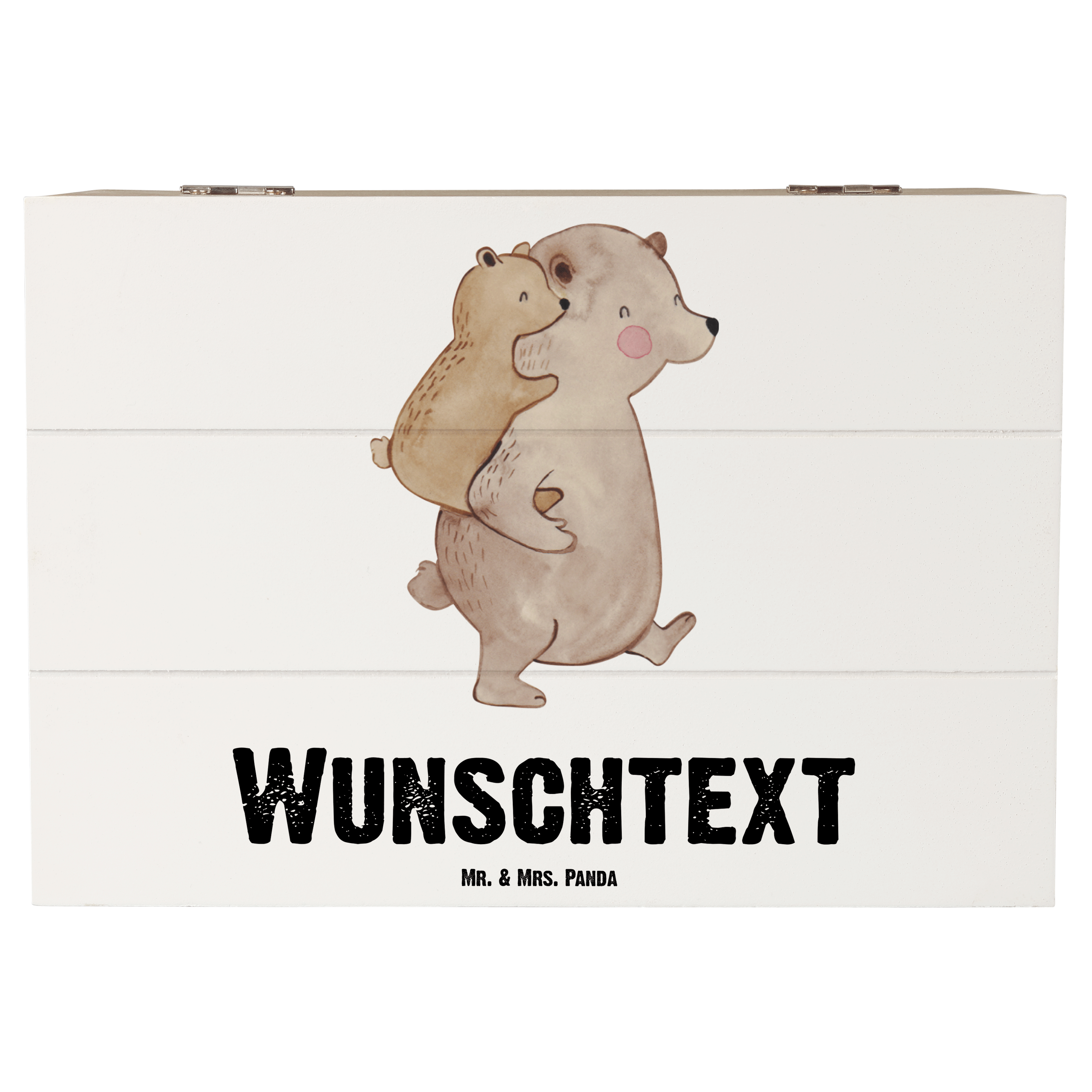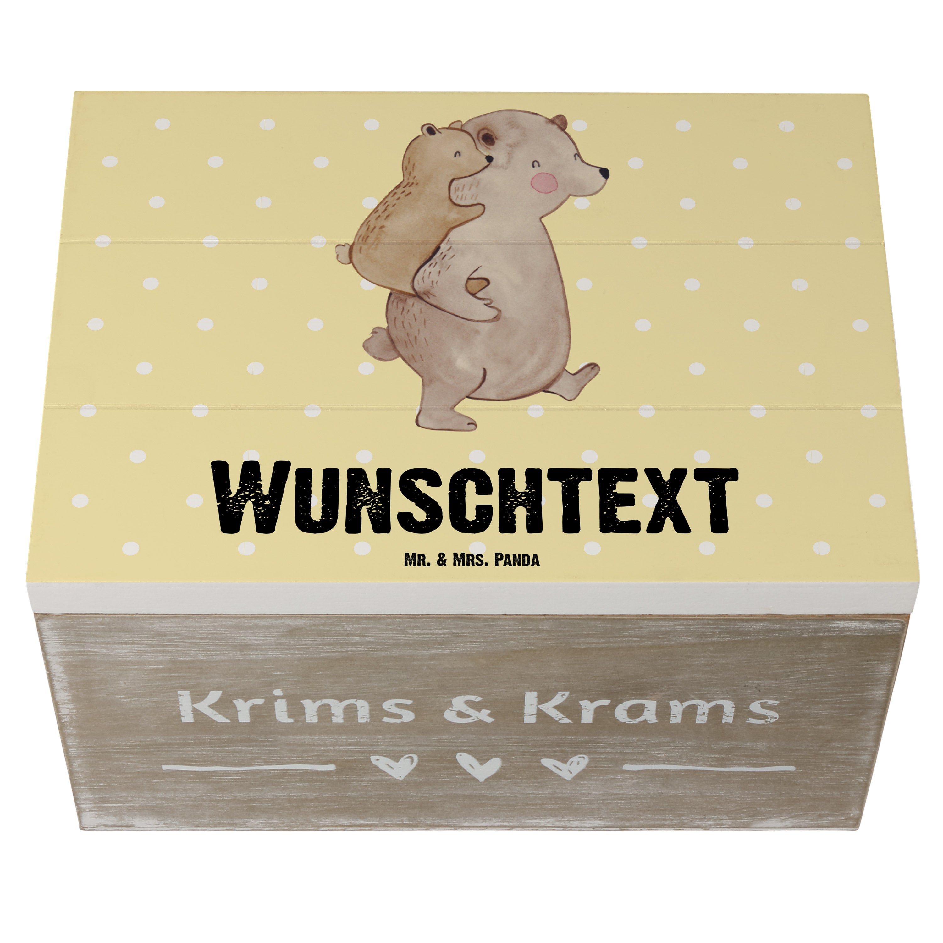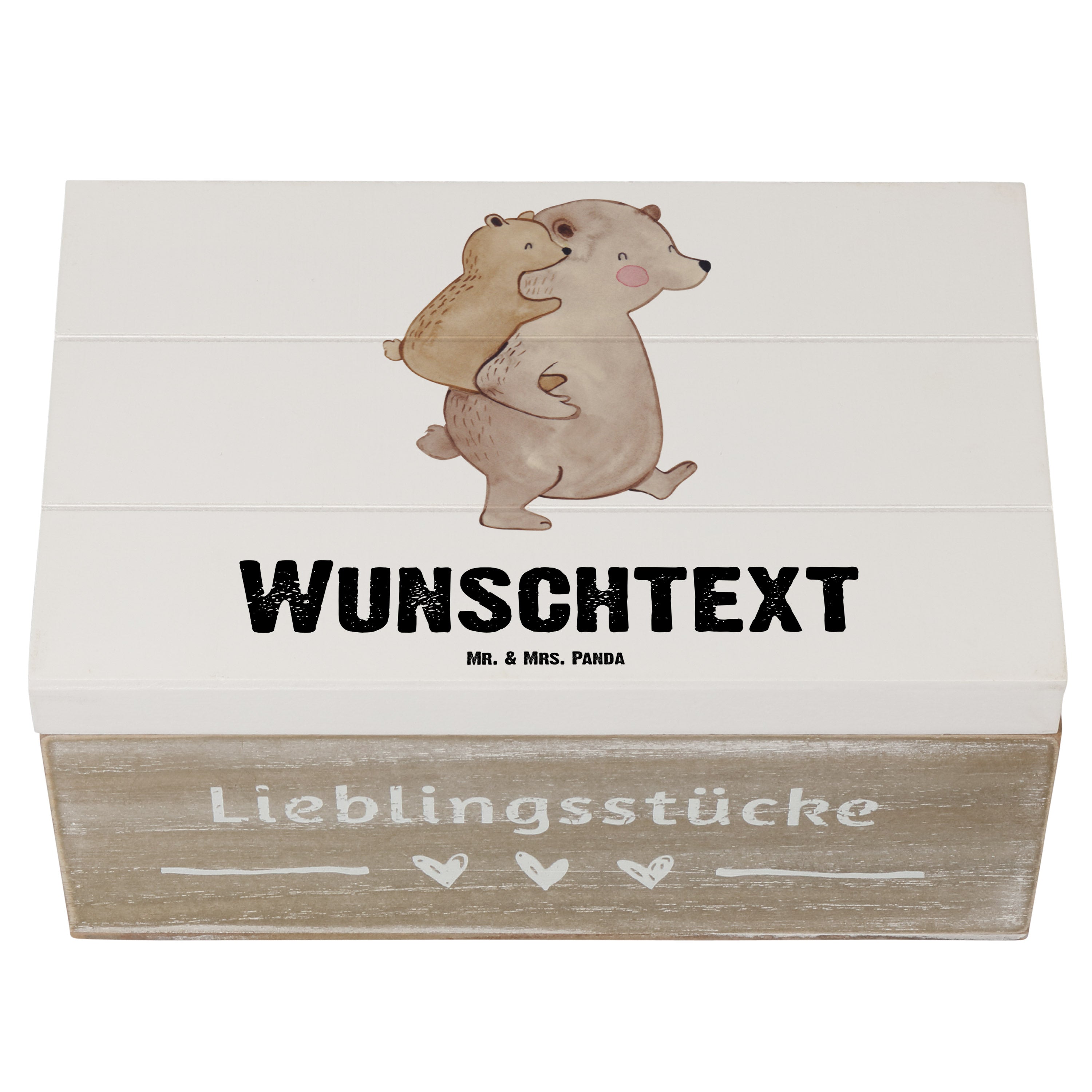 Personalisierte Holzkiste Papa Bär - Grau Pastell - 19 x 12 cm