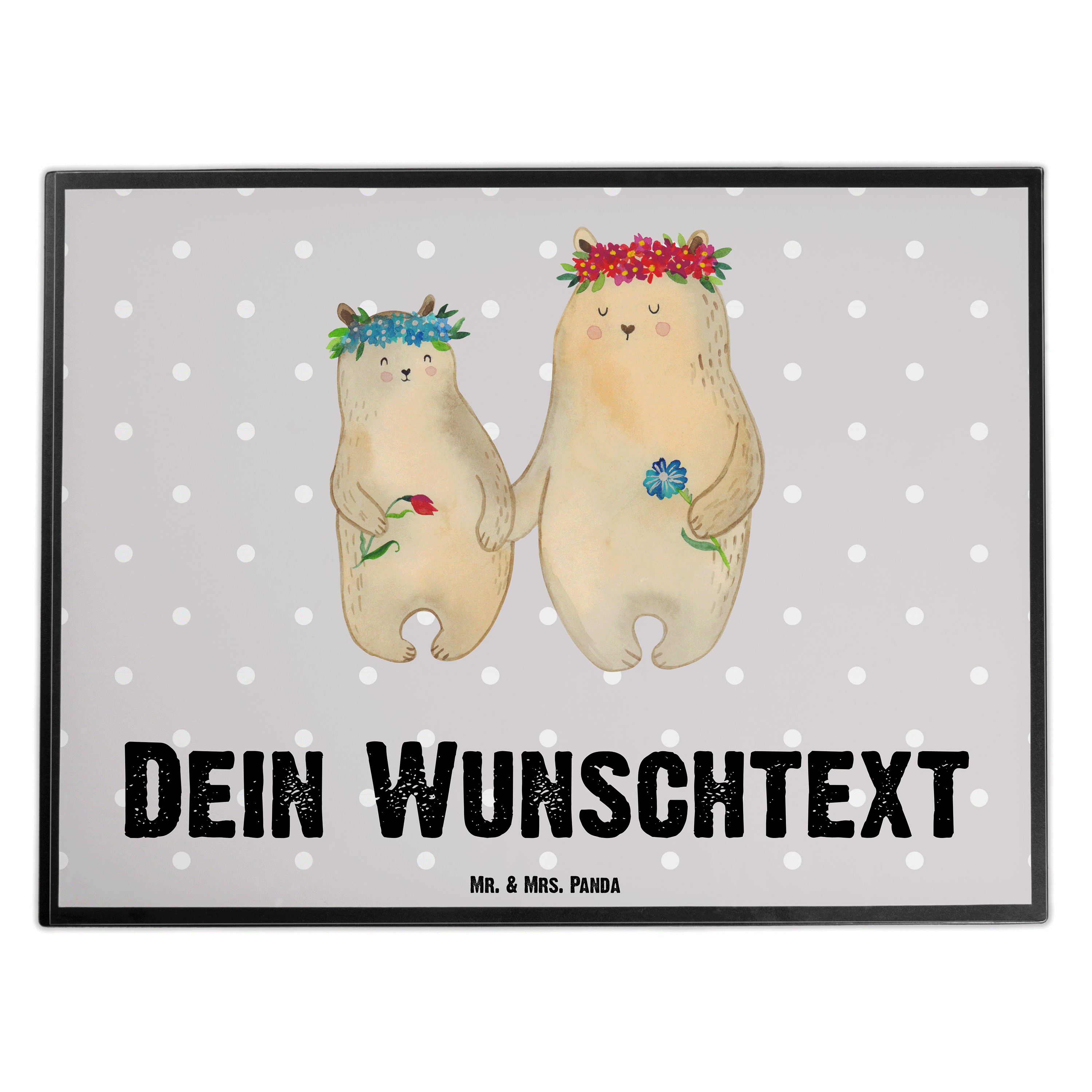 Personalisierte Schreibtischunterlage Bären mit Blumenkranz - Blau Pastell