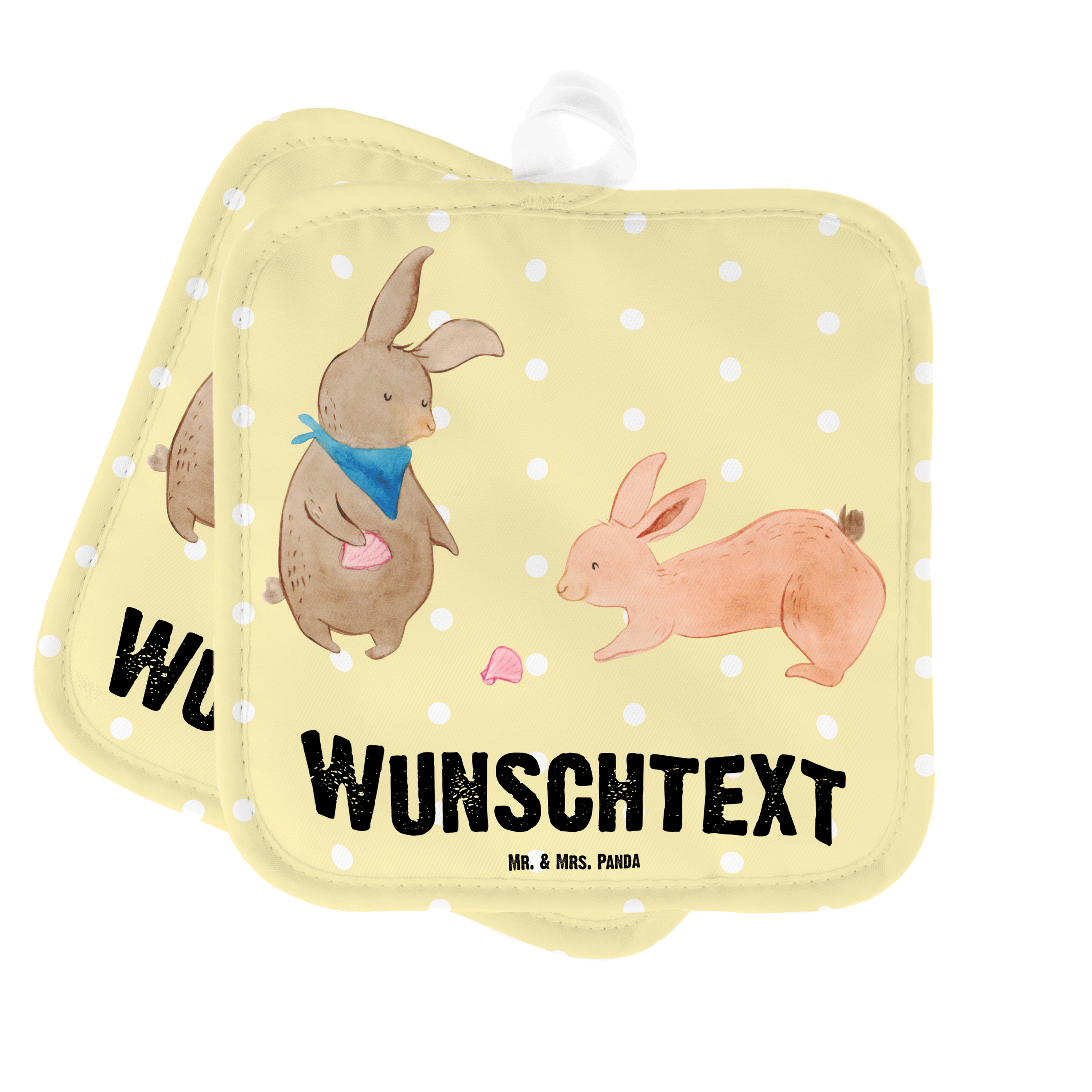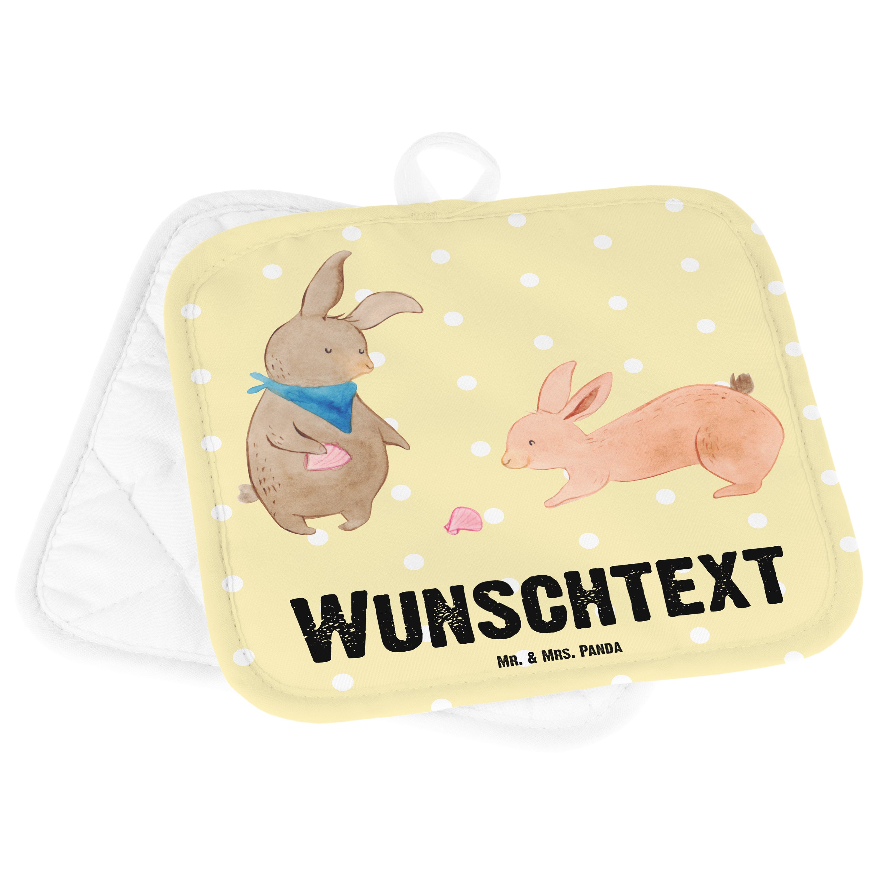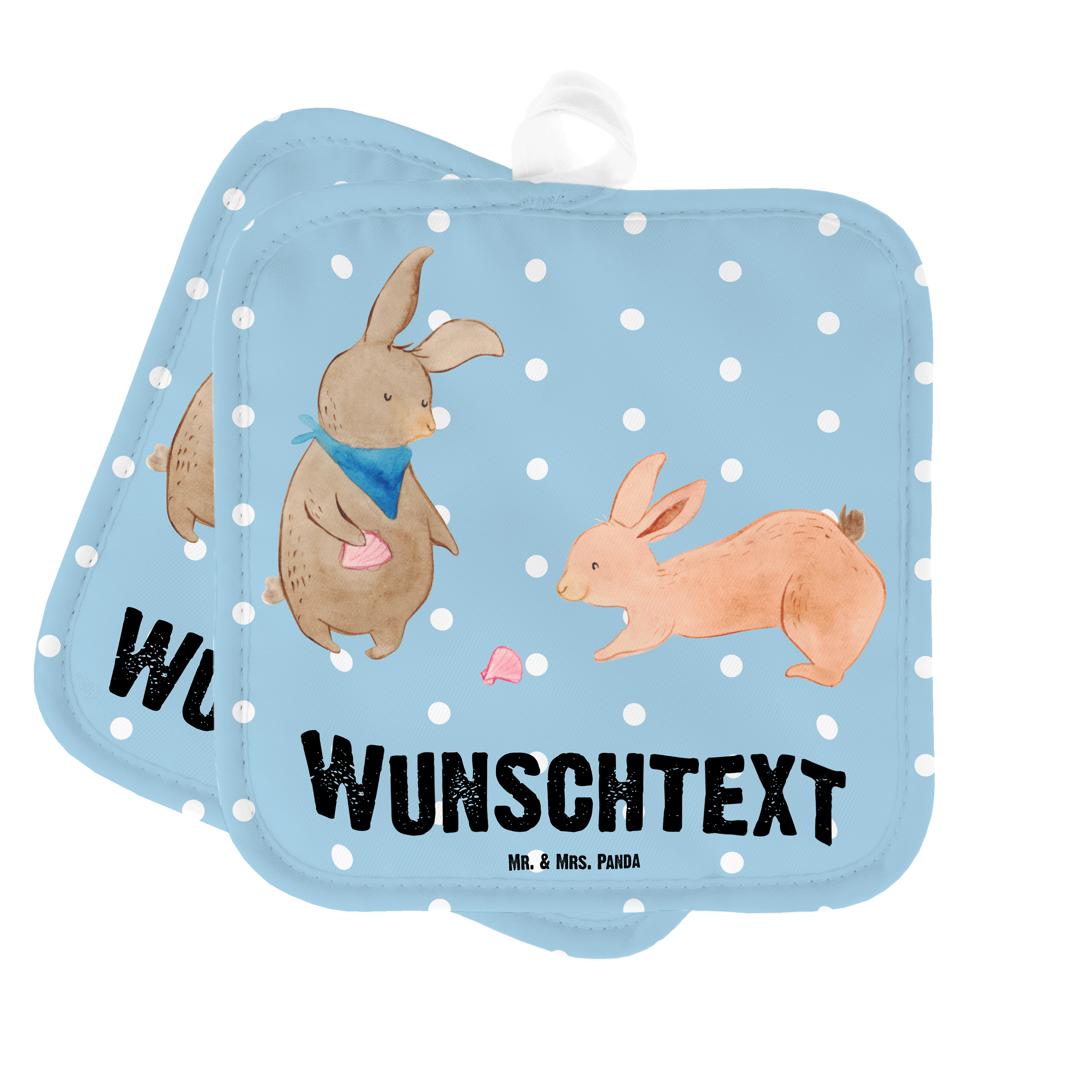 Personalisierte Topflappen Hasen Muschel - Grau Pastell