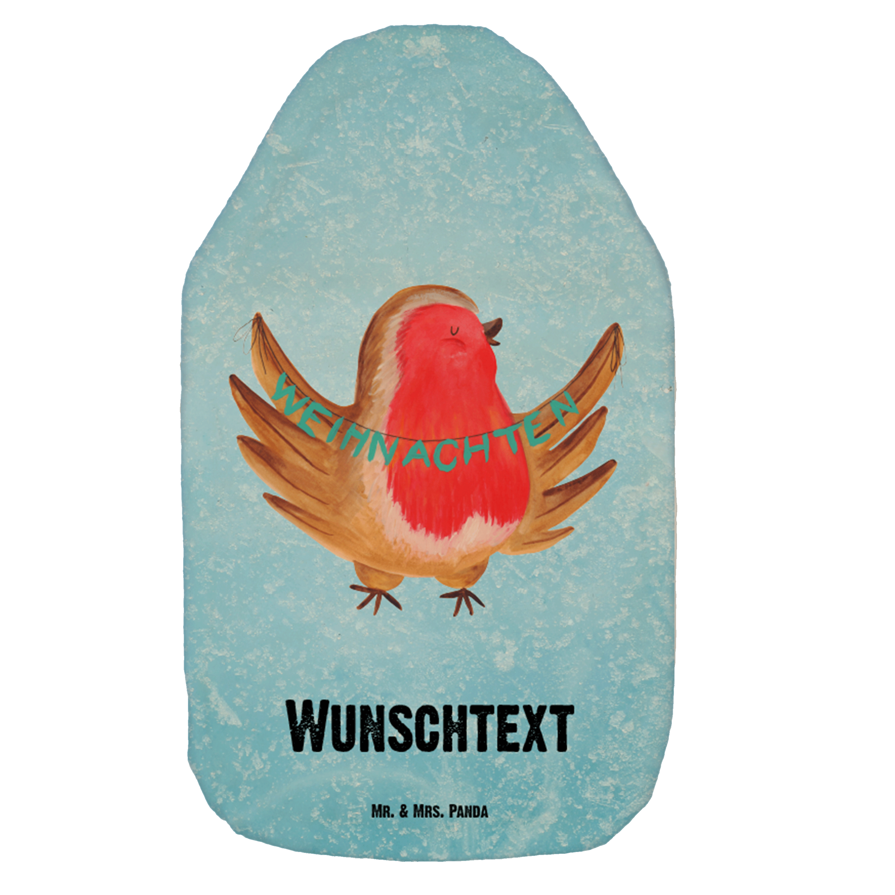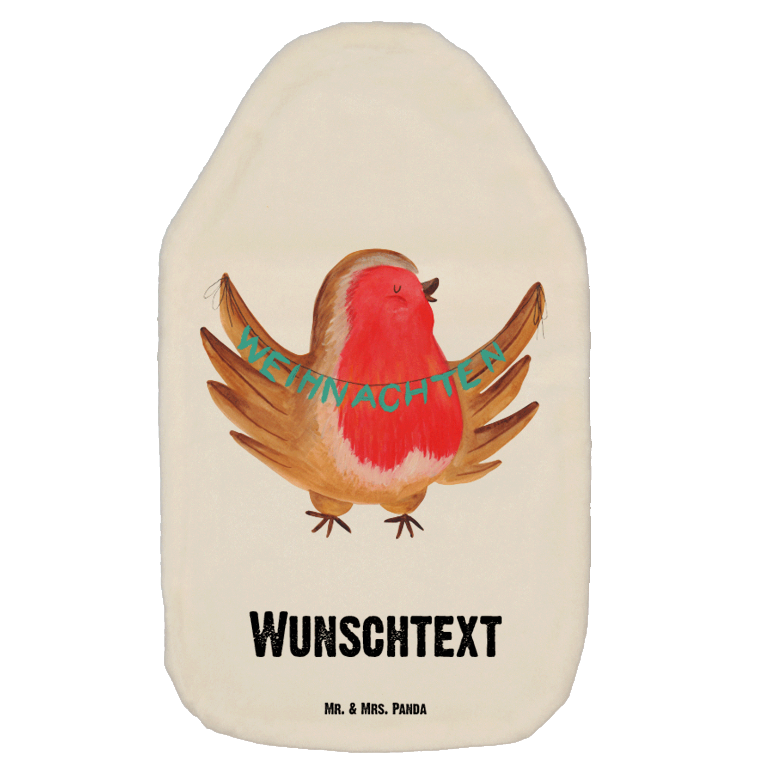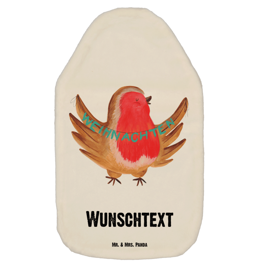 Personalisierte Wärmflasche Rotkehlchen Weihnachten - Weiß