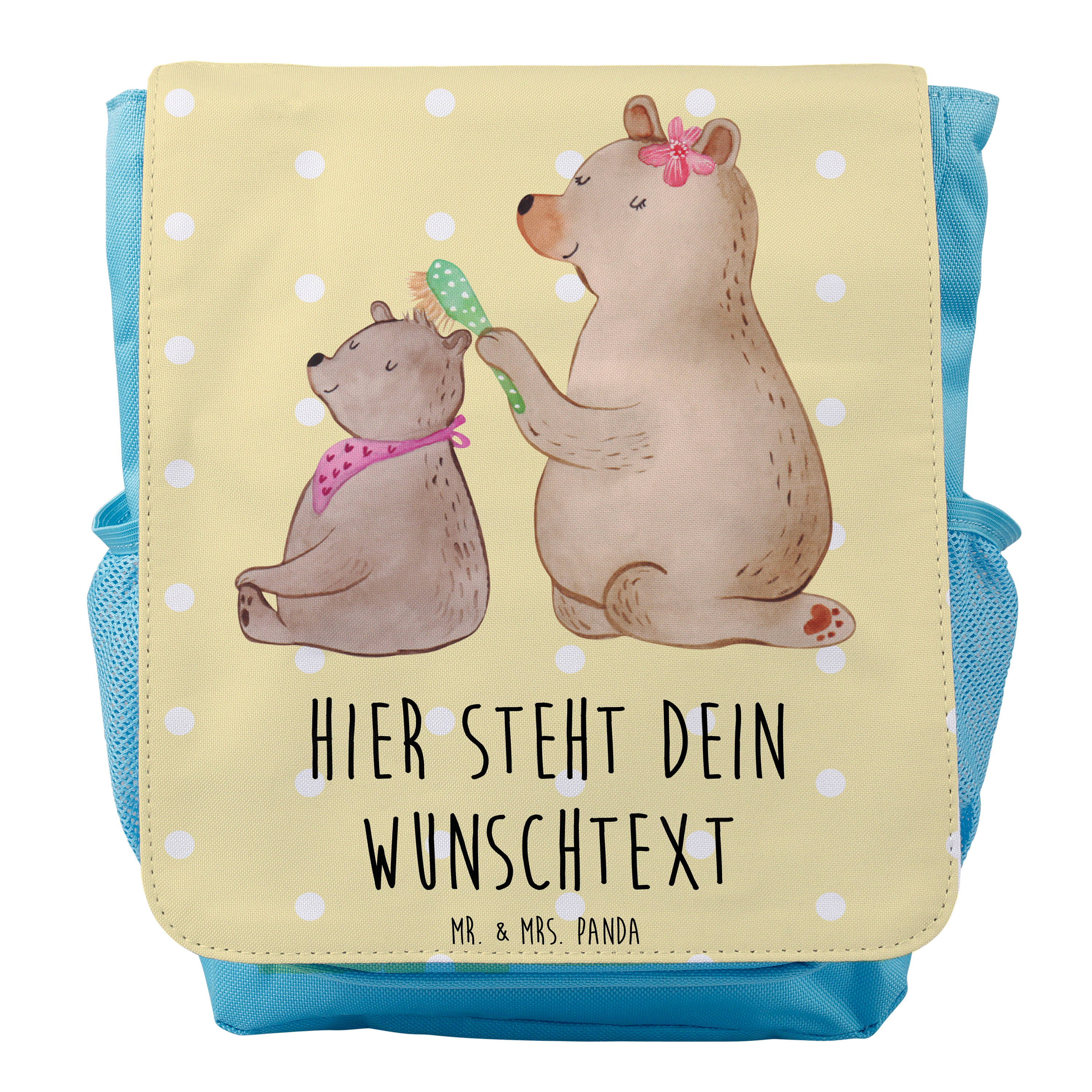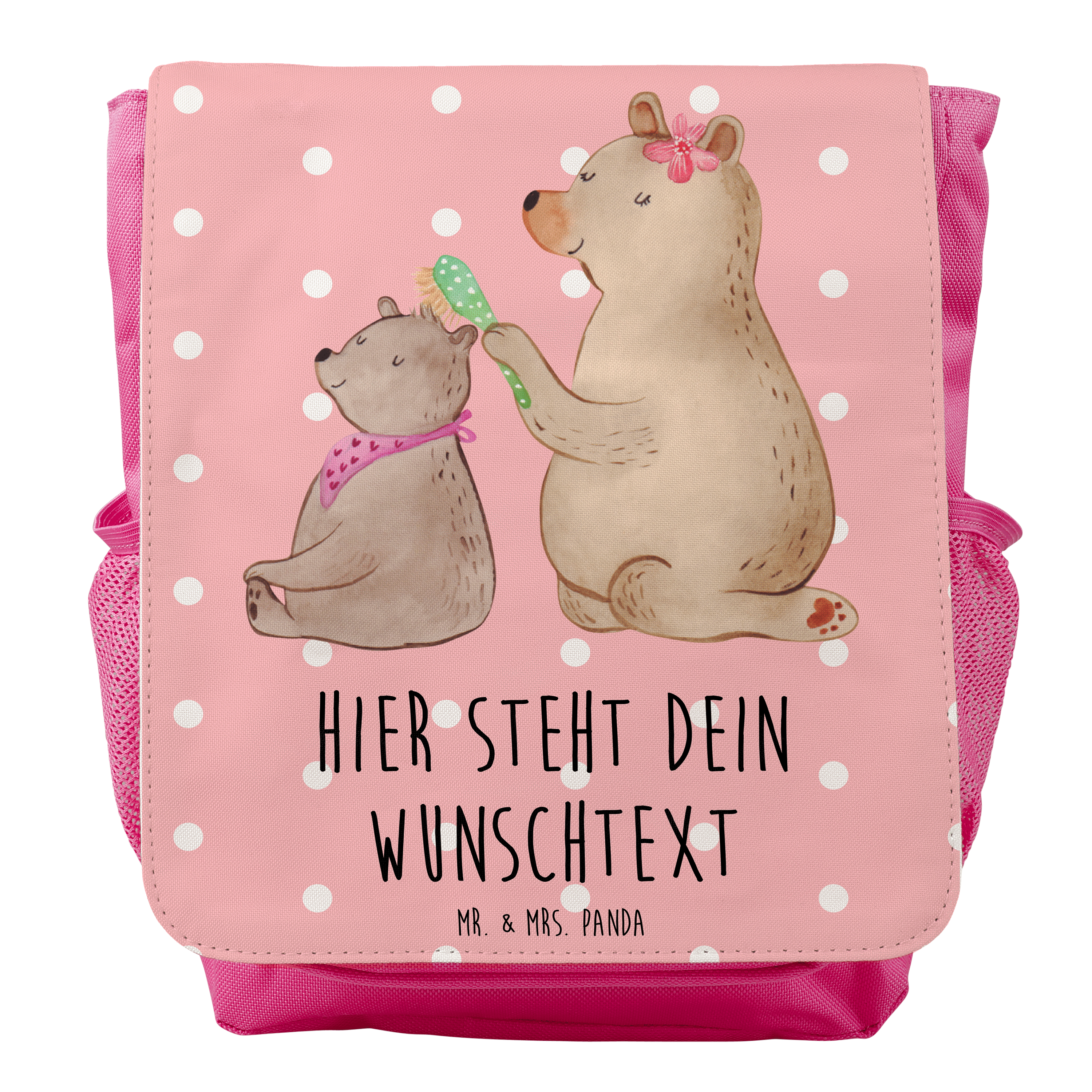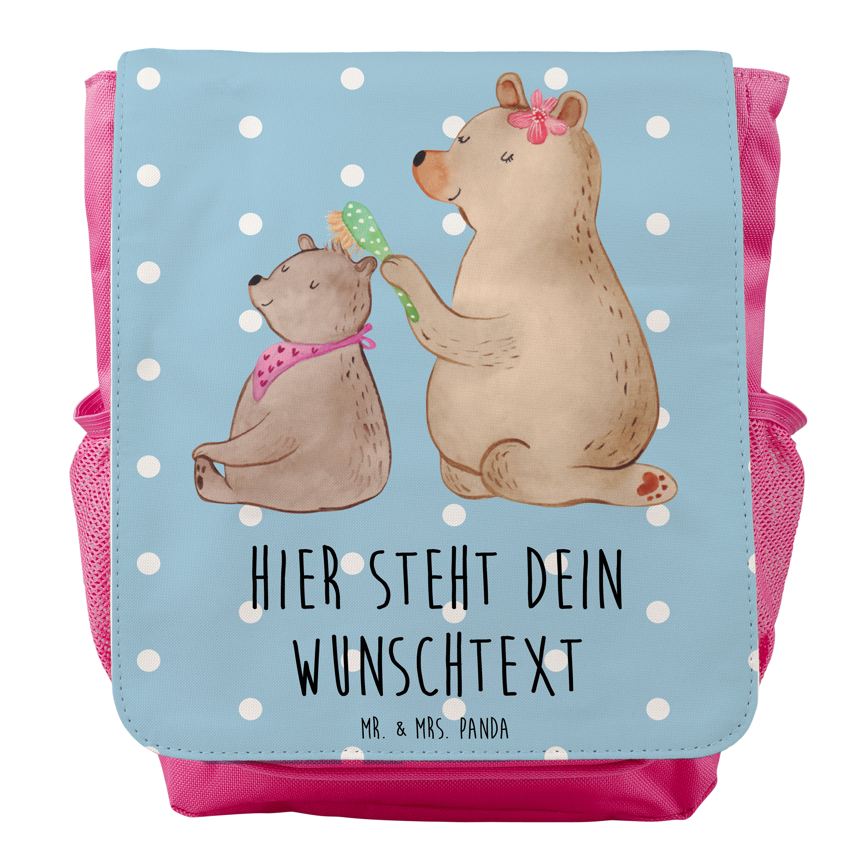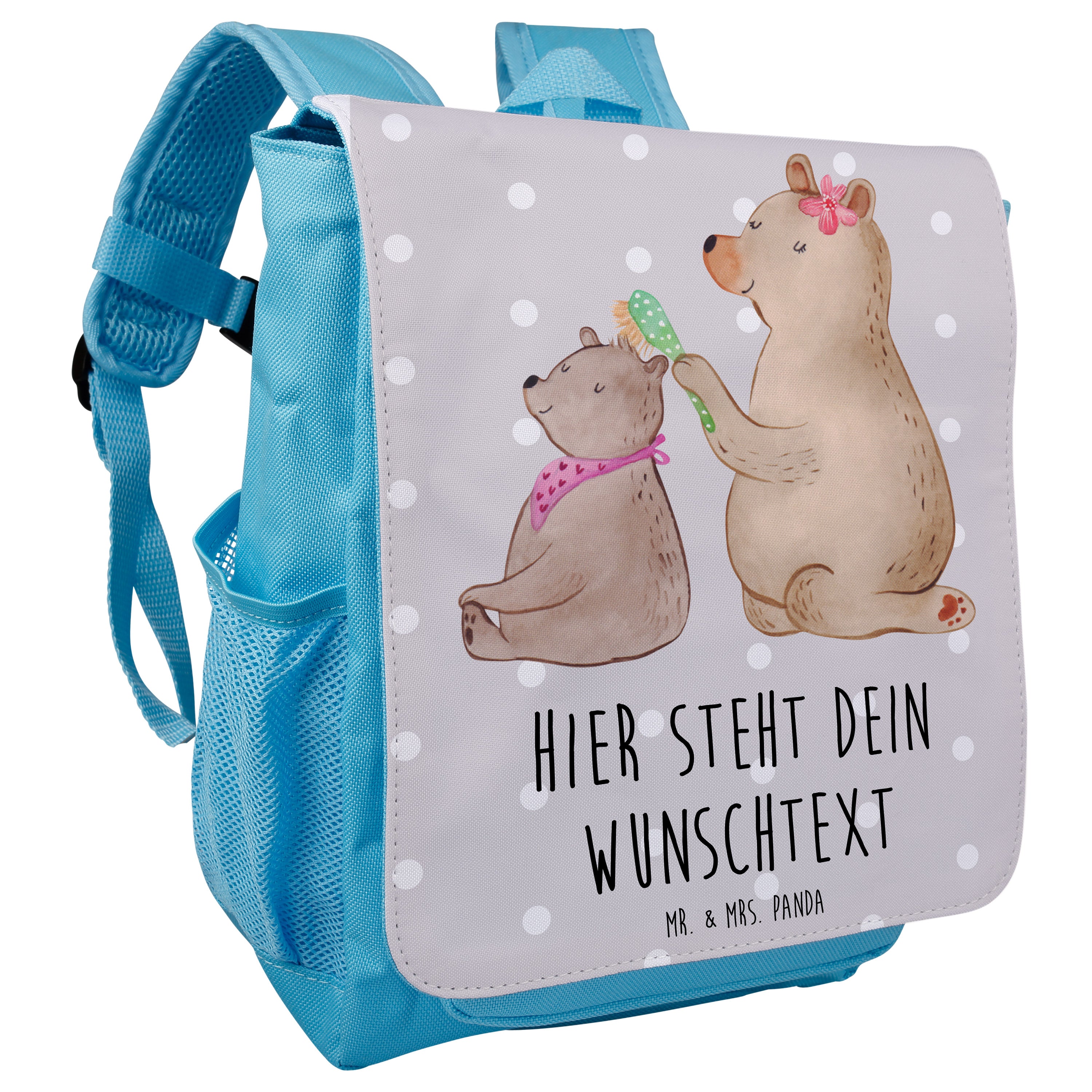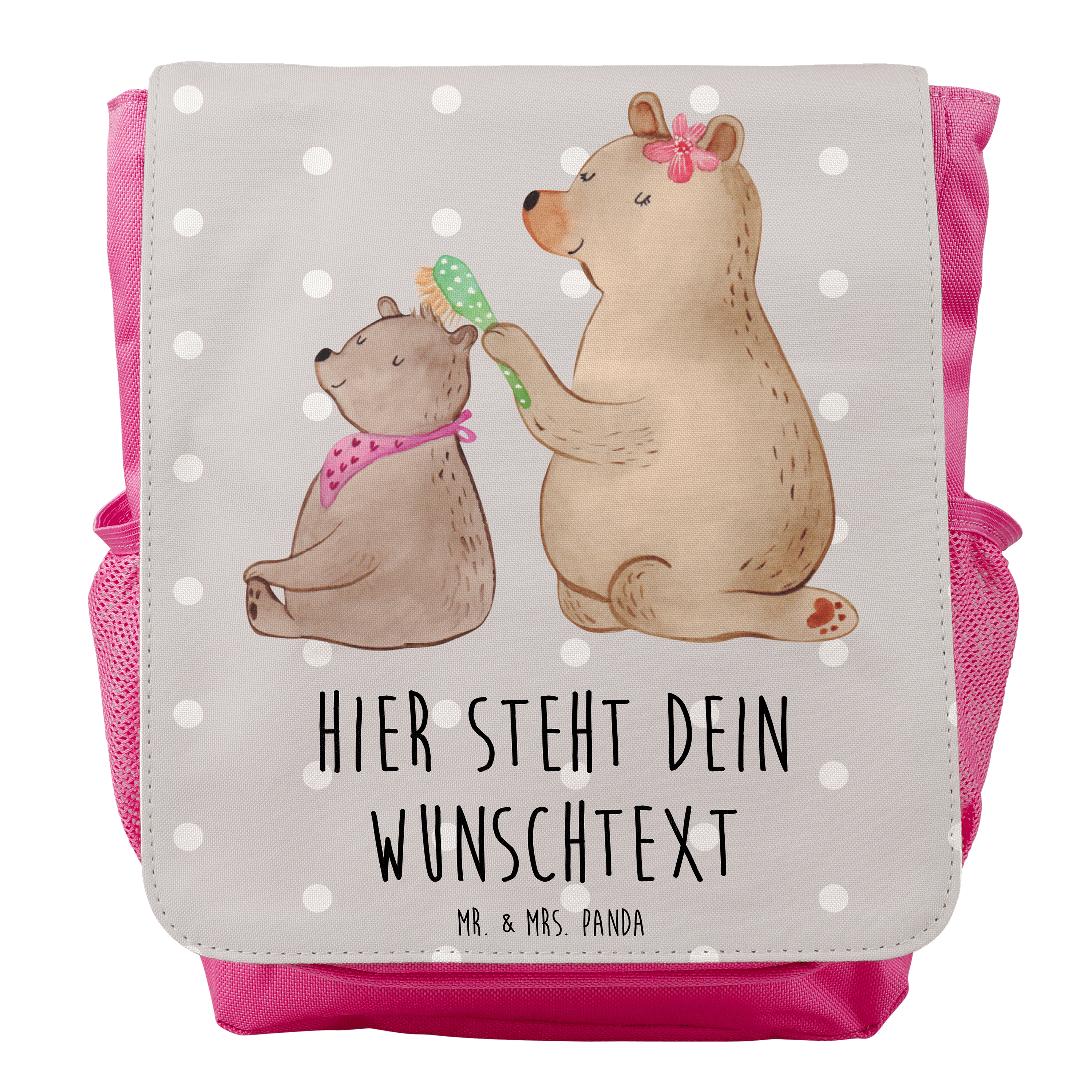 Personalisierter Kinderrucksack Bär mit Kind - Mädchen - Grau Pastell