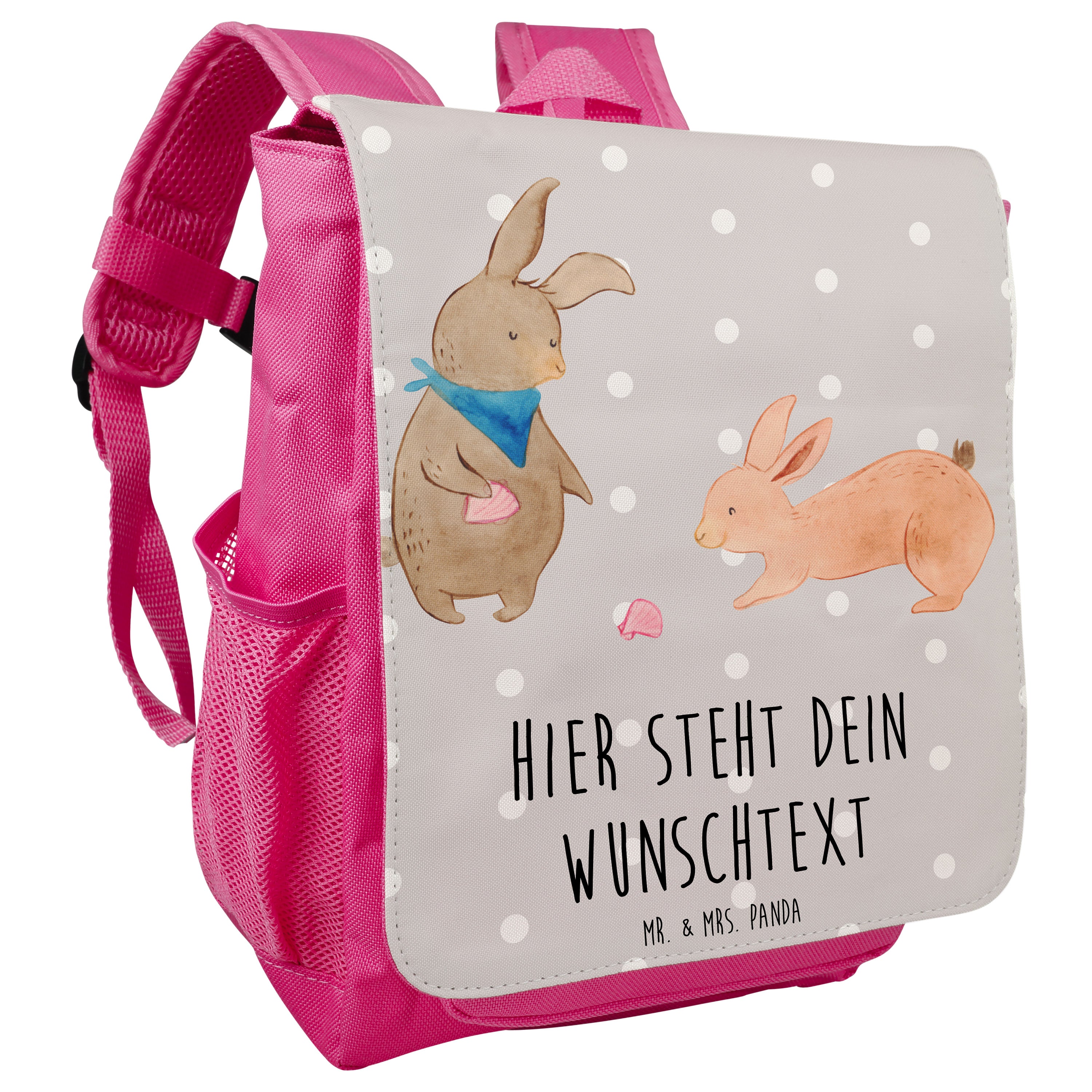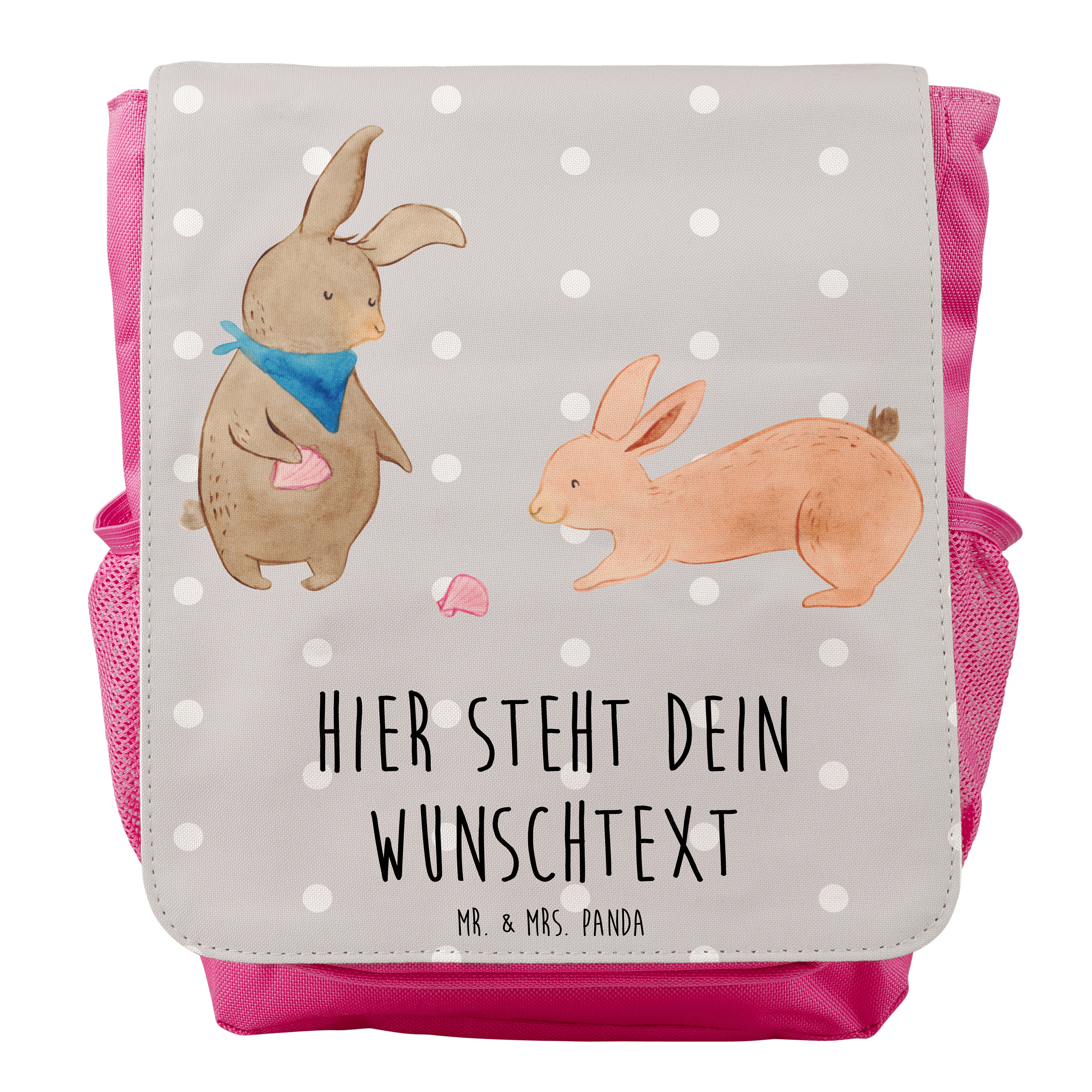 Personalisierter Kinderrucksack Hasen Muschel - Mädchen - Grau Pastell