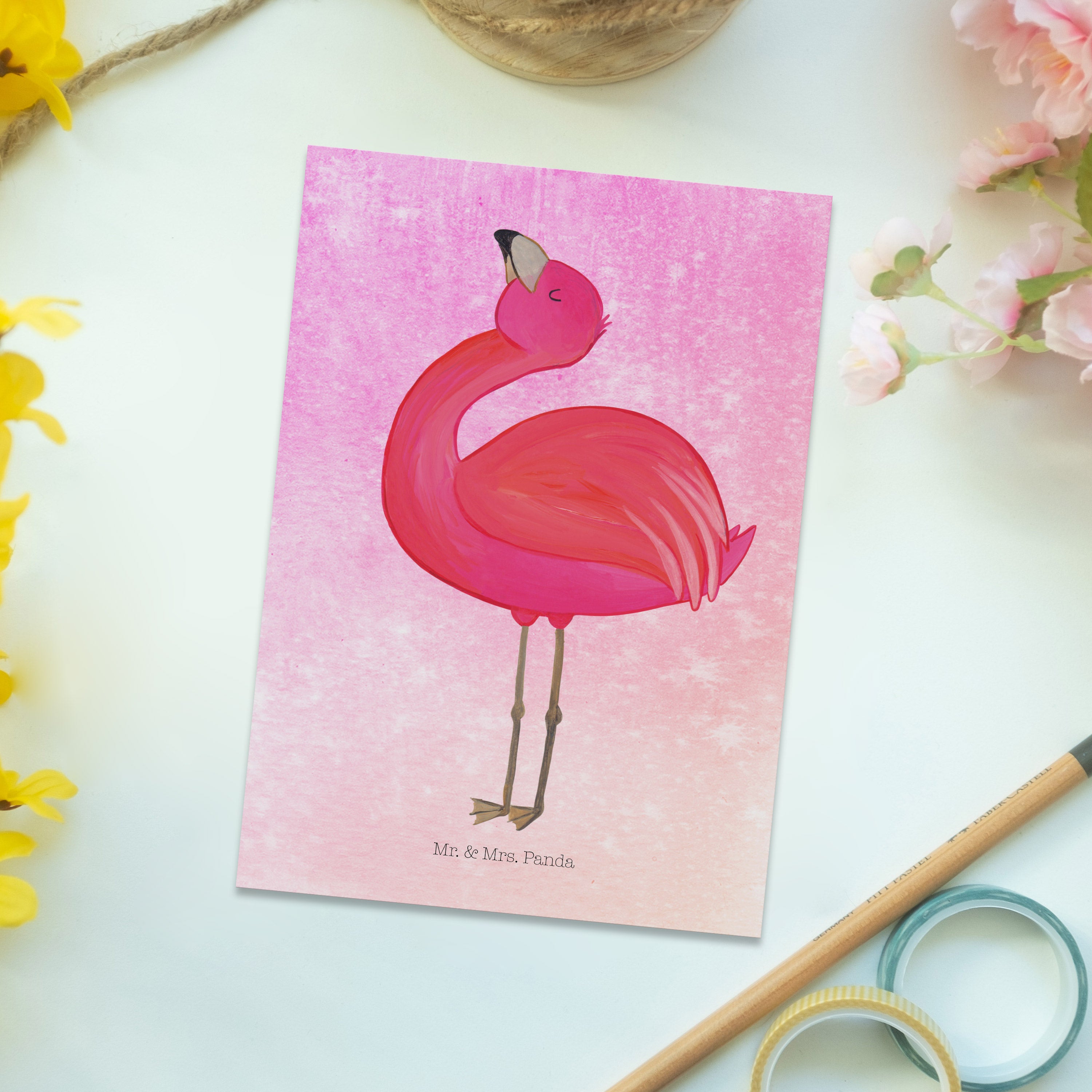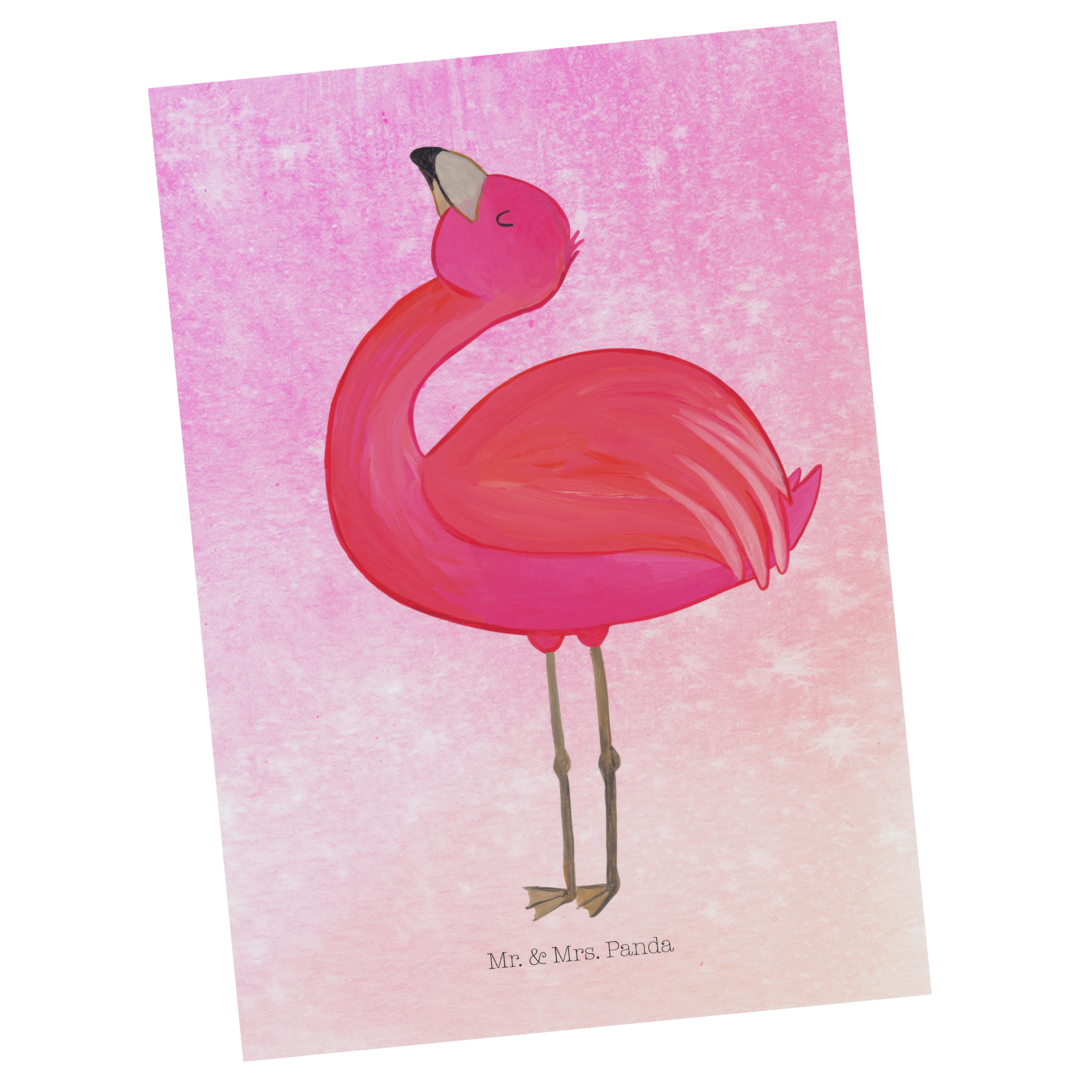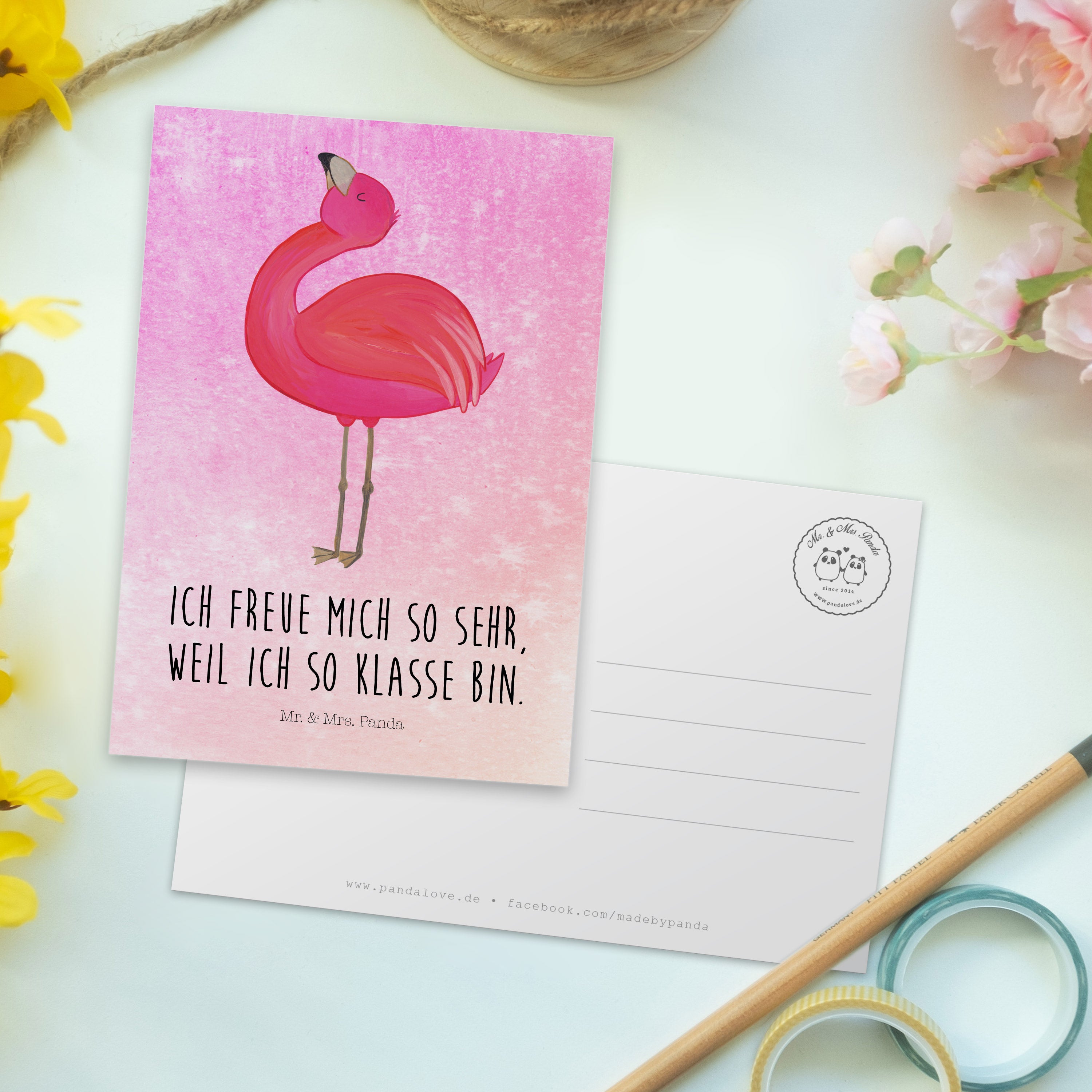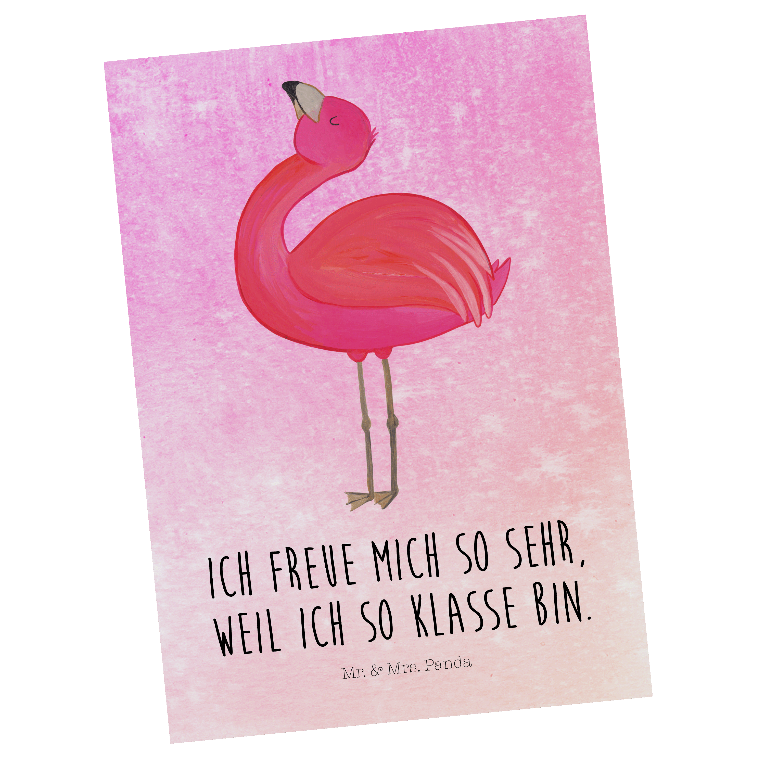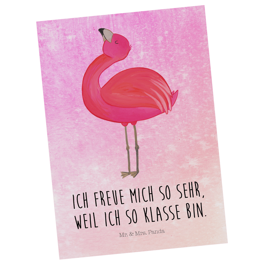 Postkarte Flamingo stolz - mit Spruch - Aquarell Pink