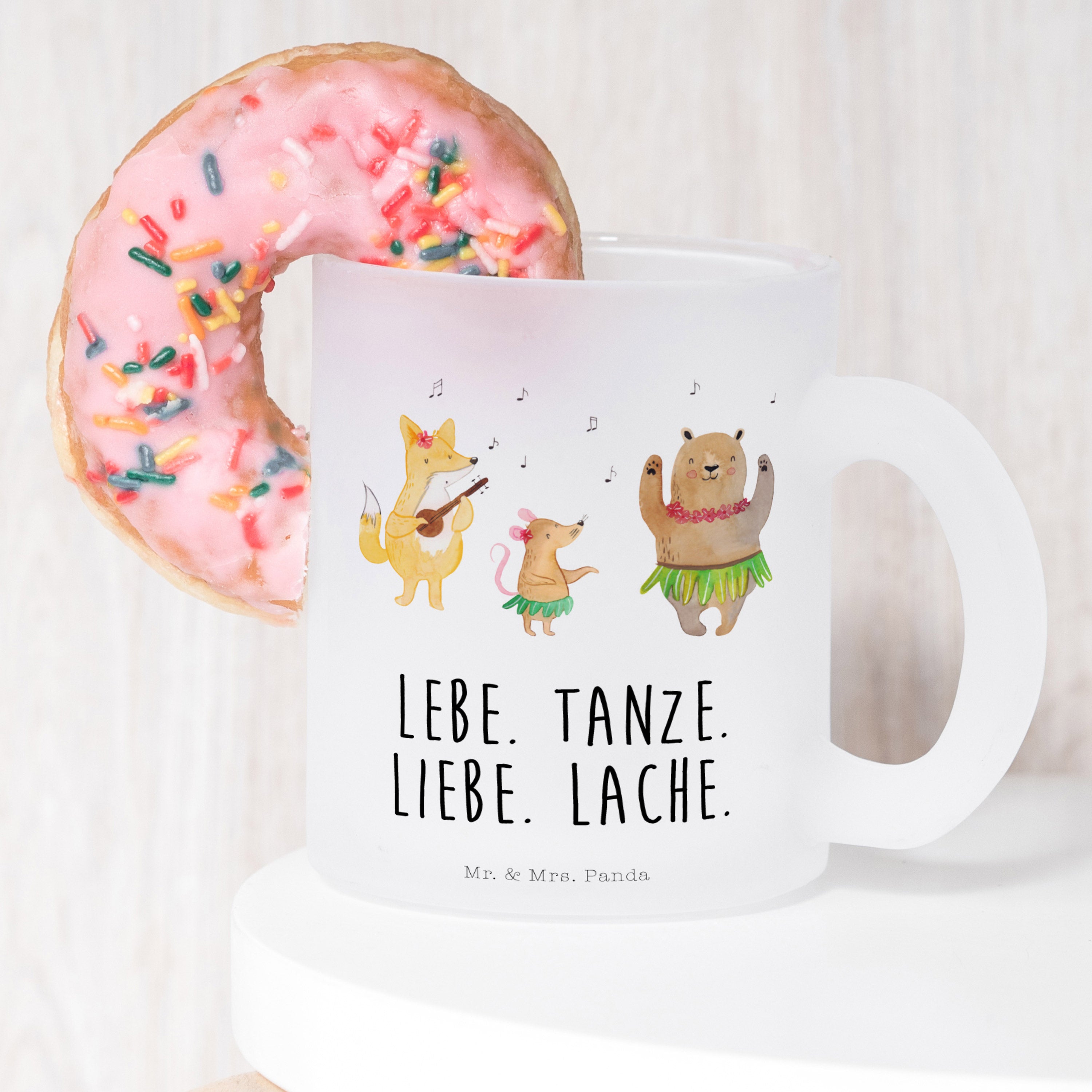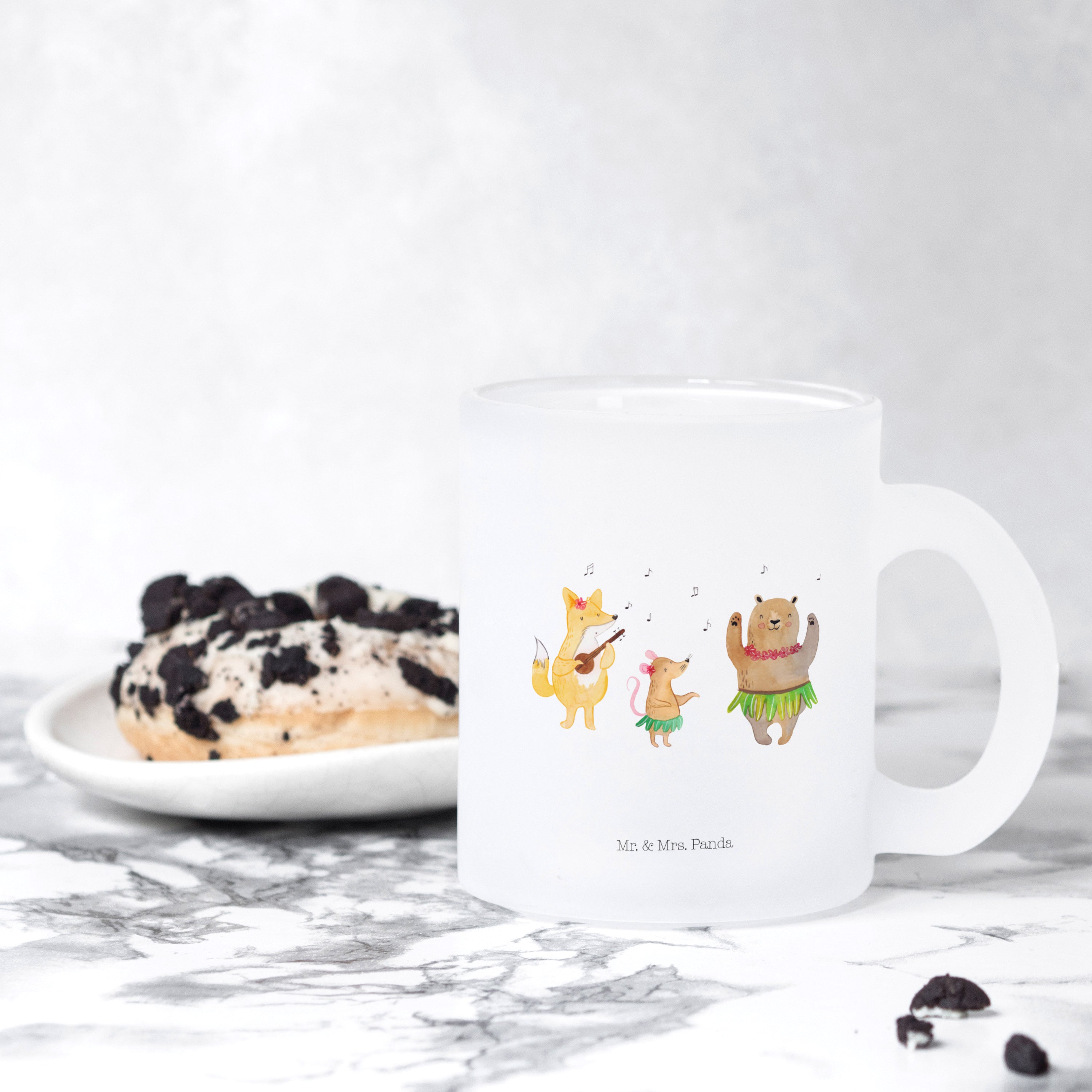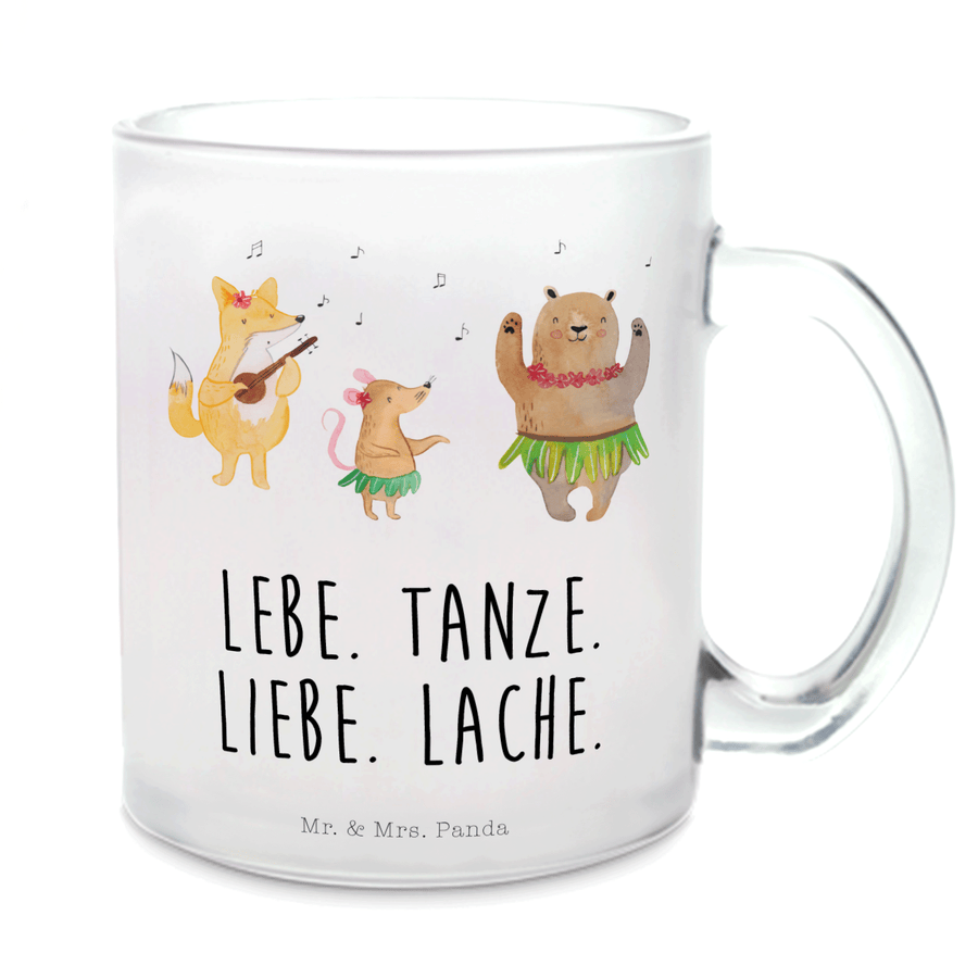 Teetasse Waldtiere Aloha Teetasse, Teeglas, Teebecher, Tasse mit Henkel, Tasse, Glas Teetasse, Teetasse aus Glas, Tiermotive, Gute Laune, lustige Sprüche, Tiere, Wald, Waldtiere, Musik, Aloha, Bär, Hase, Igel, Tanzen, Leben, Lachen
