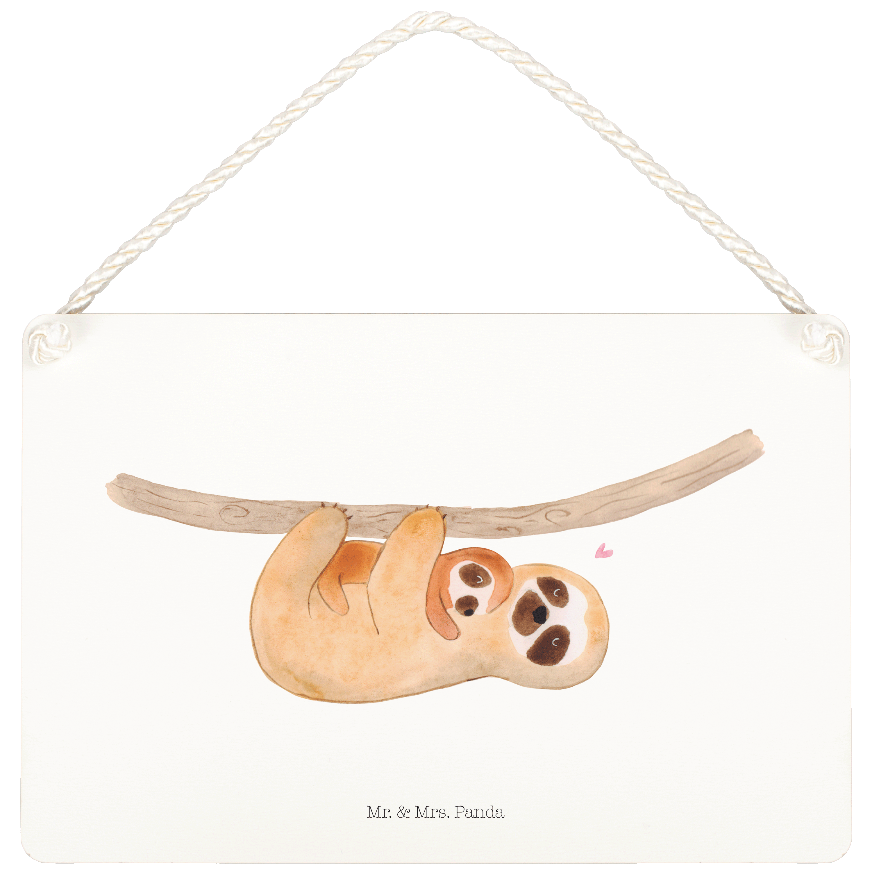 Deko Schild Faultier mit Kind - mit Spruch - Weiß