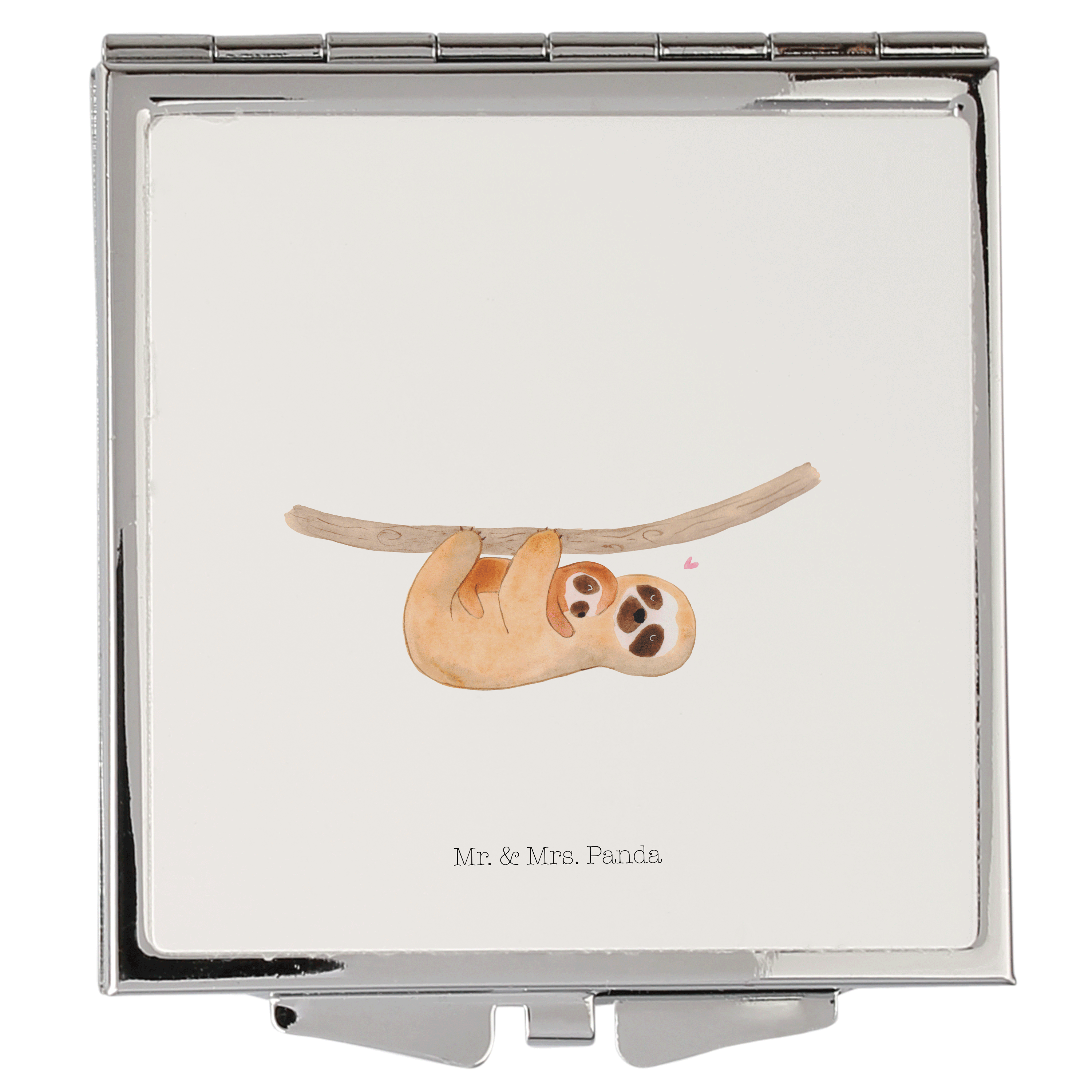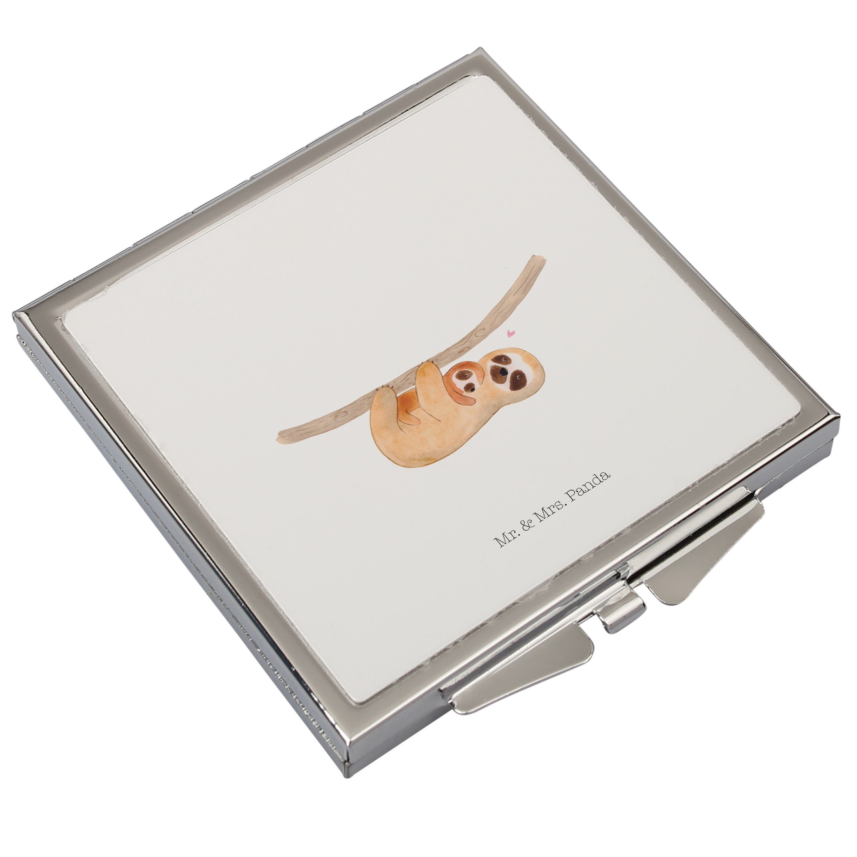 Handtaschenspiegel quadratisch Faultier mit Kind - mit Spruch