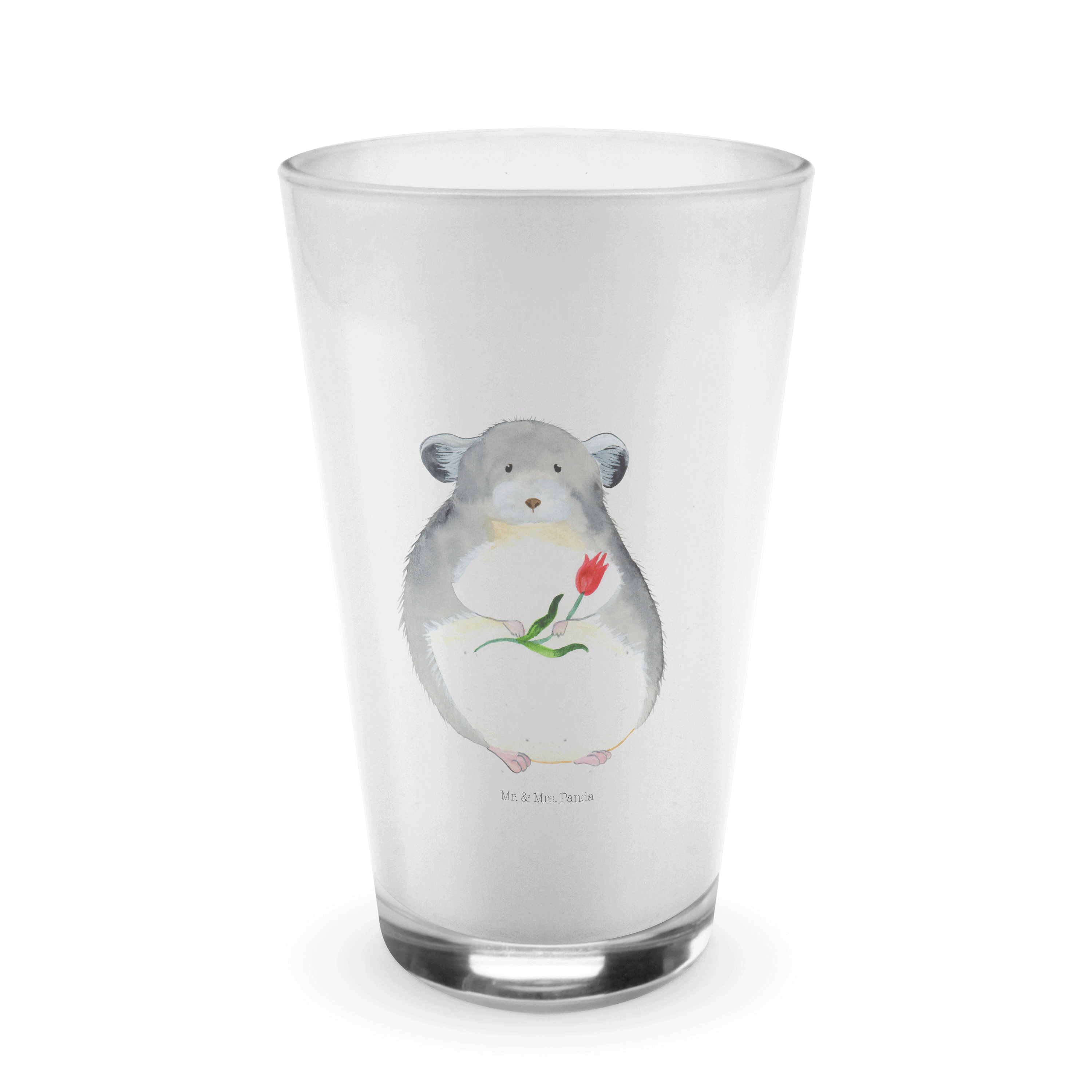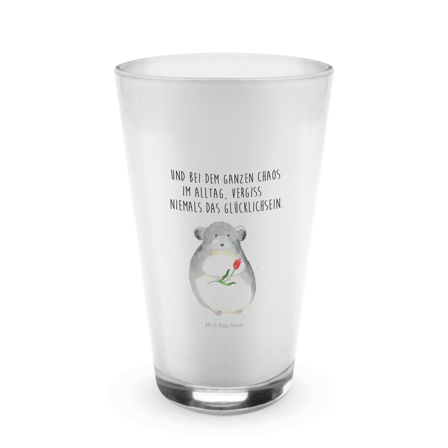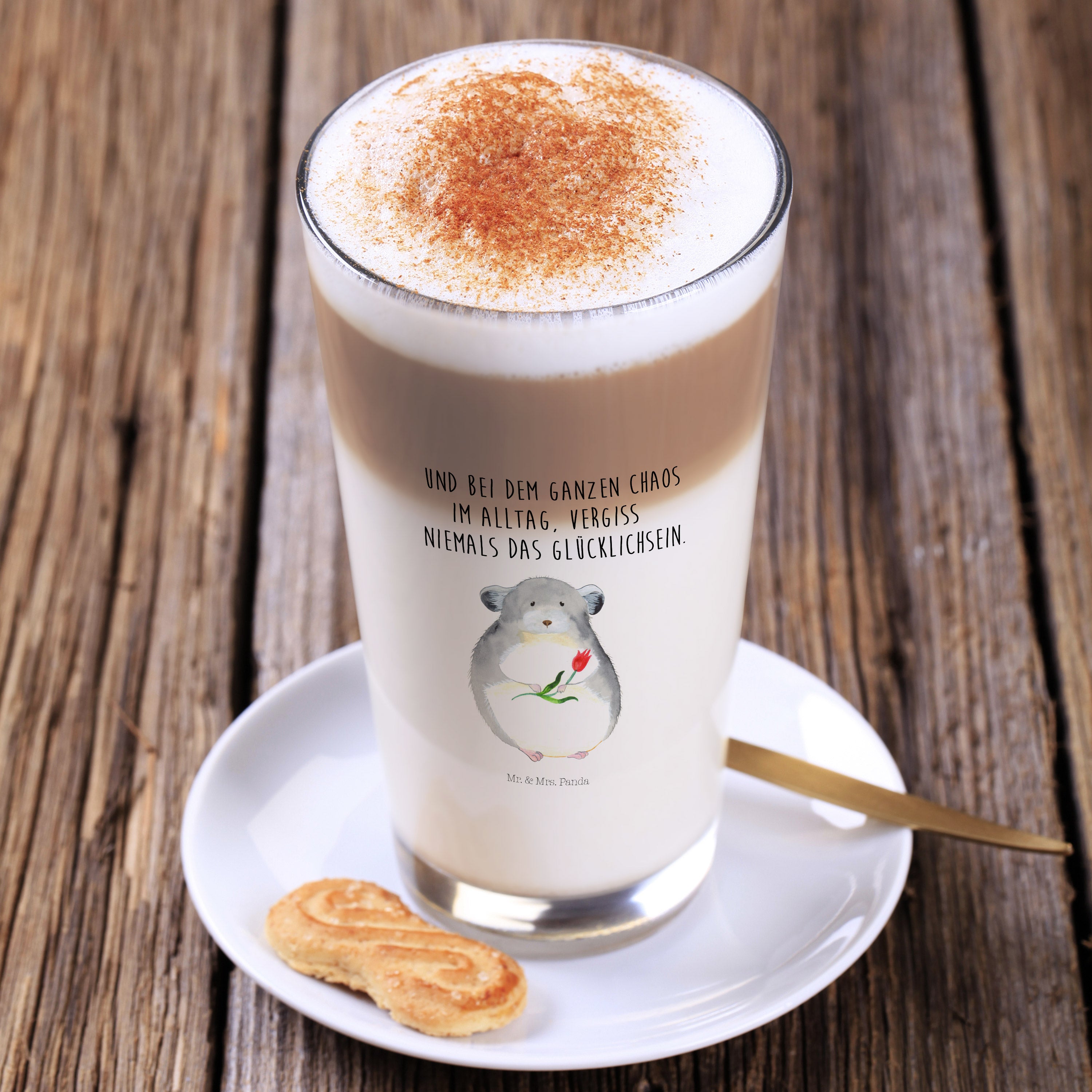 Glas Chinchilla mit Blume Cappuccino Glas, Glas, Cappuccino Tasse, Latte Macchiato, Tiermotive, Gute Laune, lustige Sprüche, Tiere, Chinchilla, Chinchillas, Liebeskummer, Kummer, Depressionen, traurig sein, Chaos, Glücklichsein, Büro, Büroalltag