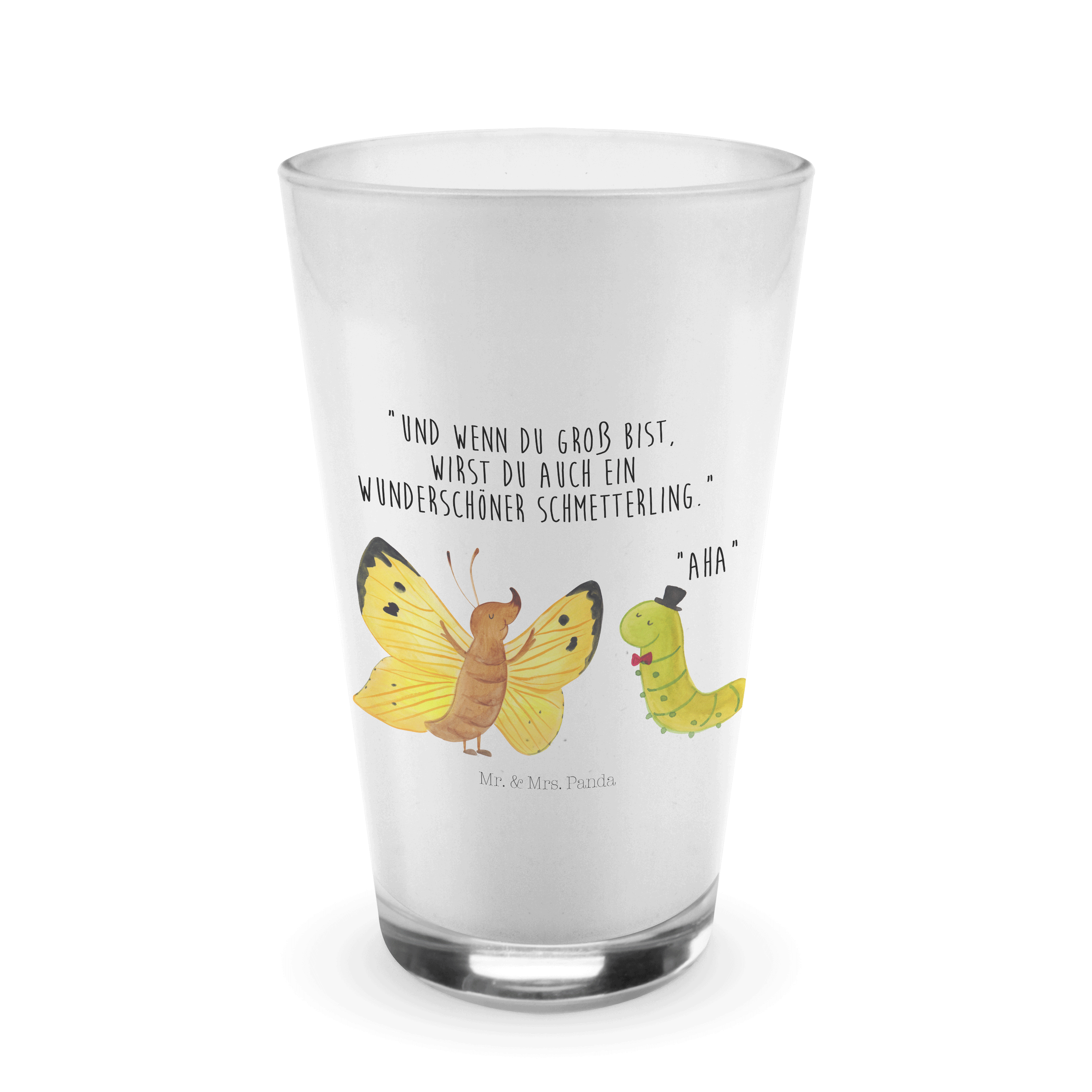 Glas Raupe & Schmetterling Cappuccino Glas, Glas, Cappuccino Tasse, Latte Macchiato, Tiermotive, Gute Laune, lustige Sprüche, Tiere, Raupe, Schmetterling, Zitronenfalter, Entwicklung, Erwachsen werden, Kokon, Hut, Hütchen, Schönheit, Aufwachsen