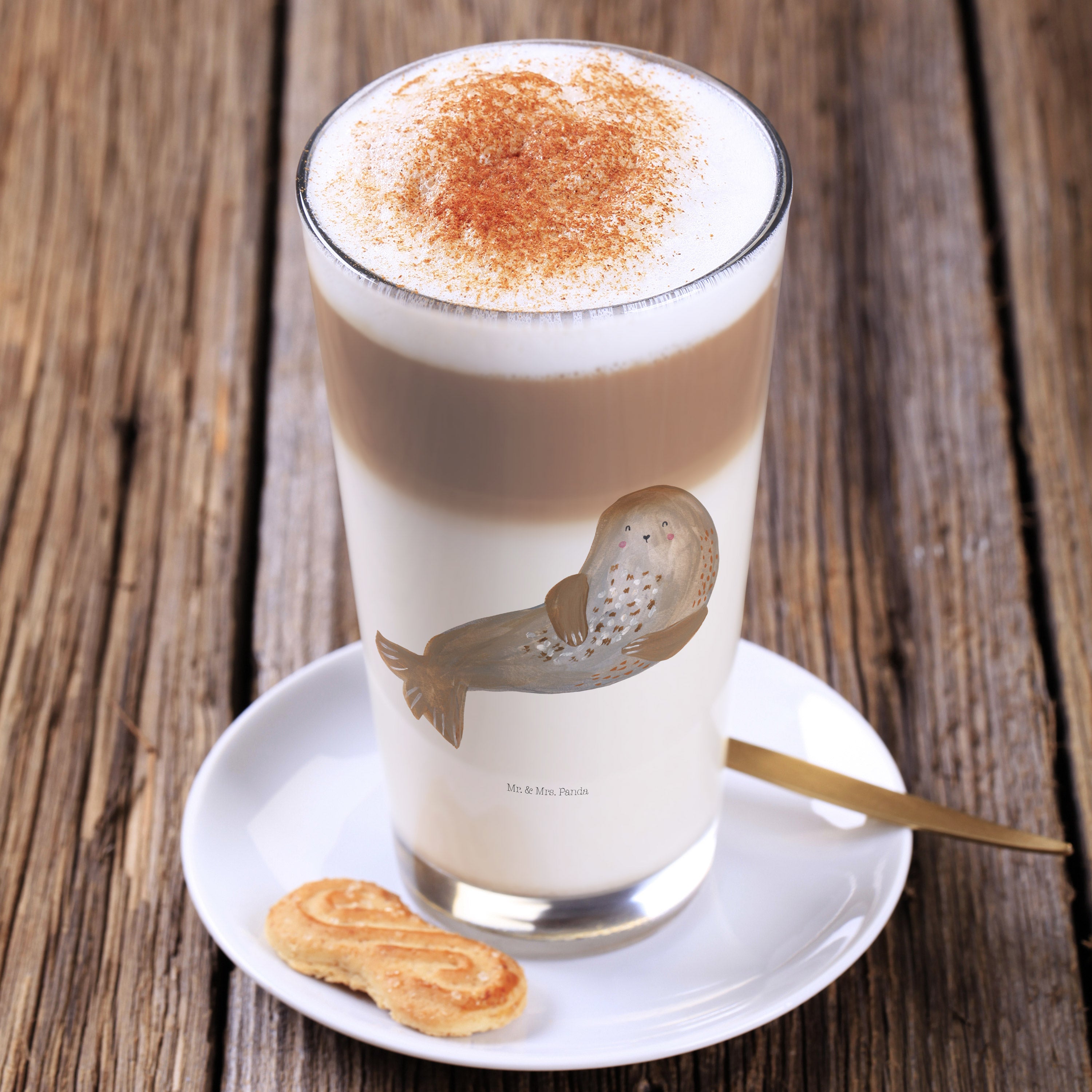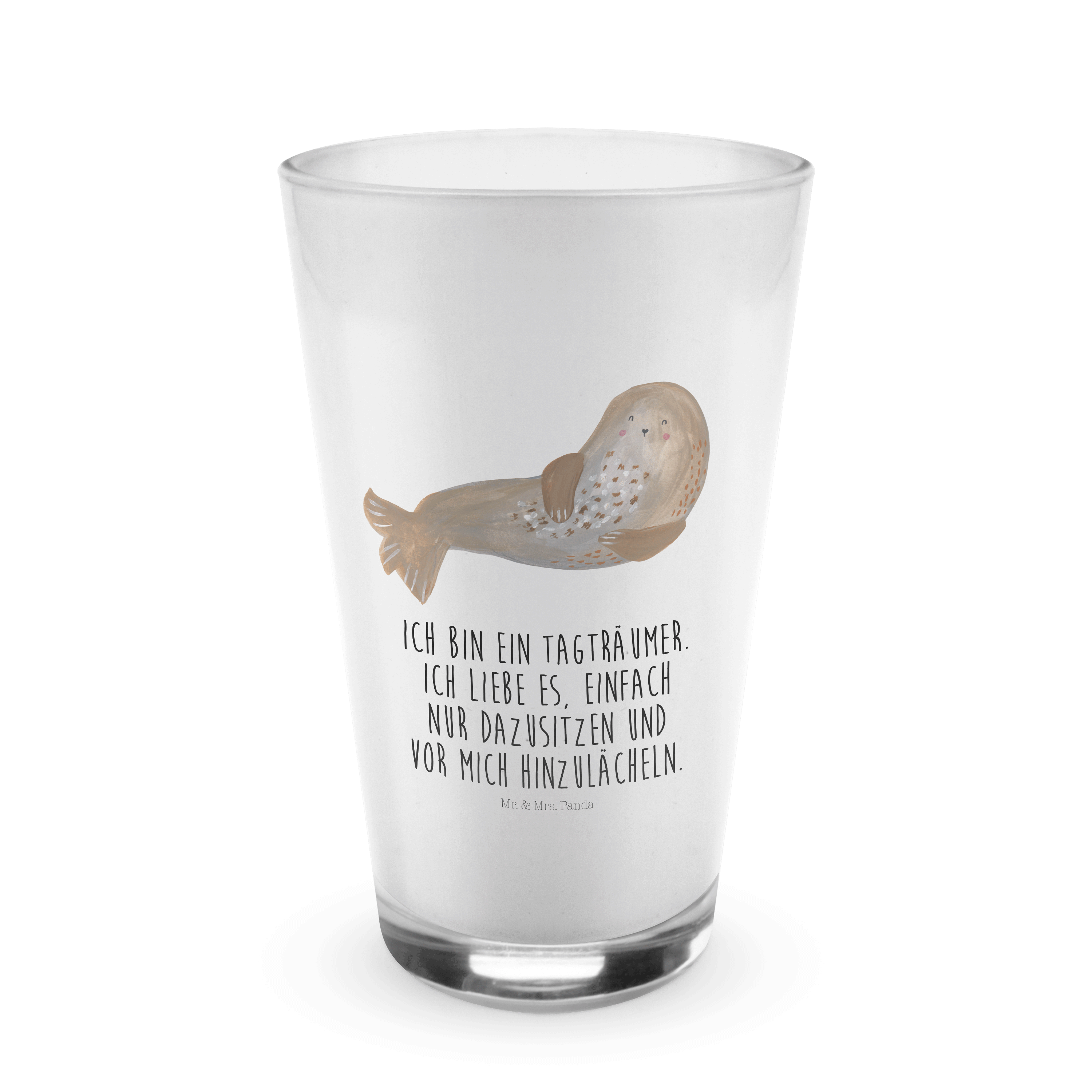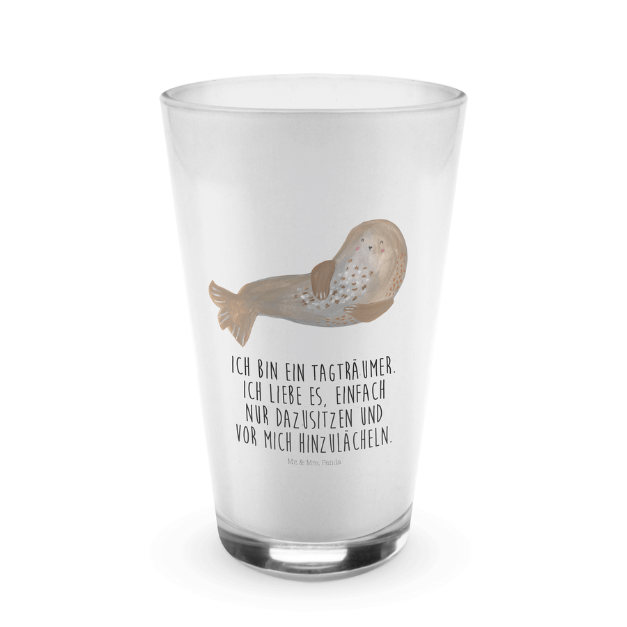 Glas Robbe lachend Cappuccino Glas, Glas, Cappuccino Tasse, Latte Macchiato, Tiermotive, Gute Laune, lustige Sprüche, Tiere, Robbe, Robben, Seehund, Strand, Meerestier, Ostsee, Nordsee