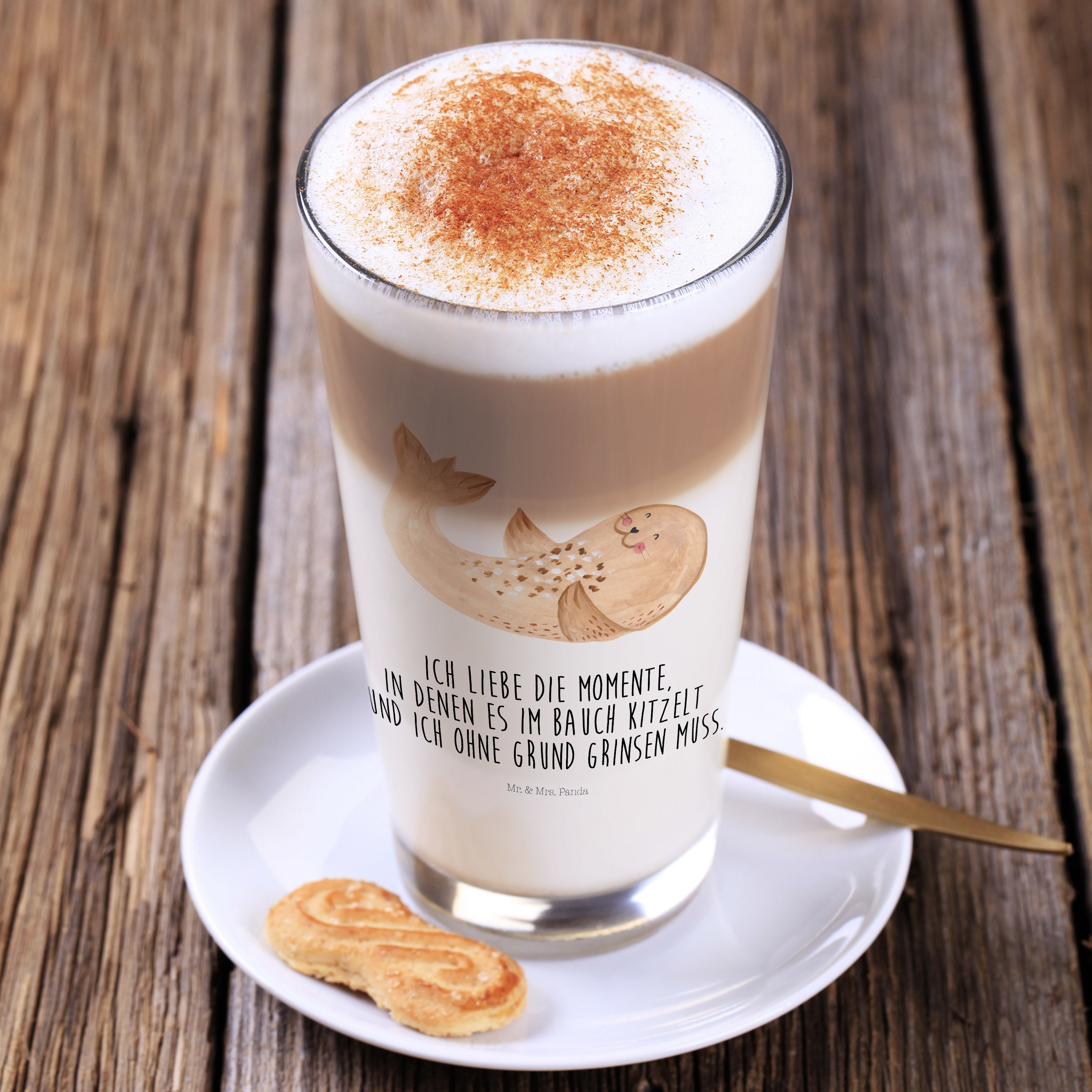 Glas Robbe liegend - mit Spruch