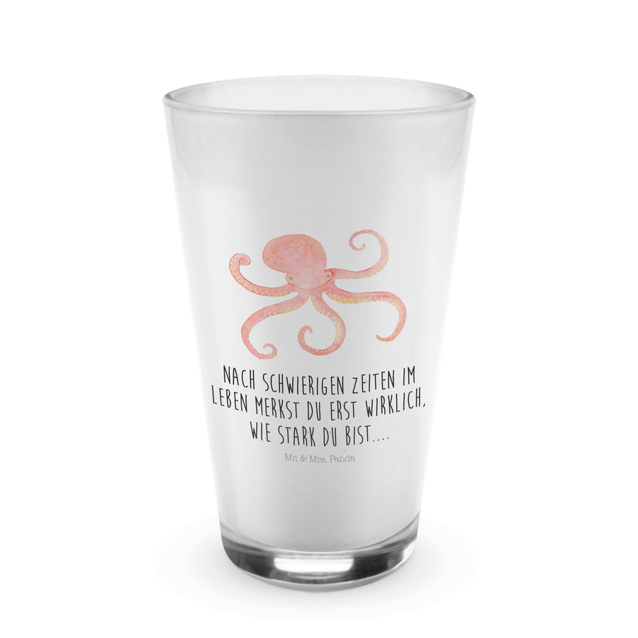 Glas Tintenfisch Cappuccino Glas, Glas, Cappuccino Tasse, Latte Macchiato, Tiermotive, Gute Laune, lustige Sprüche, Tiere, Meer, Meerestier, Krake, Tintenfisch, Arme, Wasser, Ozean