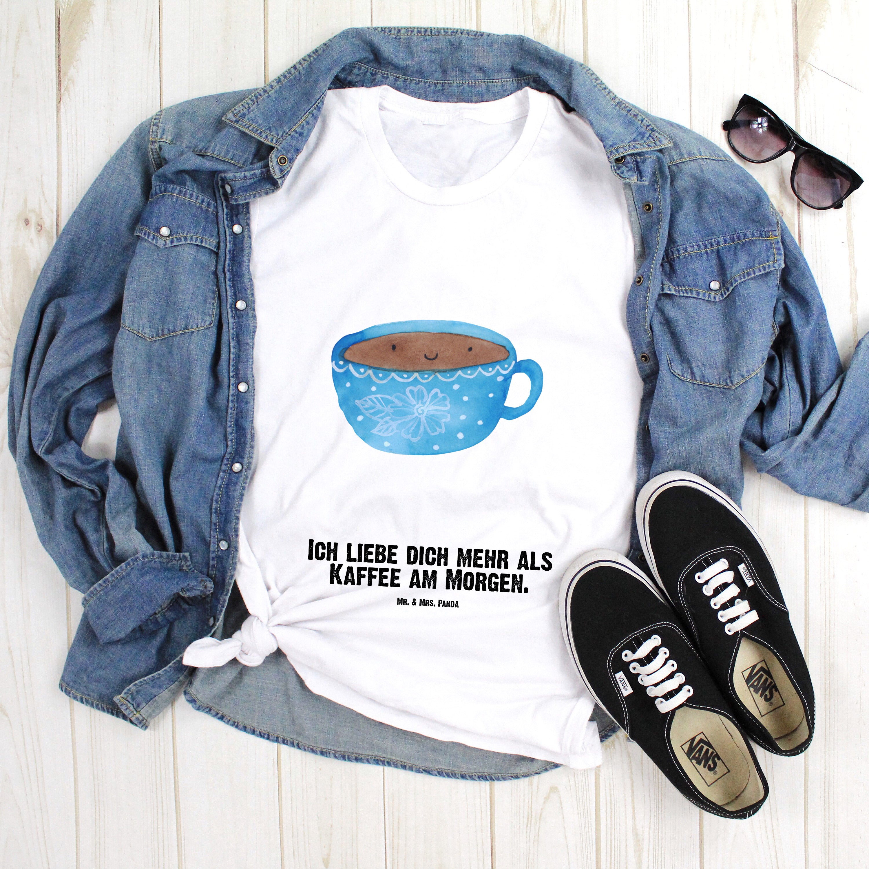Gönn dir eine Auszeit mit einer Tasse Kaffee von Mr. & Mrs. Panda. Die fröhlich gestaltete Tasse zeigt eine Tasse Kaffee, die glücklich darüber ist, mit köstlichem Kaffee befüllt zu sein. Der putzige Gesichtsausdruck der Tasse wird dich eine kurze Pause vom Alltag versüßen und dich mit neuer Energie versorgen.