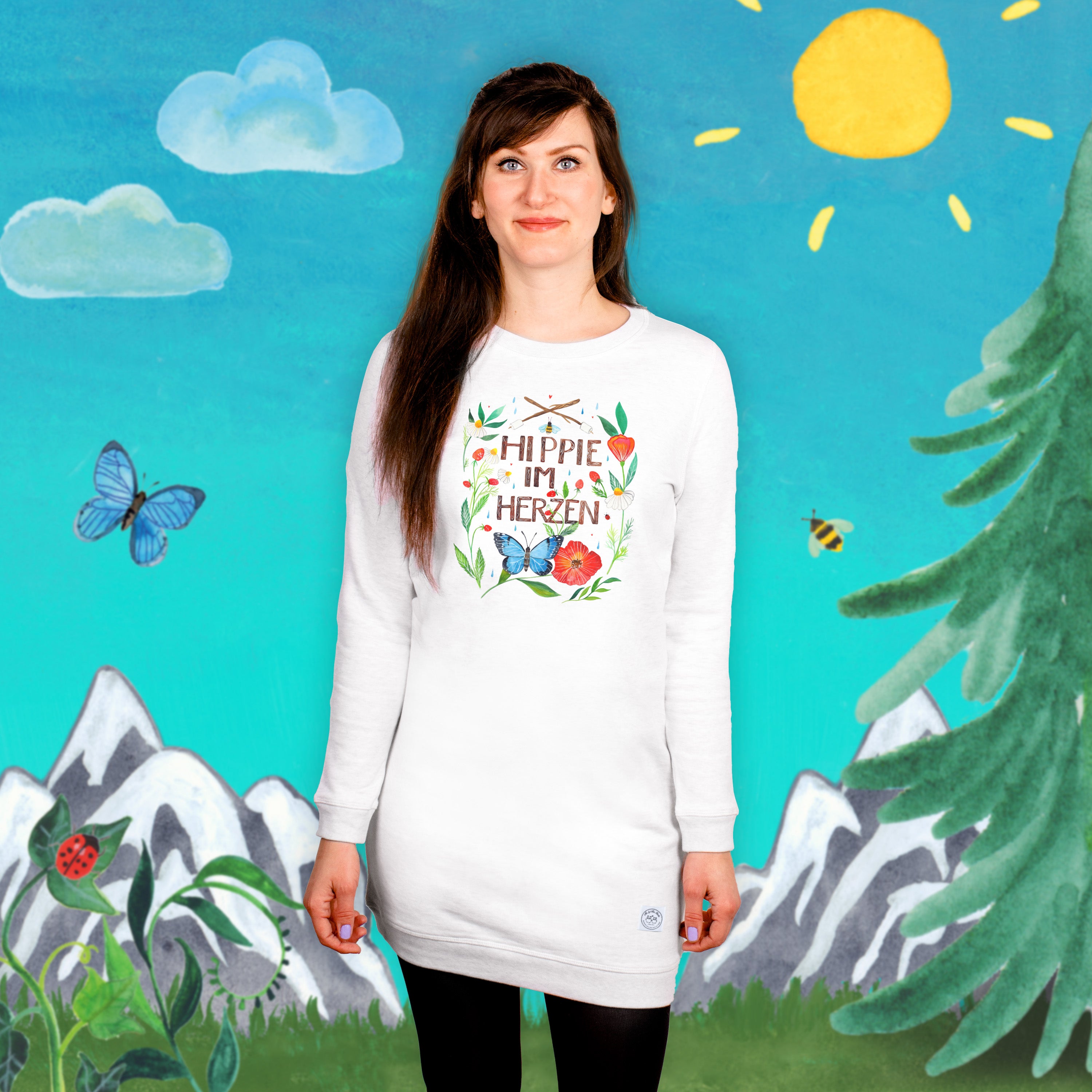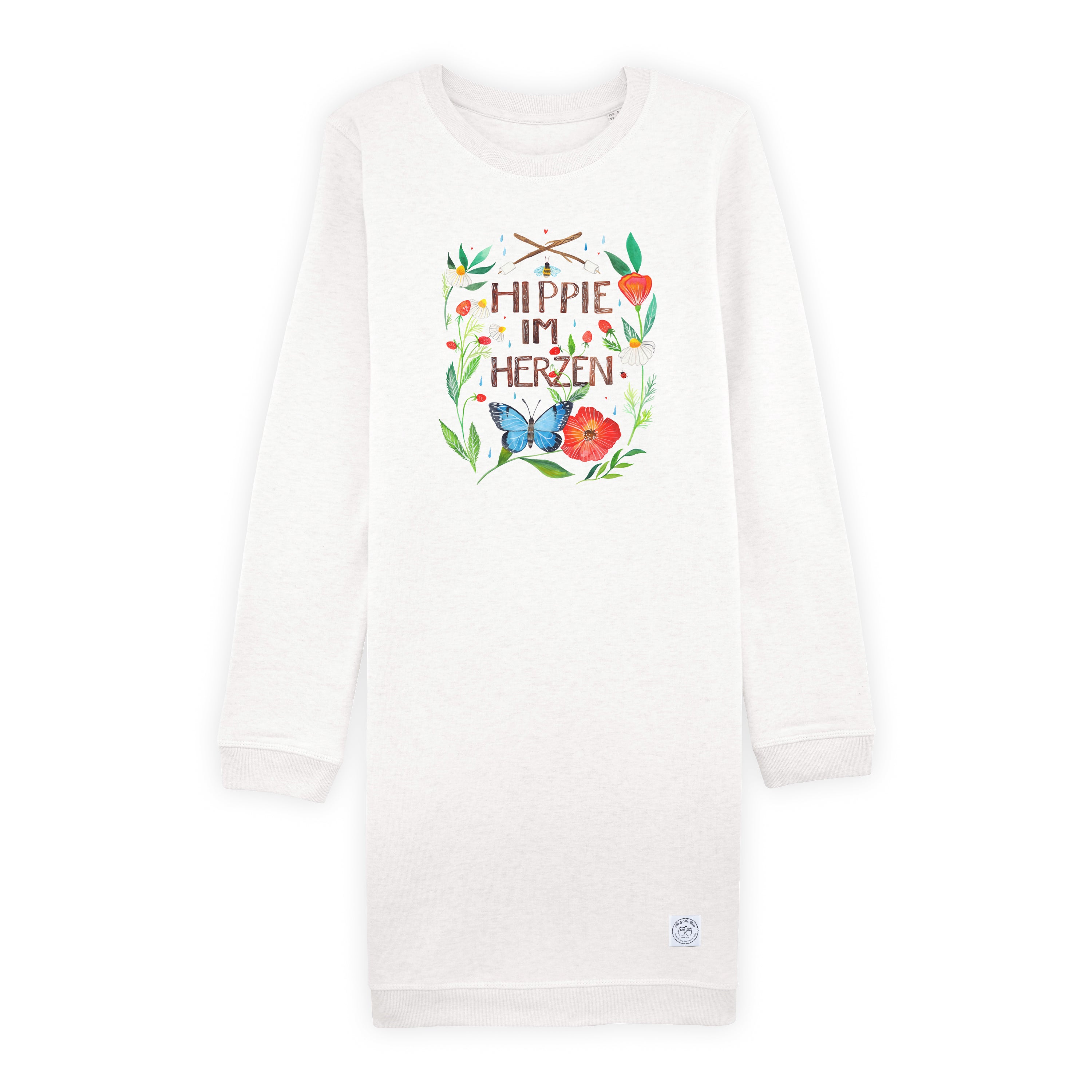 Größe XL Kleid Hippie im Herzen Kleid, Winterkleid, Langarm Kleid, Baumwollkleid, Stoffkleid, Sweatkleid, Blumen Deko, Frühlings Deko, Sommer Deko, Dekoration, positive Botschaft, Naturliebhaber, Outdoor, Natur, Abenteuer