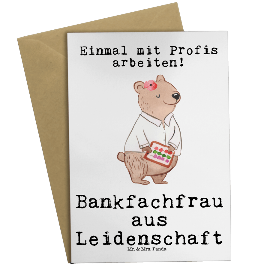 Grußkarte Bankfachfrau aus Leidenschaft Klappkarte, Einladungskarte, Glückwunschkarte, Hochzeitskarte, Geburtstagskarte, Karte, Beruf, Ausbildung, Jubiläum, Abschied, Rente, Kollege, Kollegin, Geschenk, Schenken, Arbeitskollege, Mitarbeiter, Firma, Danke, Dankeschön, Bankfachfrau, Bankangestellte, Bänkerin, Bankberaterin
