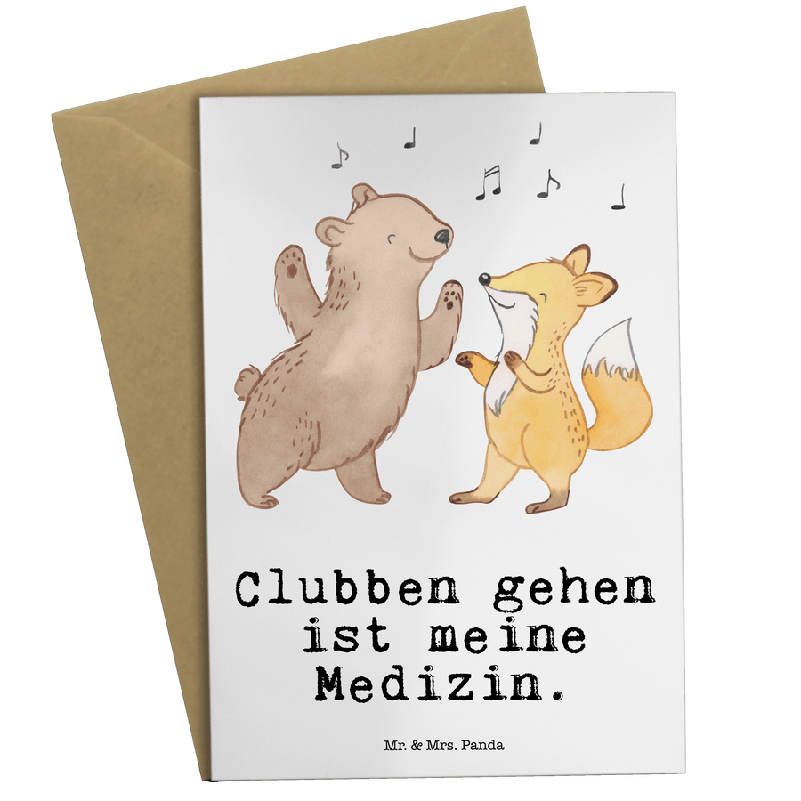 Grußkarte Bär & Fuchs Disco Medizin Klappkarte, Einladungskarte, Glückwunschkarte, Hochzeitskarte, Geburtstagskarte, Karte, Geschenk, Sport, Sportart, Hobby, Schenken, Danke, Dankeschön, Auszeichnung, Gewinn, Sportler, Disco, Clubs, Tanzen, Feiern, Clubbing