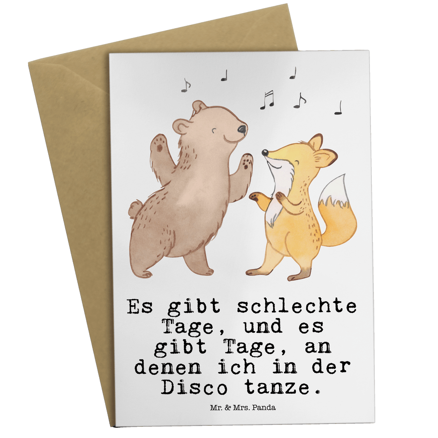 Grußkarte Bär & Fuchs Disco Tage Klappkarte, Einladungskarte, Glückwunschkarte, Hochzeitskarte, Geburtstagskarte, Karte, Geschenk, Sport, Sportart, Hobby, Schenken, Danke, Dankeschön, Auszeichnung, Gewinn, Sportler, Disco, Clubs, Tanzen, Feiern, Clubbing, Tanzstimmung, Nachtclub