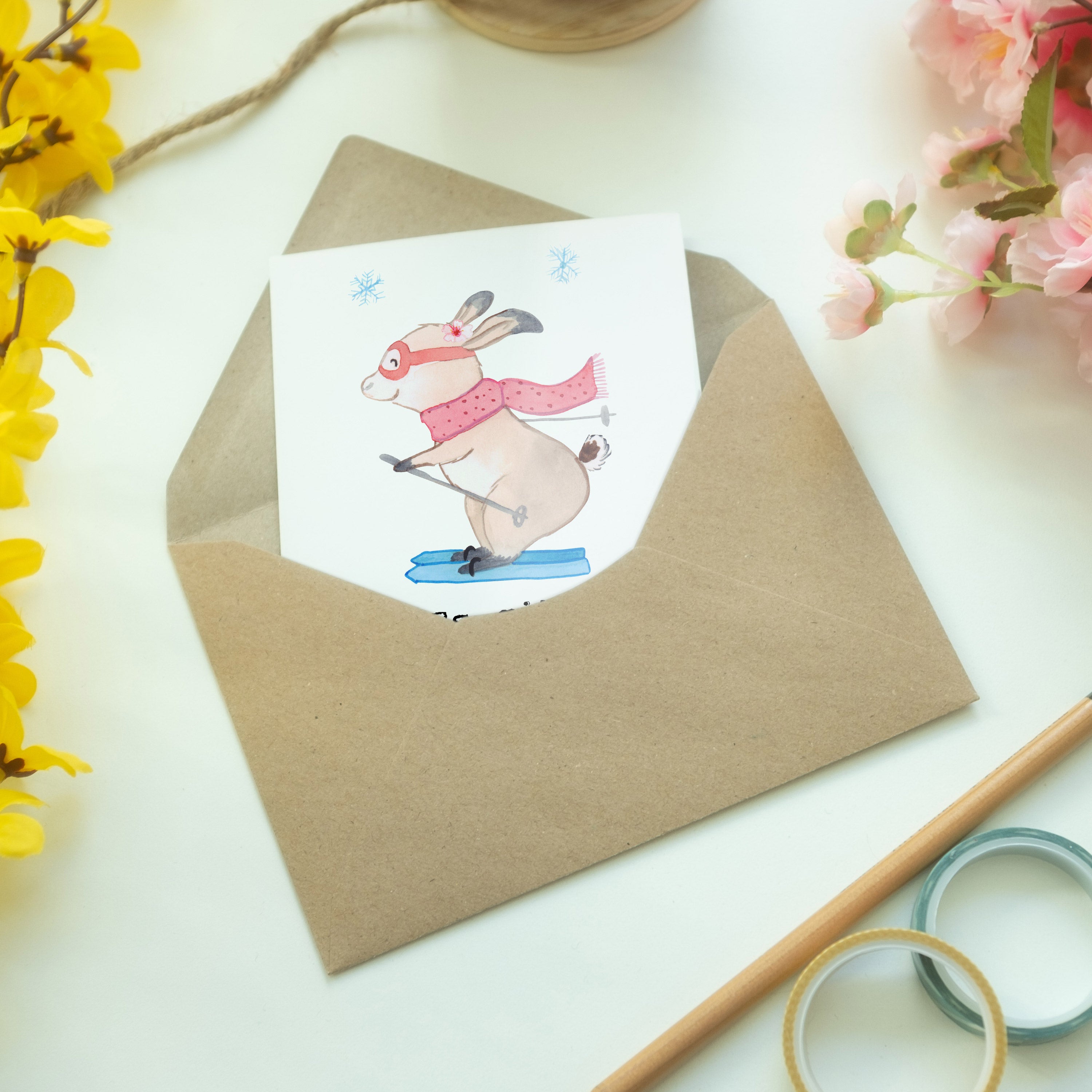 Grußkarte Bär Skifahren Tage
