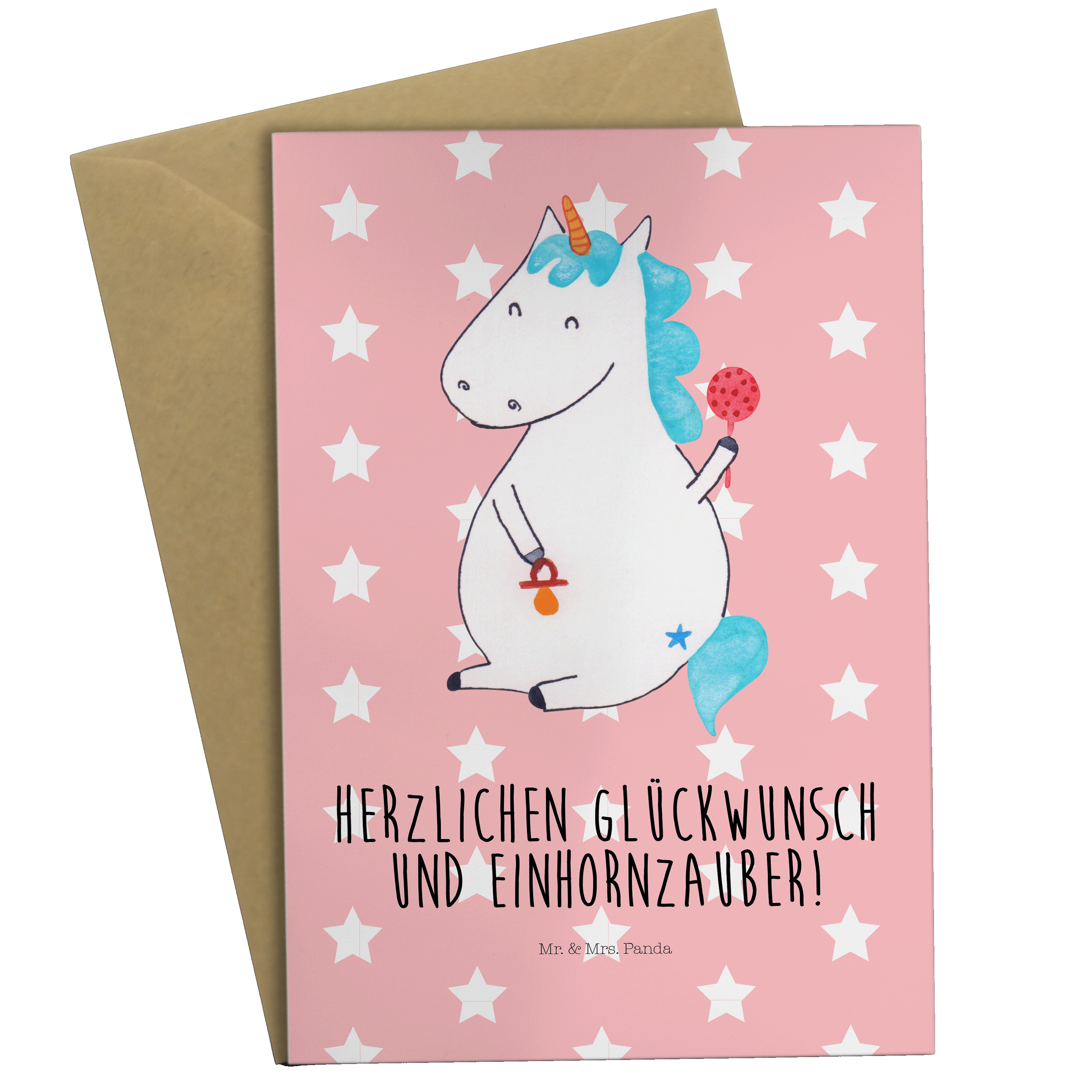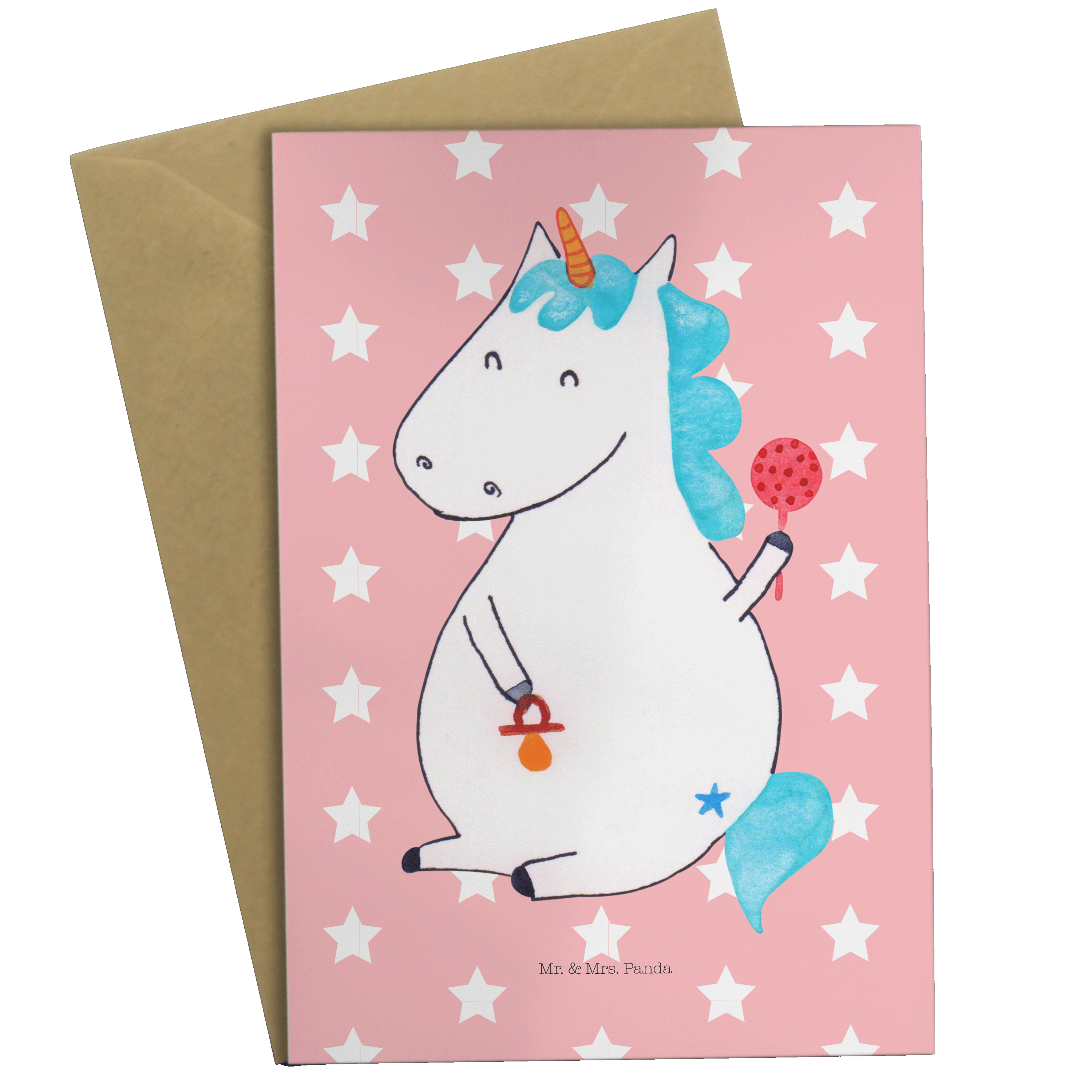 Grußkarte Einhorn Baby - mit Spruch - Rot Pastell