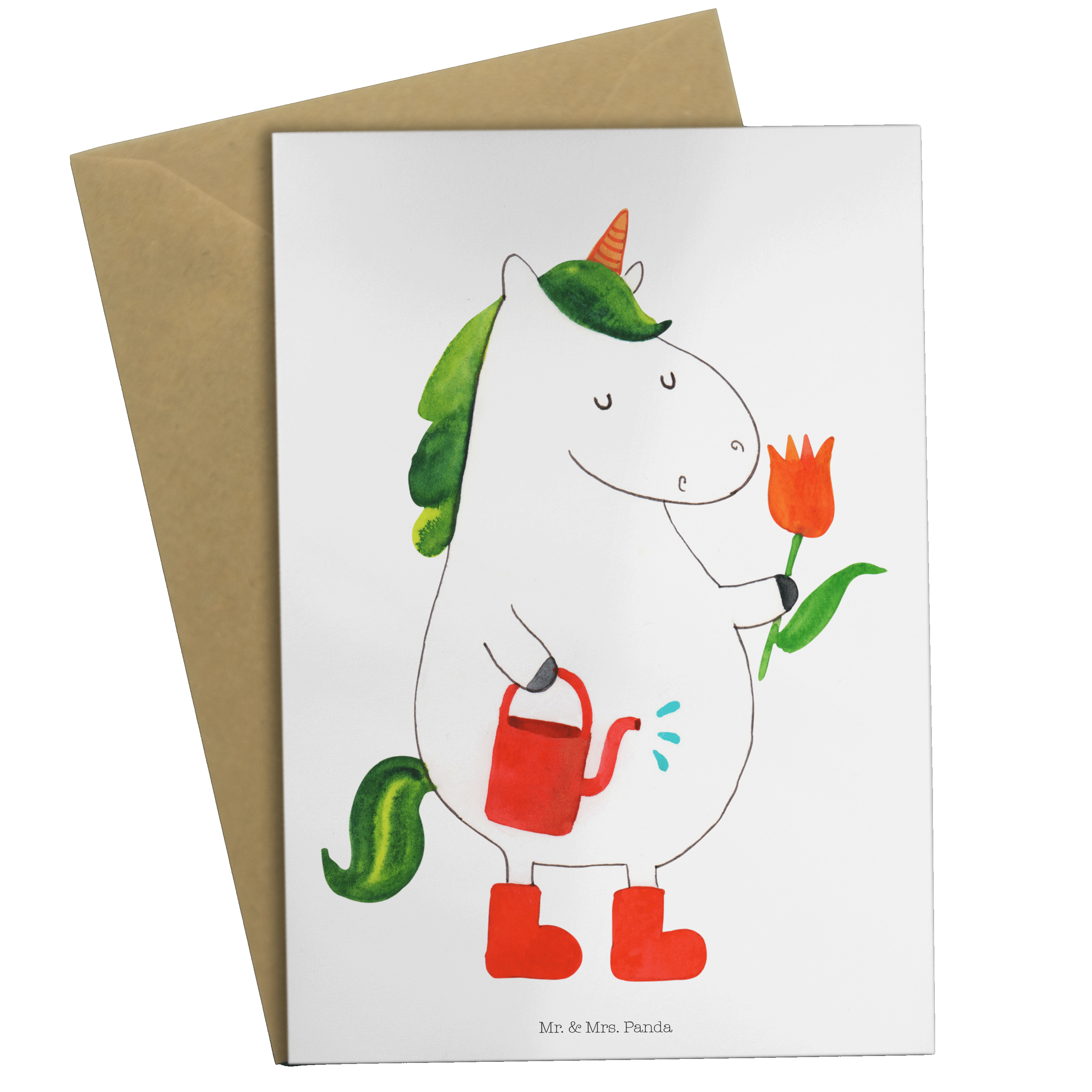 Grußkarte Einhorn Gärtner Klappkarte, Einladungskarte, Glückwunschkarte, Hochzeitskarte, Geburtstagskarte, Karte, Einhorn, Einhörner, Einhorn Deko, Pegasus, Unicorn, Luftballon, Gießkanne, Giesskanne, Lebenslust, Freude, Blume, Freundin, Garten, Stiefel