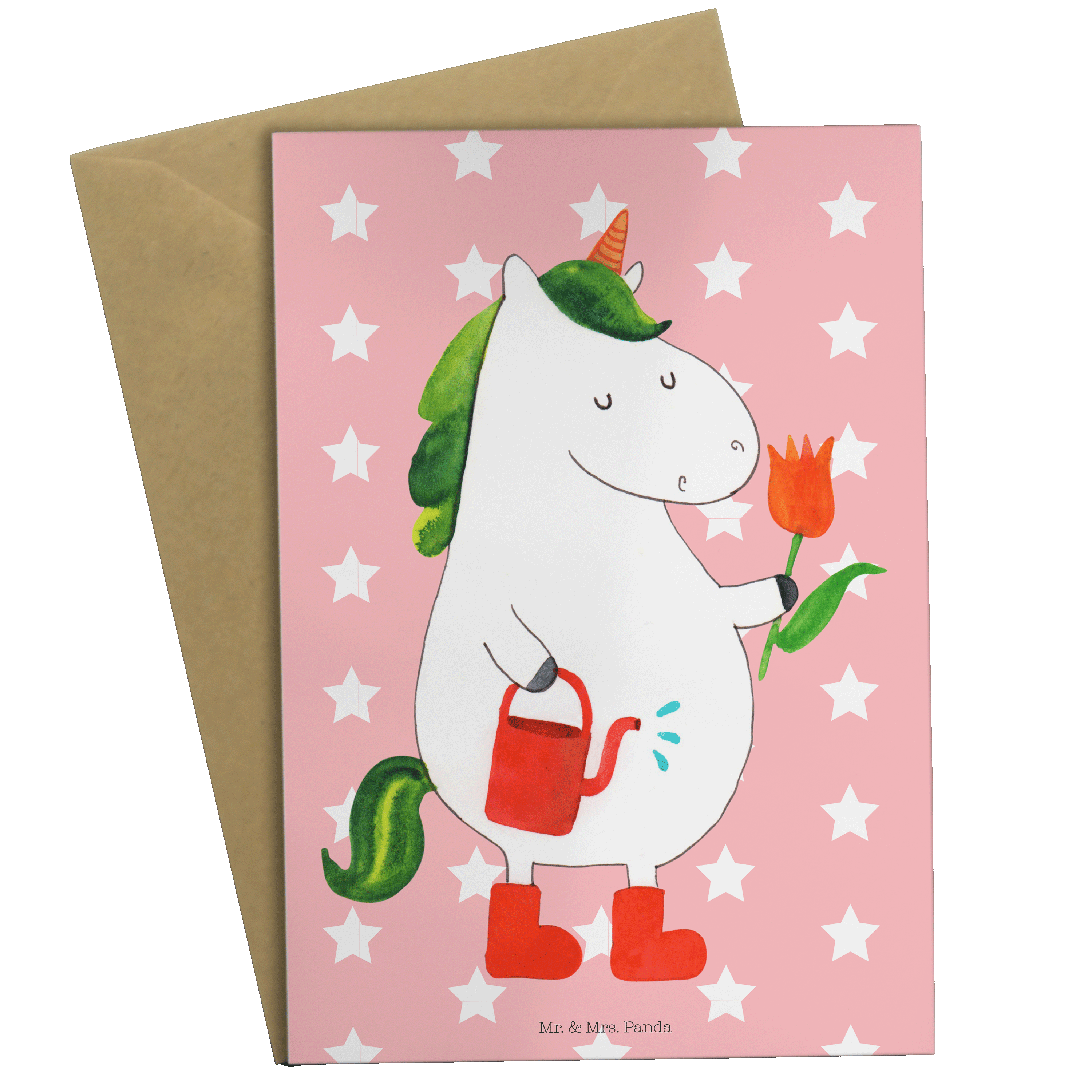 Grußkarte Einhorn Gärtner - mit Spruch - Rot Pastell