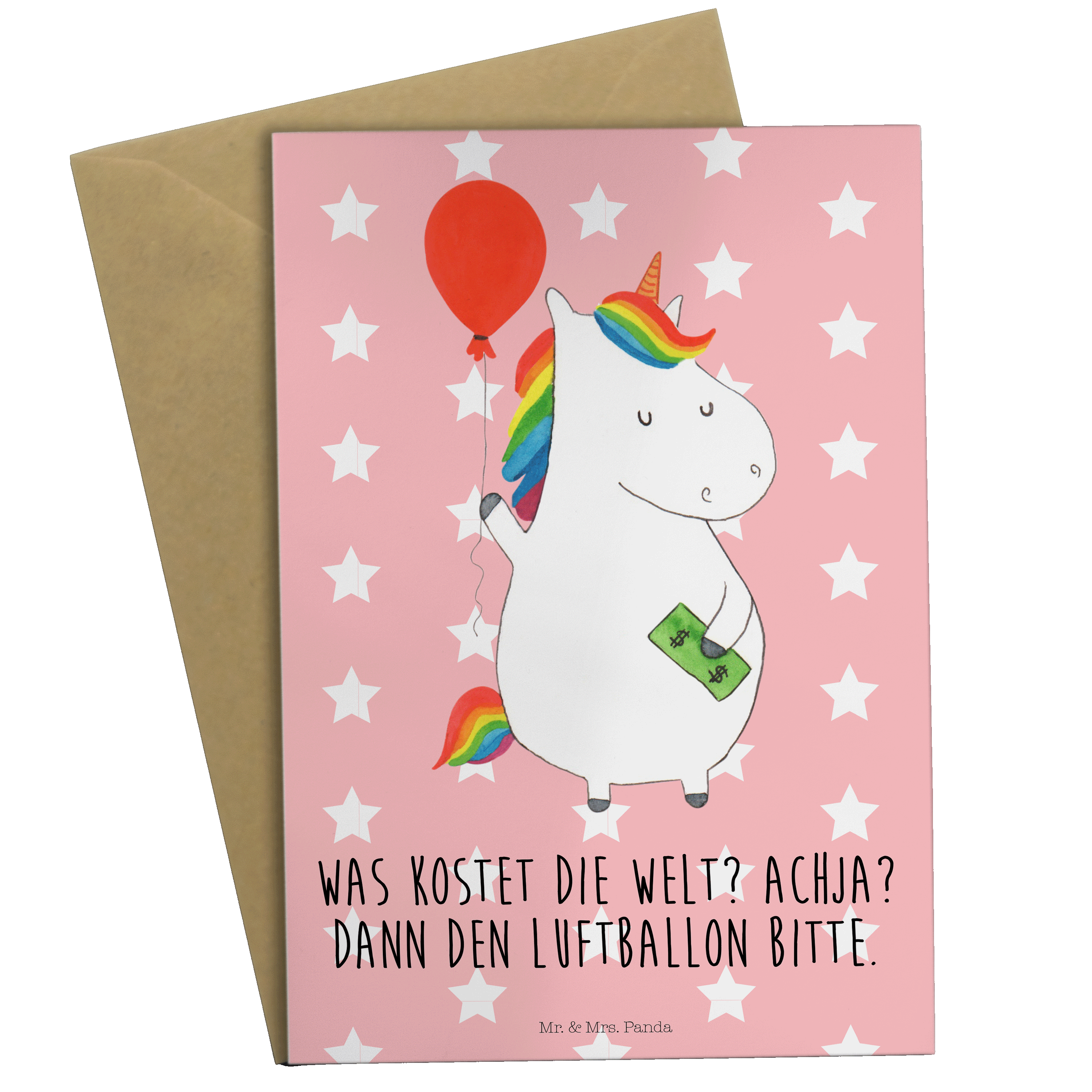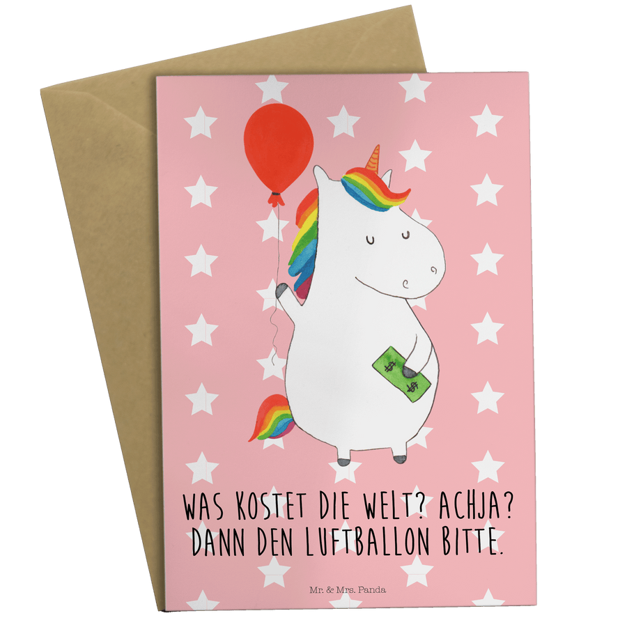 Grußkarte Einhorn Luftballon - mit Spruch - Rot Pastell