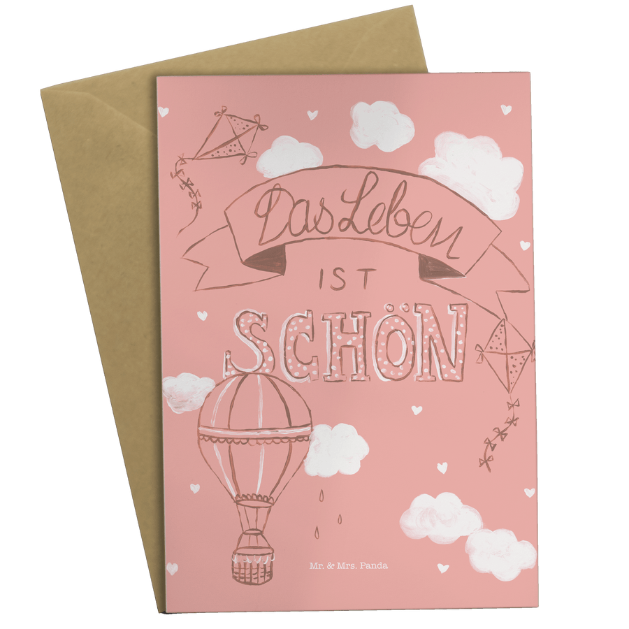 Grußkarte Heißluftballons Das Leben ist schön Klappkarte, Einladungskarte, Glückwunschkarte, Hochzeitskarte, Geburtstagskarte, Karte, Blumen Deko, Frühlings Deko, Sommer Deko, Dekoration, positive Botschaft, Naturliebhaber, Outdoor, Natur, Abenteuer, Heißluftballon, Leben, Das Leben ist schön, Spruch Leben, Zitat, Inspiration, erleben, glücklich sein, Deko Haus