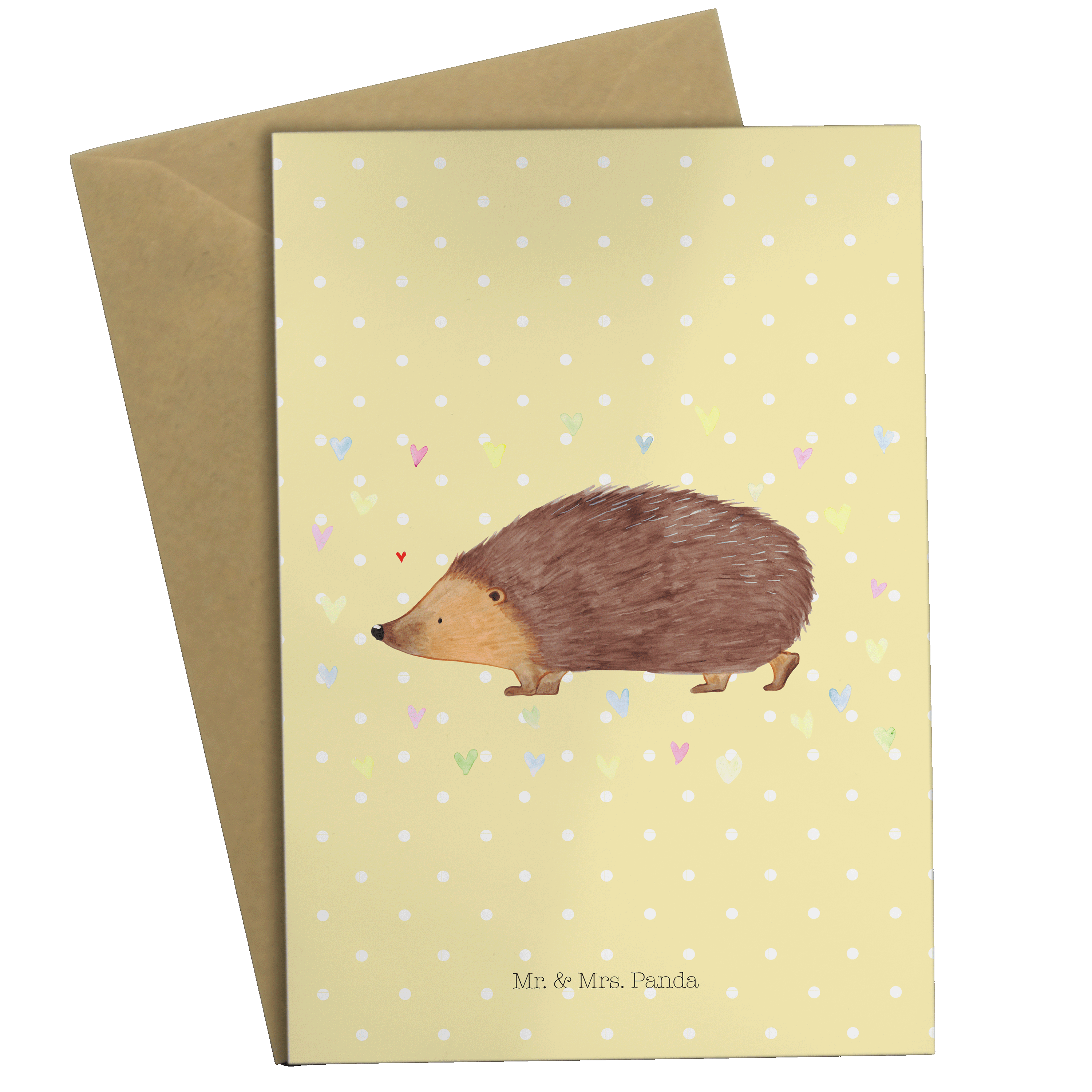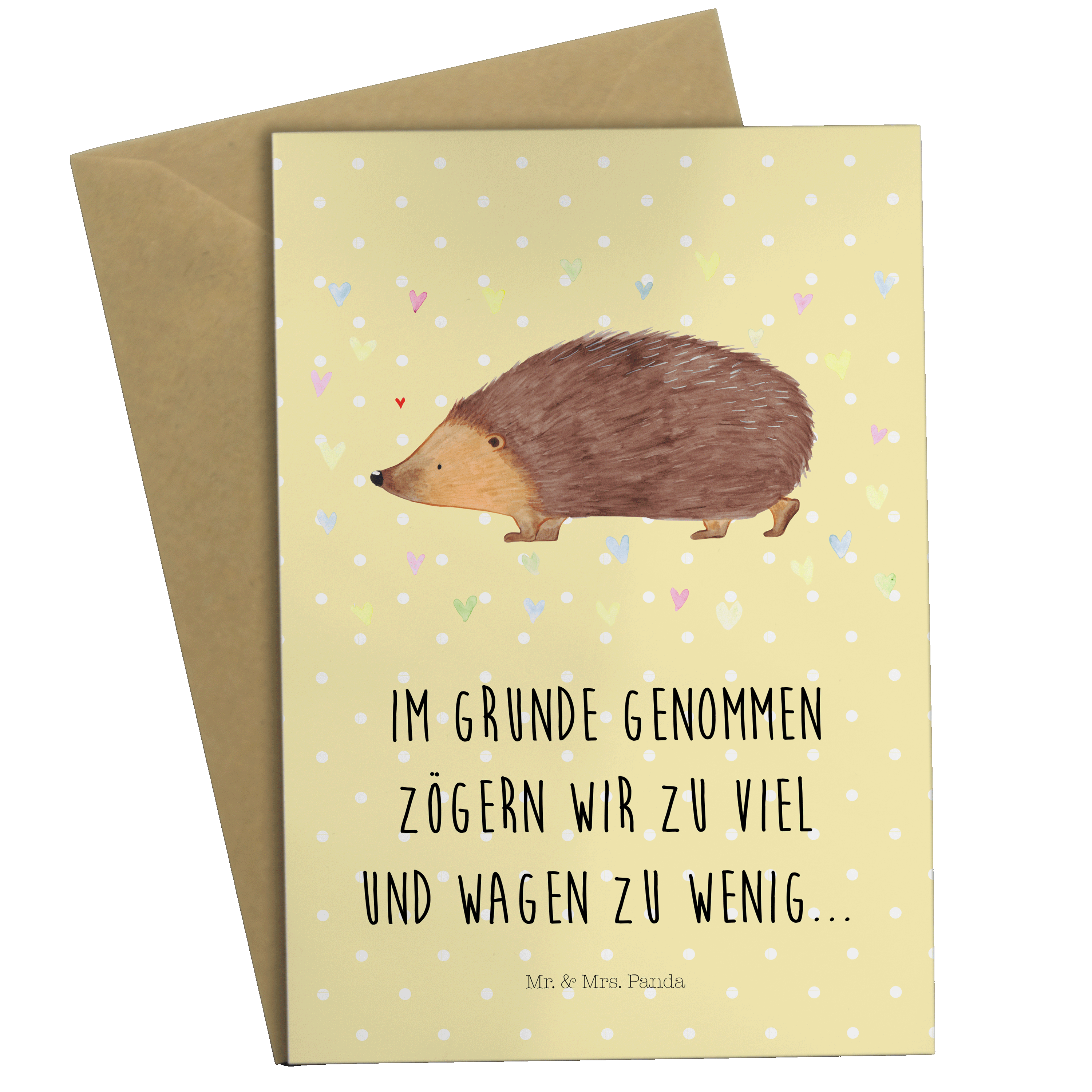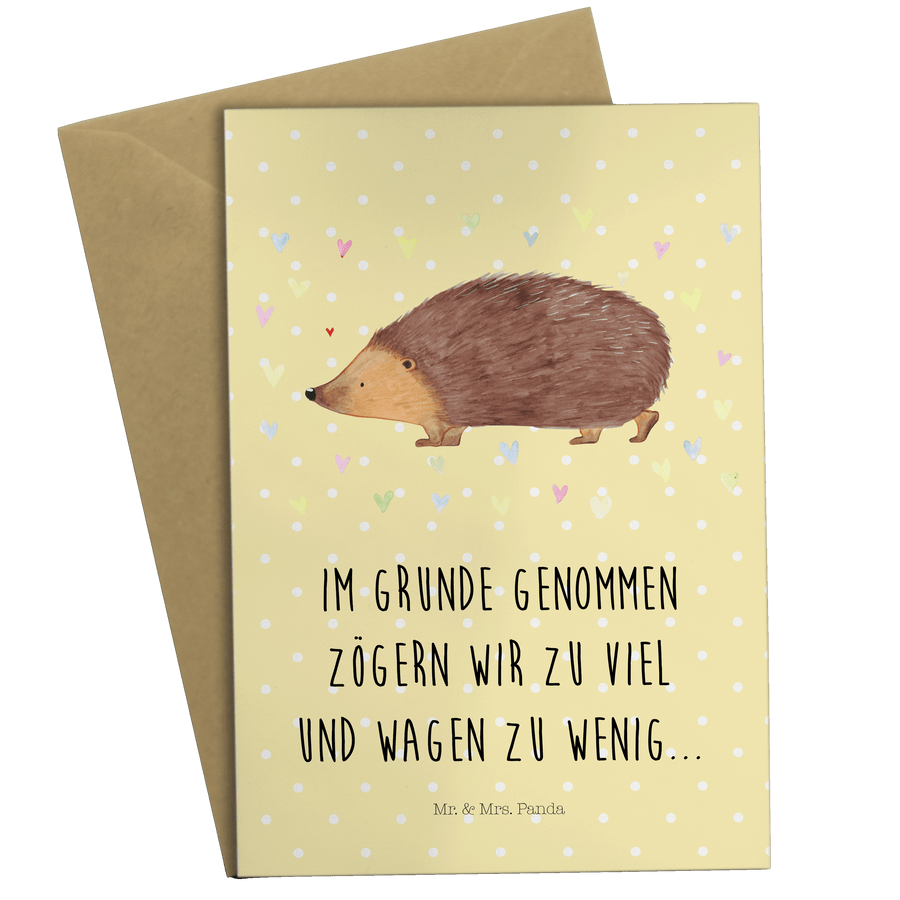 Grußkarte Igel Herzen - mit Spruch - Gelb Pastell