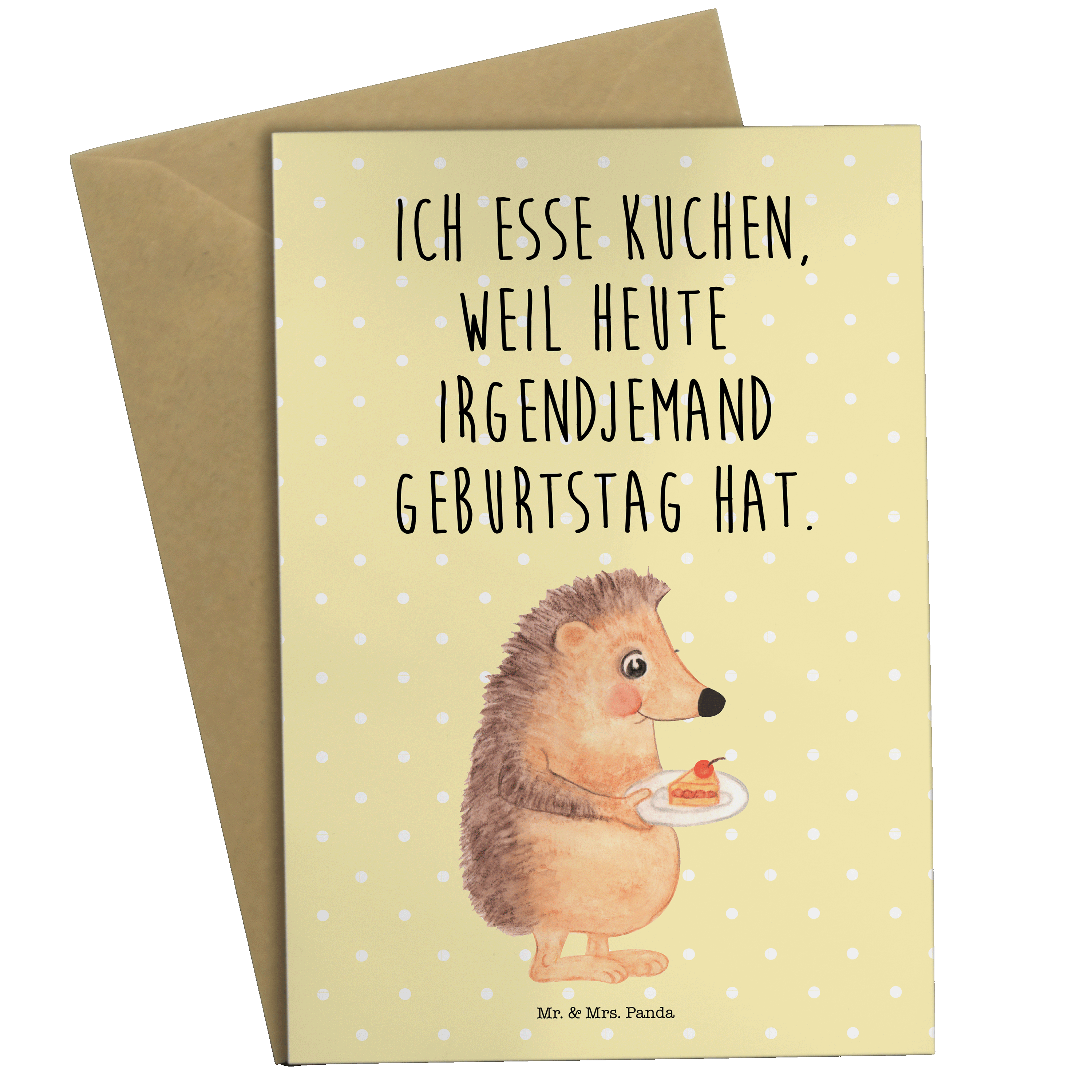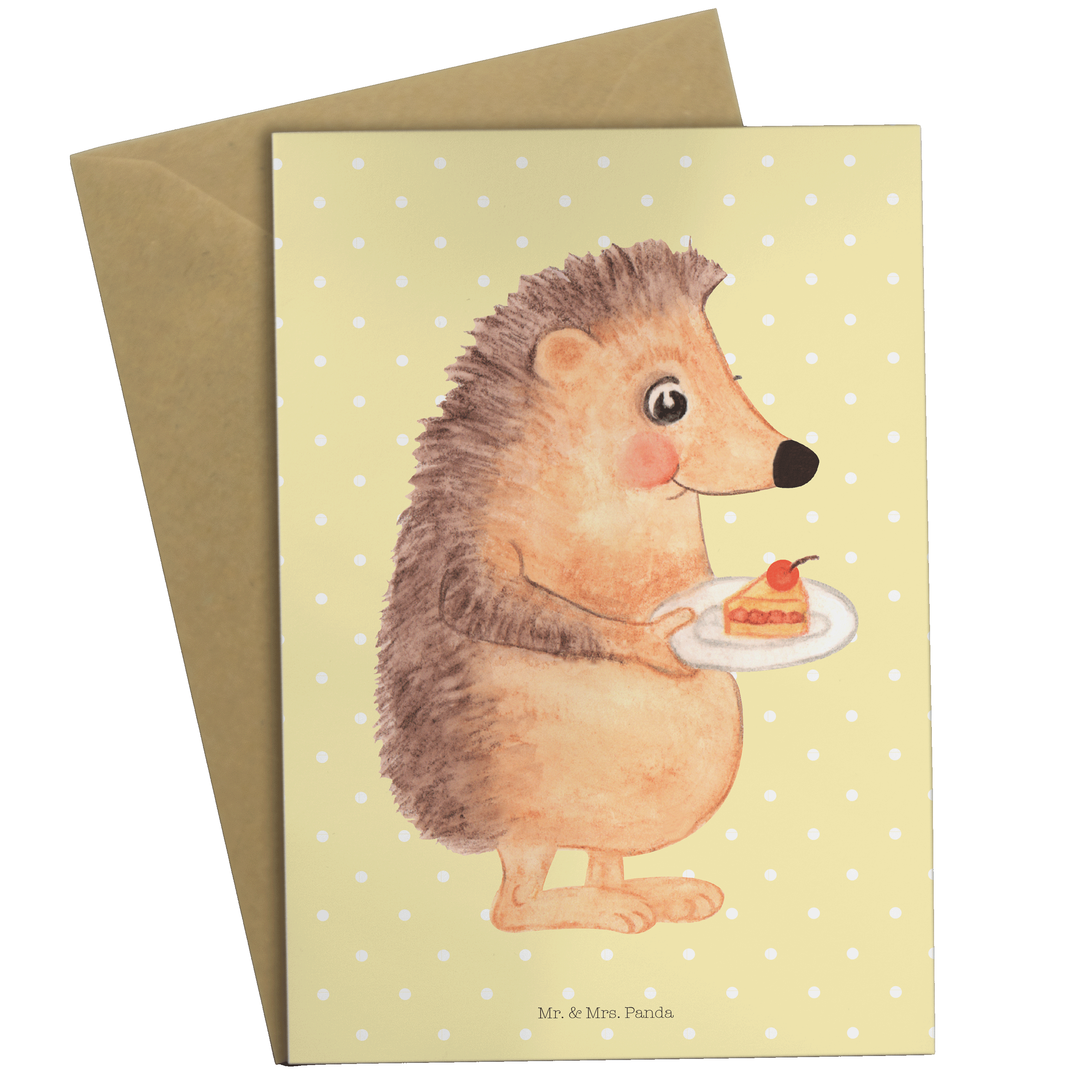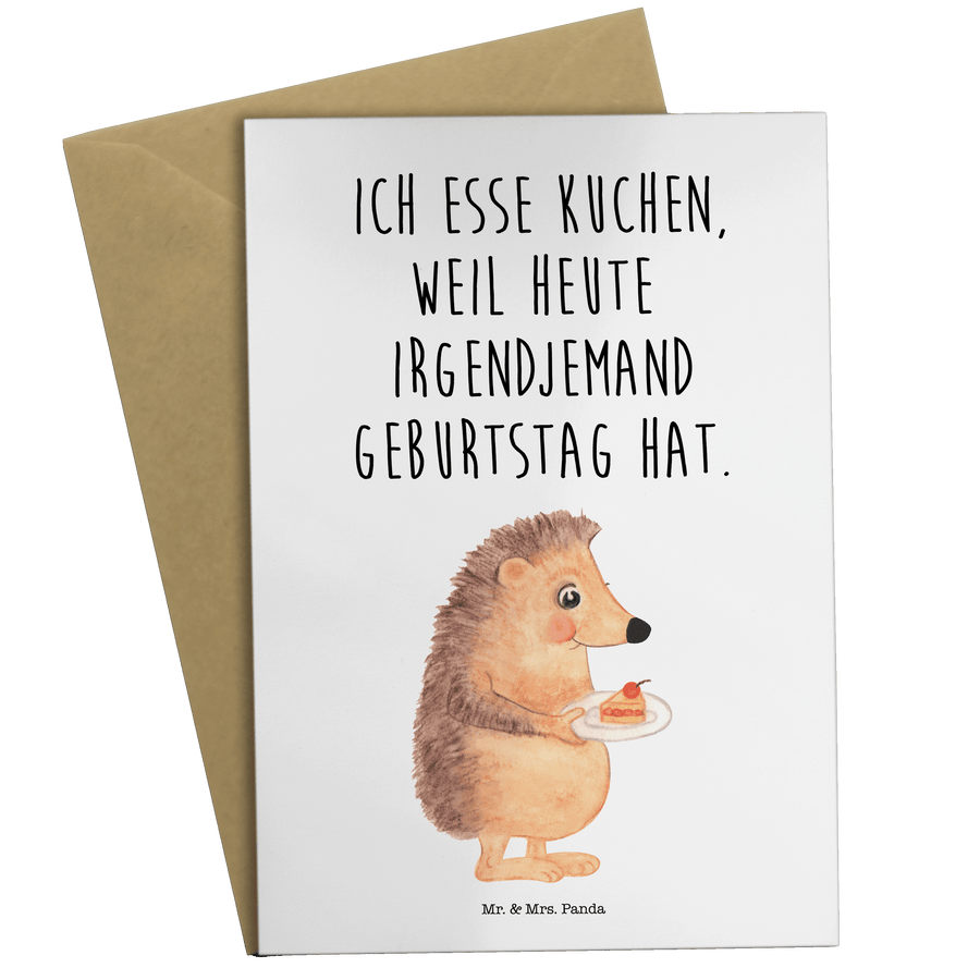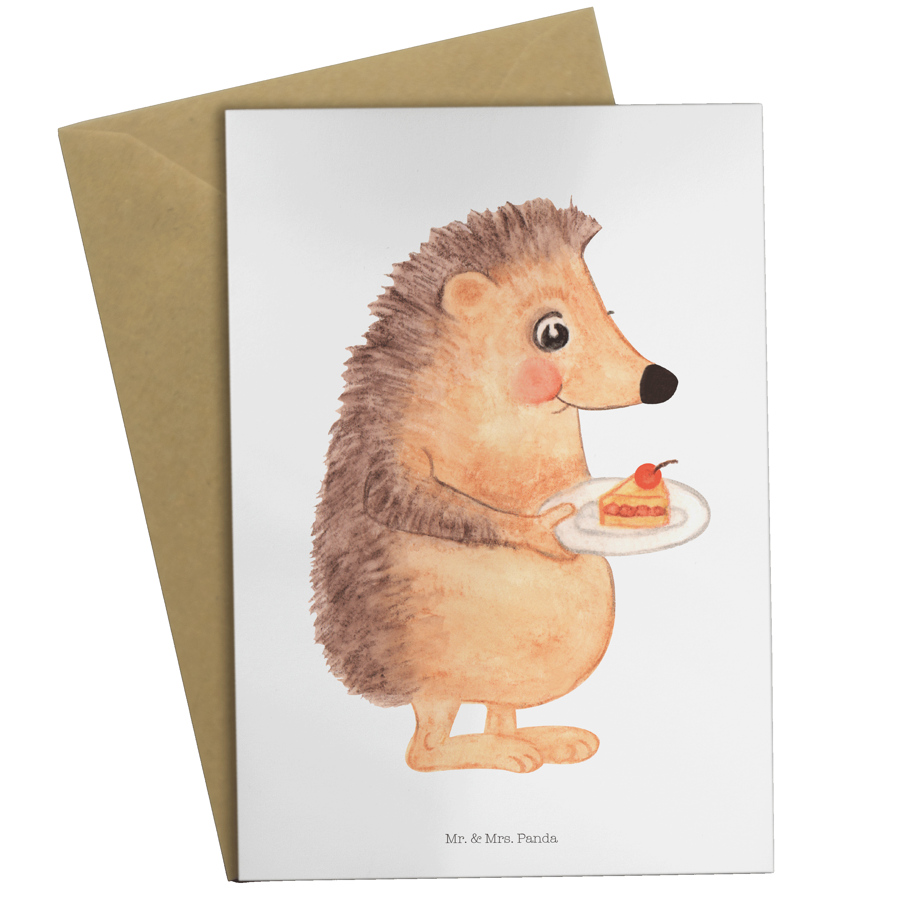 Grußkarte Igel mit Kuchenstück - mit Spruch - Weiß