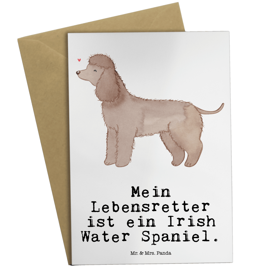 Grußkarte Irish Water Spaniel Lebensretter Klappkarte, Einladungskarte, Glückwunschkarte, Hochzeitskarte, Geburtstagskarte, Karte, Hund, Hunderasse, Rassehund, Hundebesitzer, Geschenk, Tierfreund, Schenken, Welpe, Irish Water Spaniel, Jagdhund