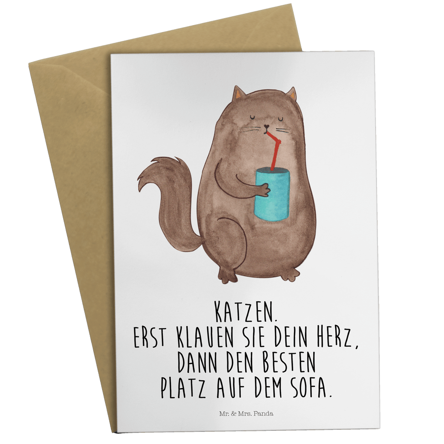 Grußkarte Katze Dose - mit Spruch - Weiß