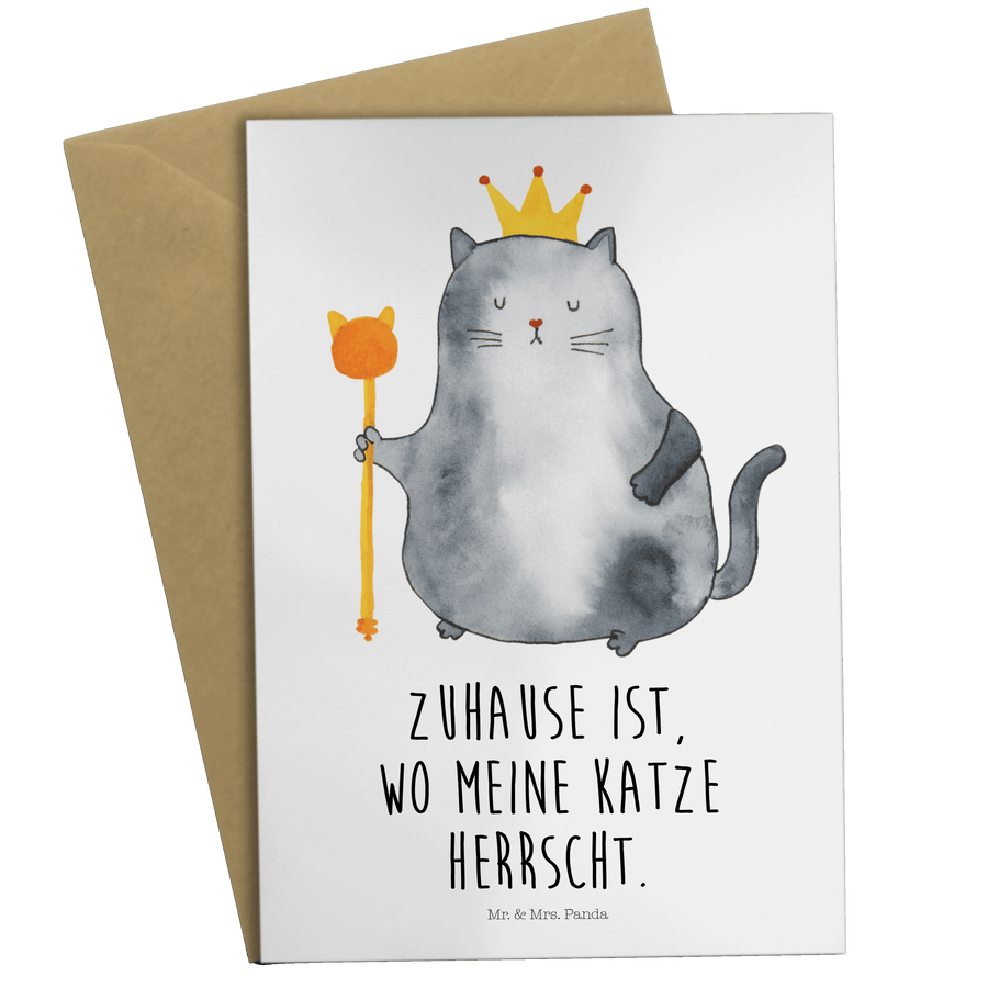 Grußkarte Katzen Koenig - mit Spruch - Weiß