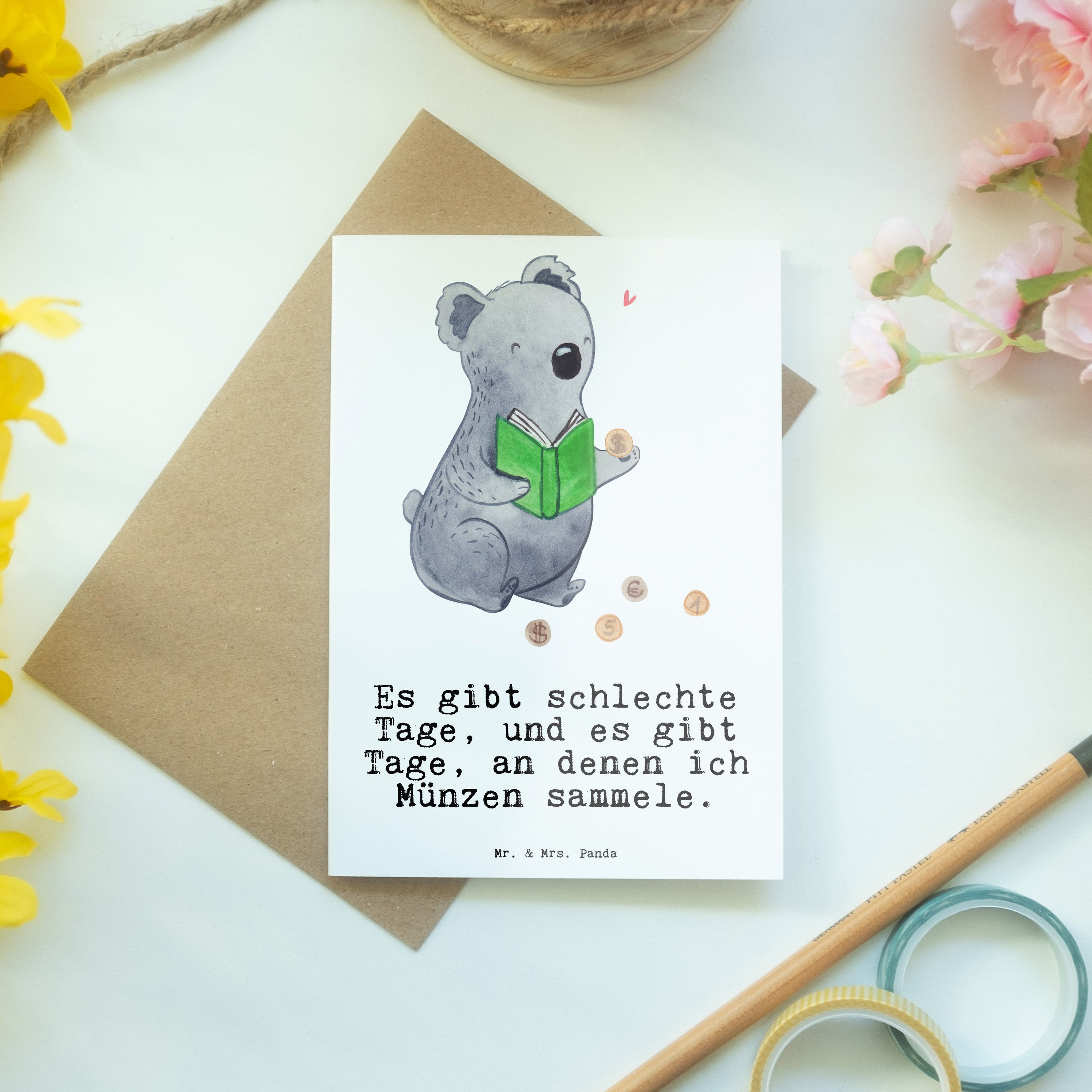 Grußkarte Koala Münzen sammeln Tage