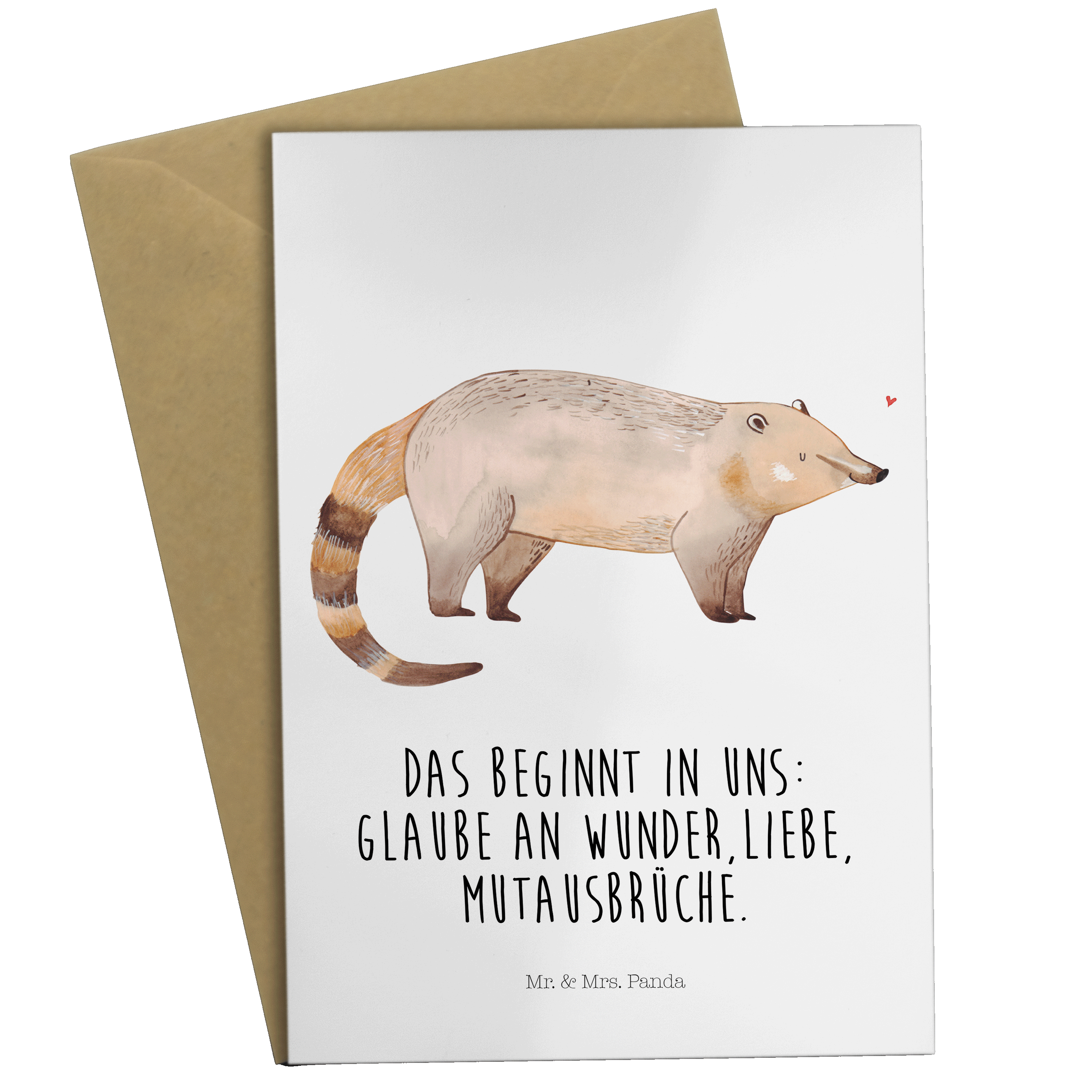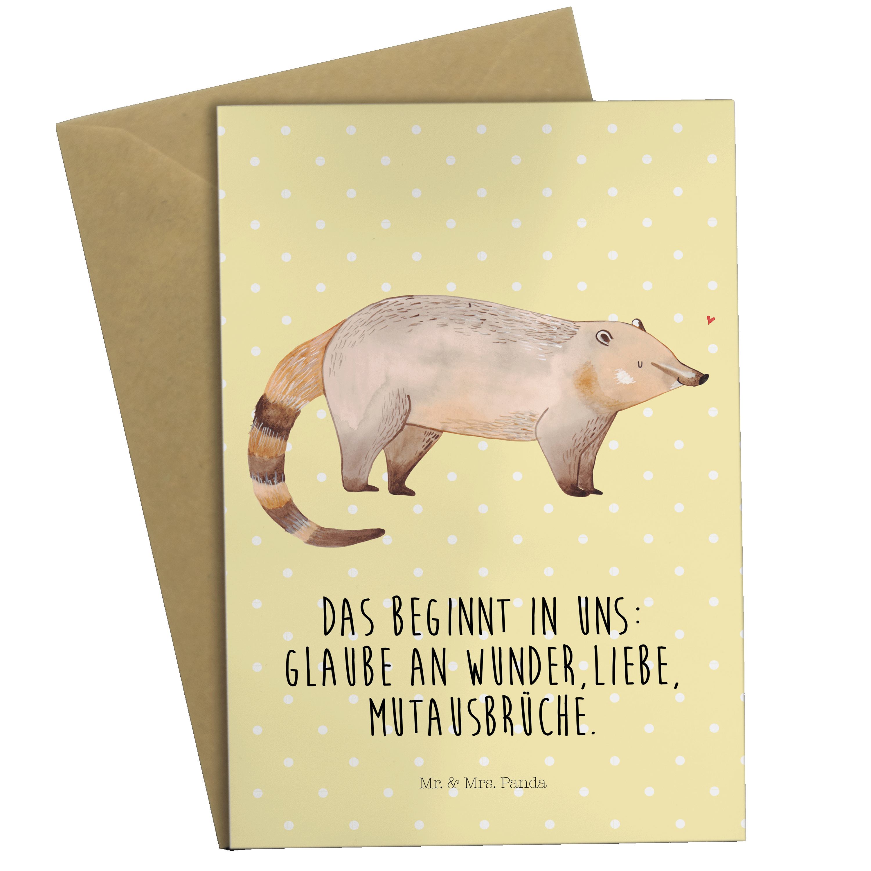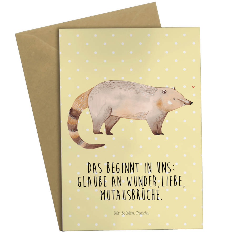 Grußkarte Nasenbär - mit Spruch - Gelb Pastell