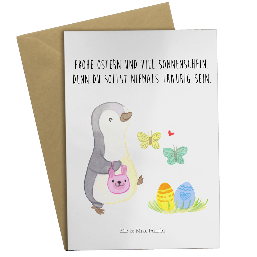 Grußkarte Pinguin Eiersuche - mit Spruch - Weiß