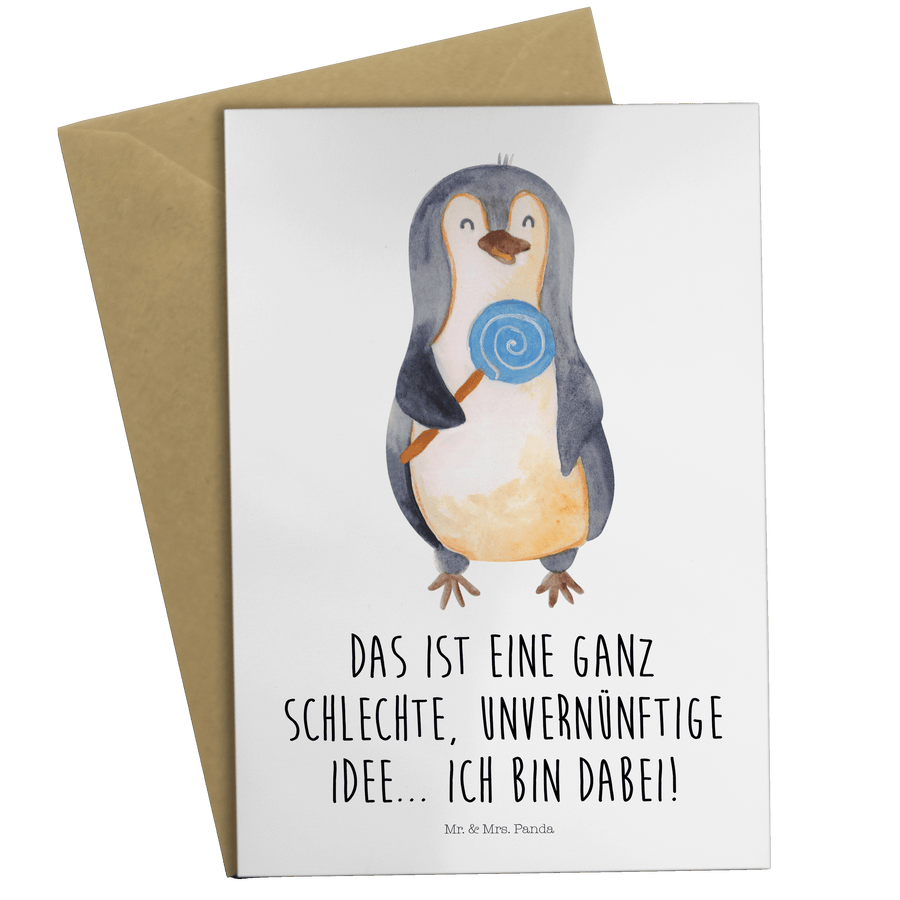 Grußkarte Pinguin Lolli - mit Spruch - Weiß