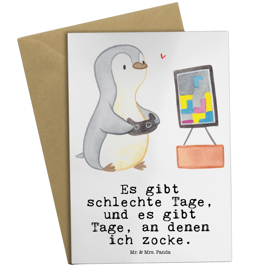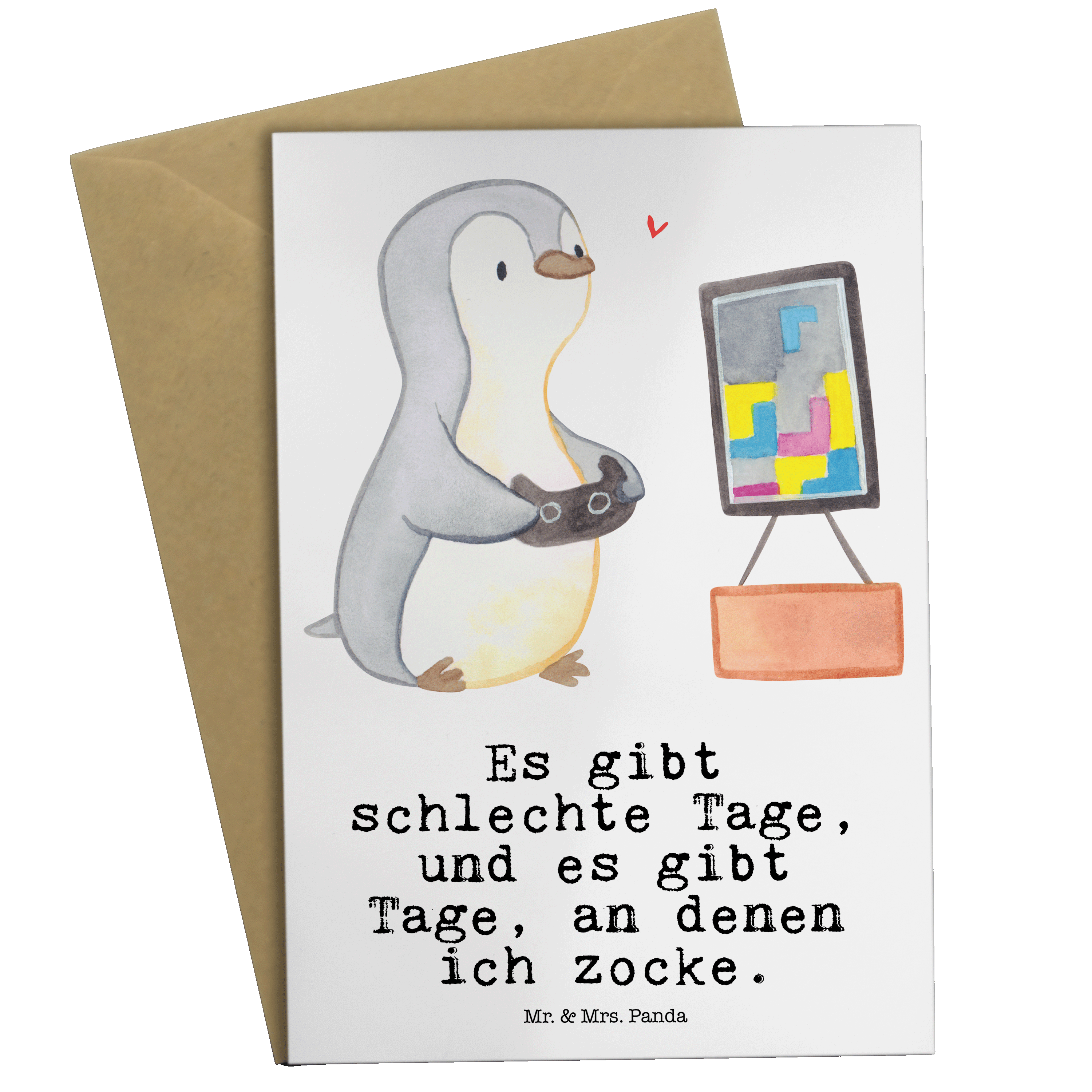 Grußkarte Pinguin Zocken Tage Klappkarte, Einladungskarte, Glückwunschkarte, Hochzeitskarte, Geburtstagskarte, Karte, Geschenk, Sport, Sportart, Hobby, Schenken, Danke, Dankeschön, Auszeichnung, Gewinn, Sportler, Zocken, Gaming, Videospiele, Videogames