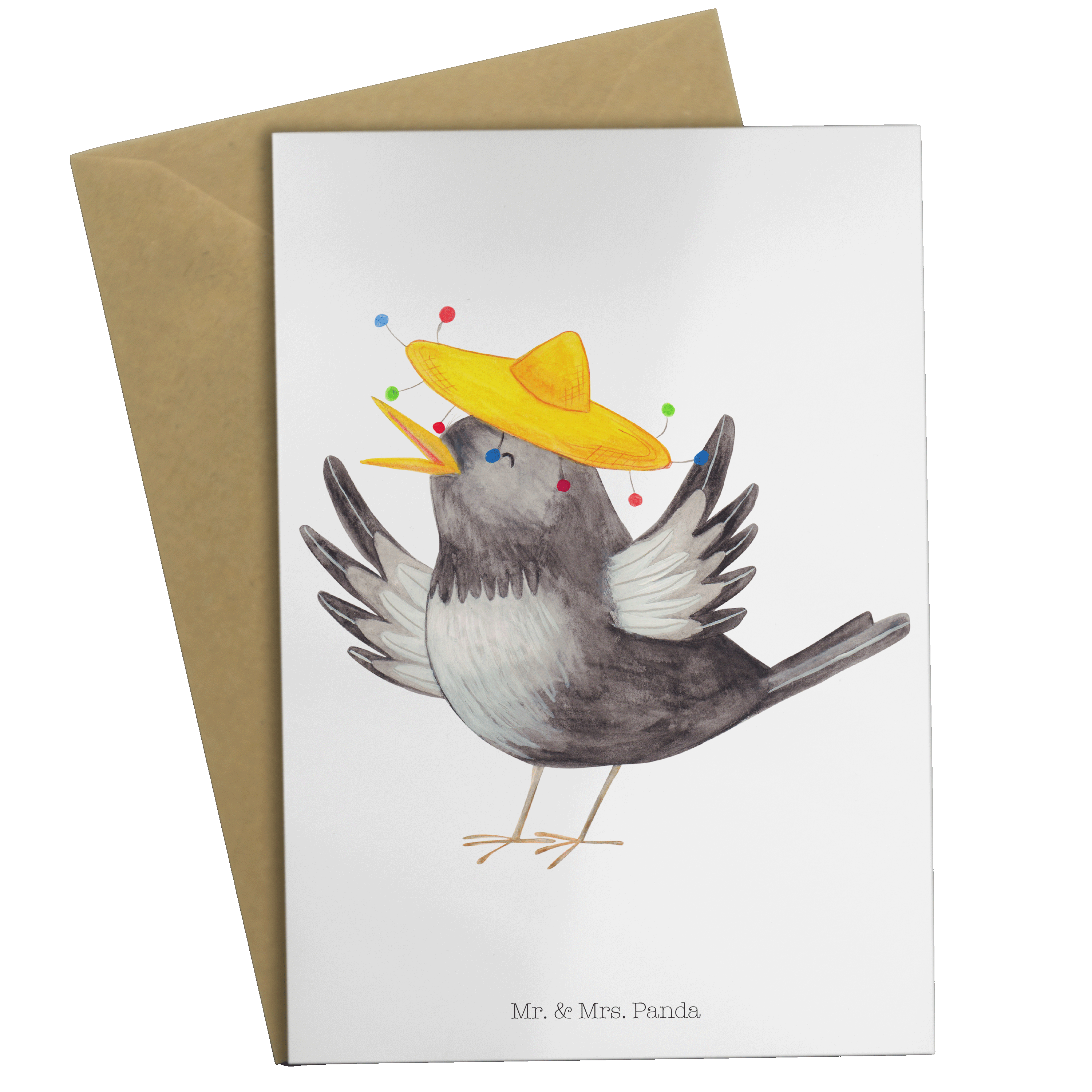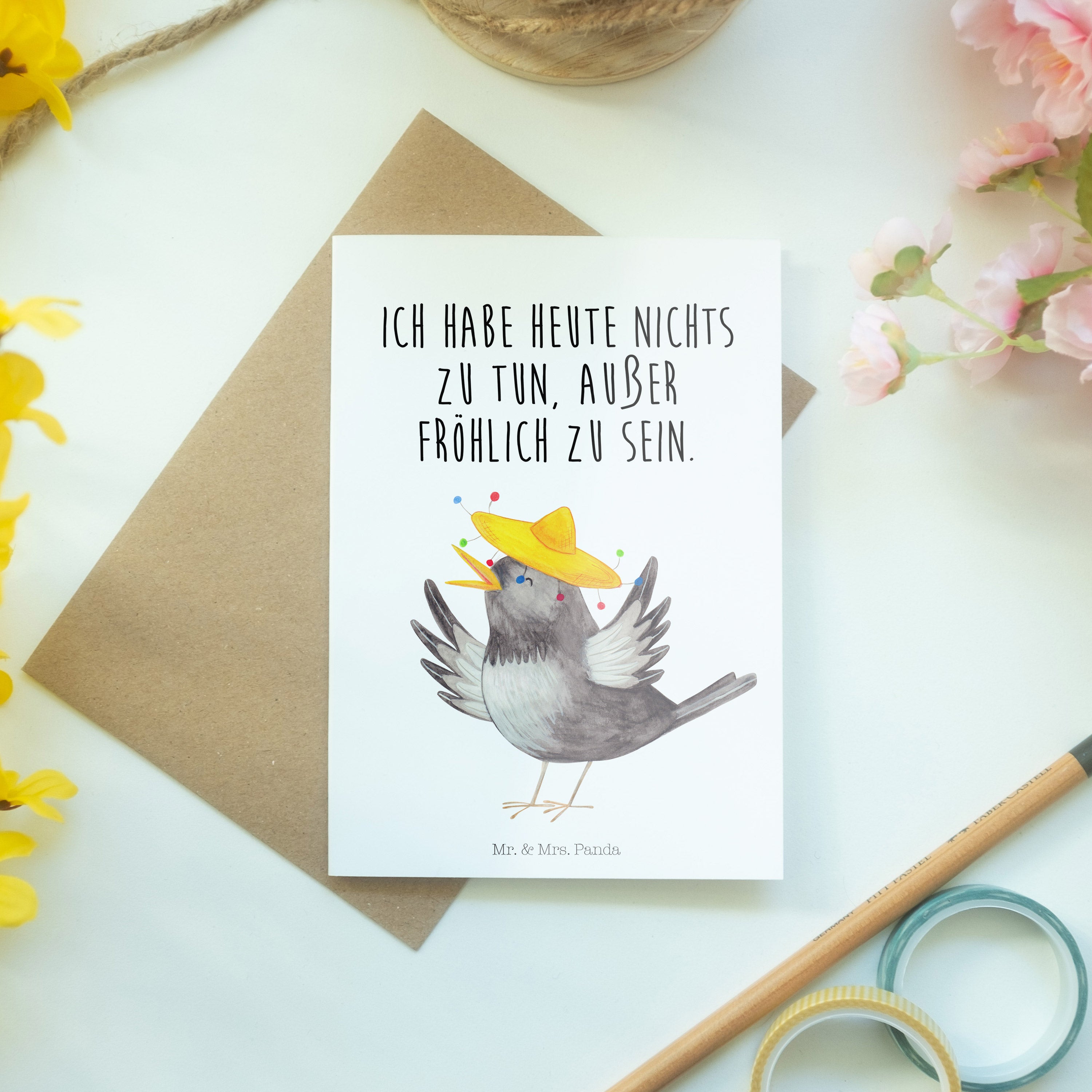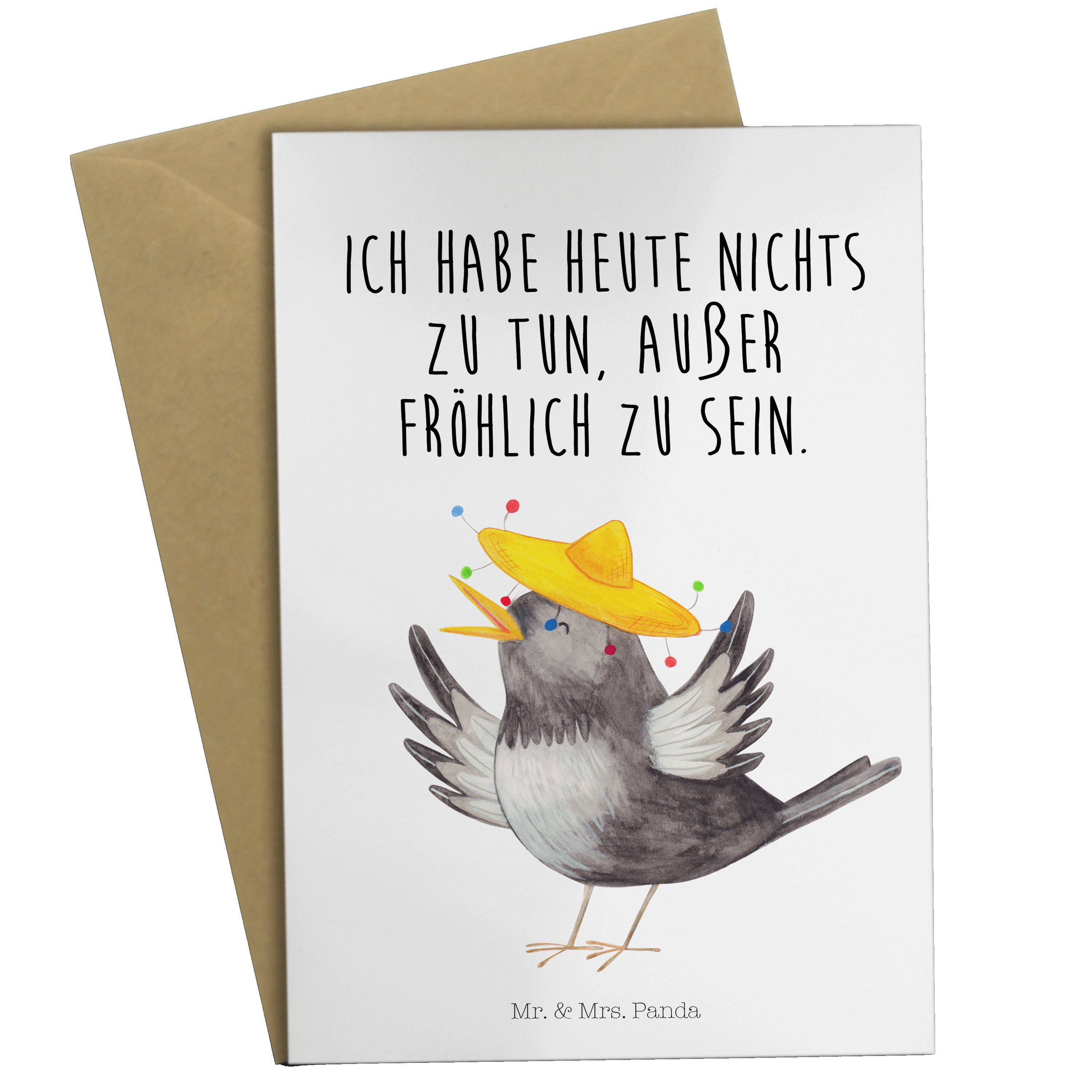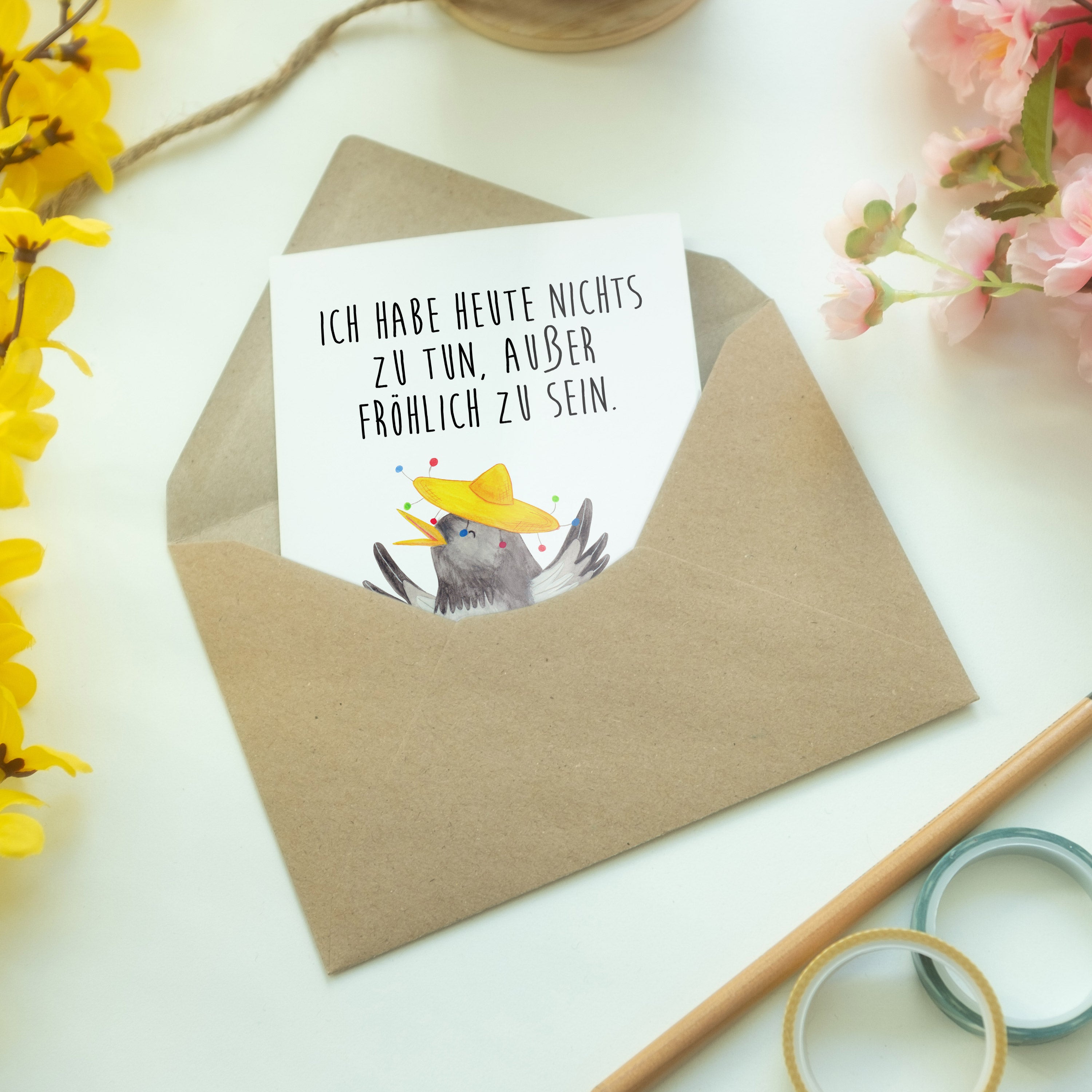 Grußkarte Rabe mit Sombrero - mit Spruch - Weiß