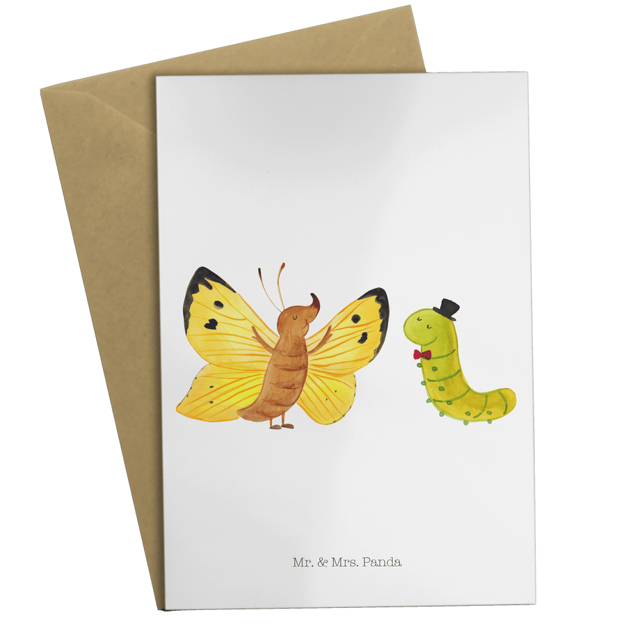 Grußkarte Raupe & Schmetterling - ohne Spruch - Weiß