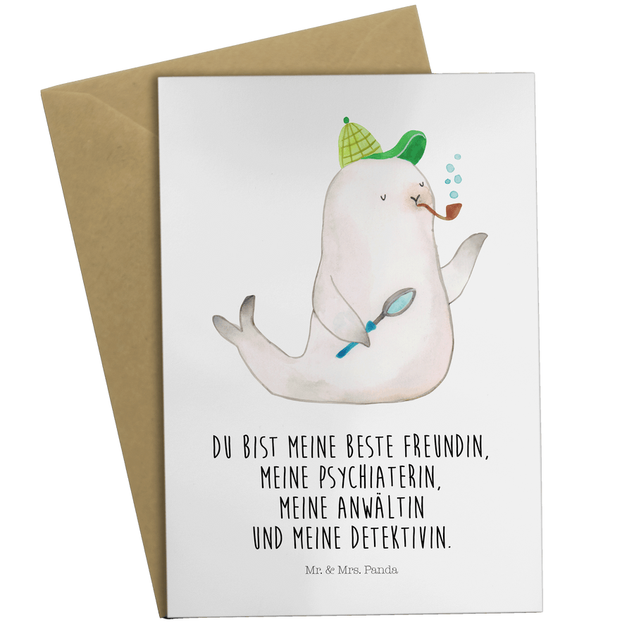 Grußkarte Robbe Sherlock - mit Spruch - Weiß