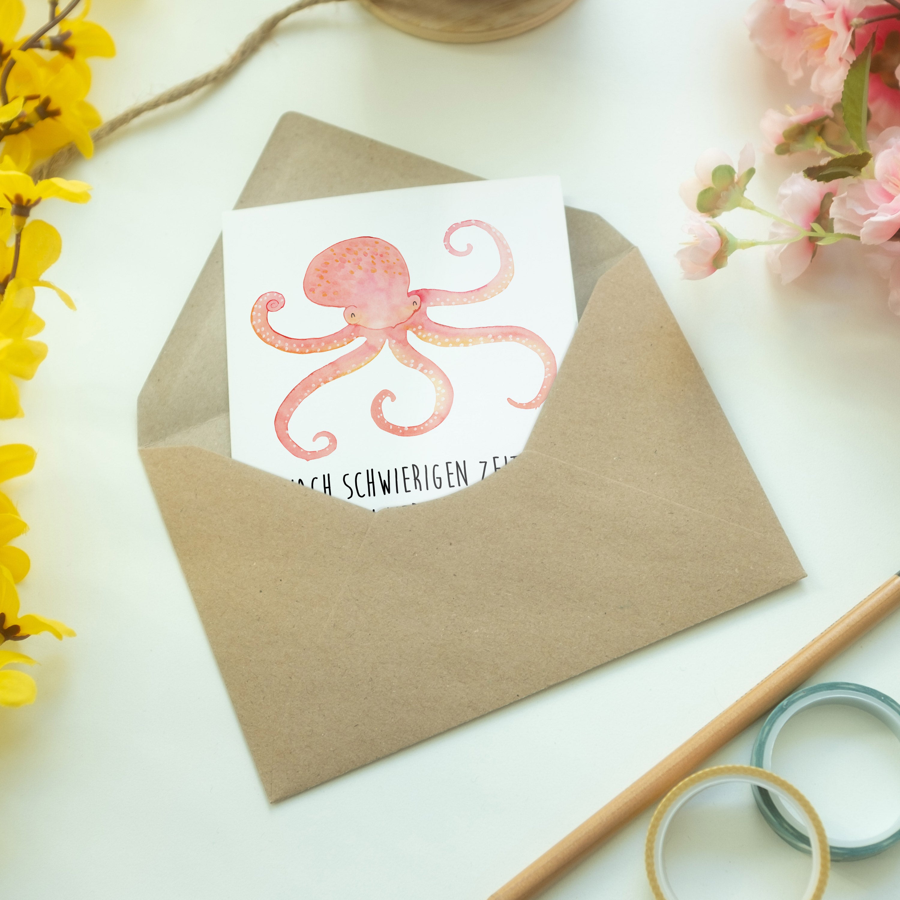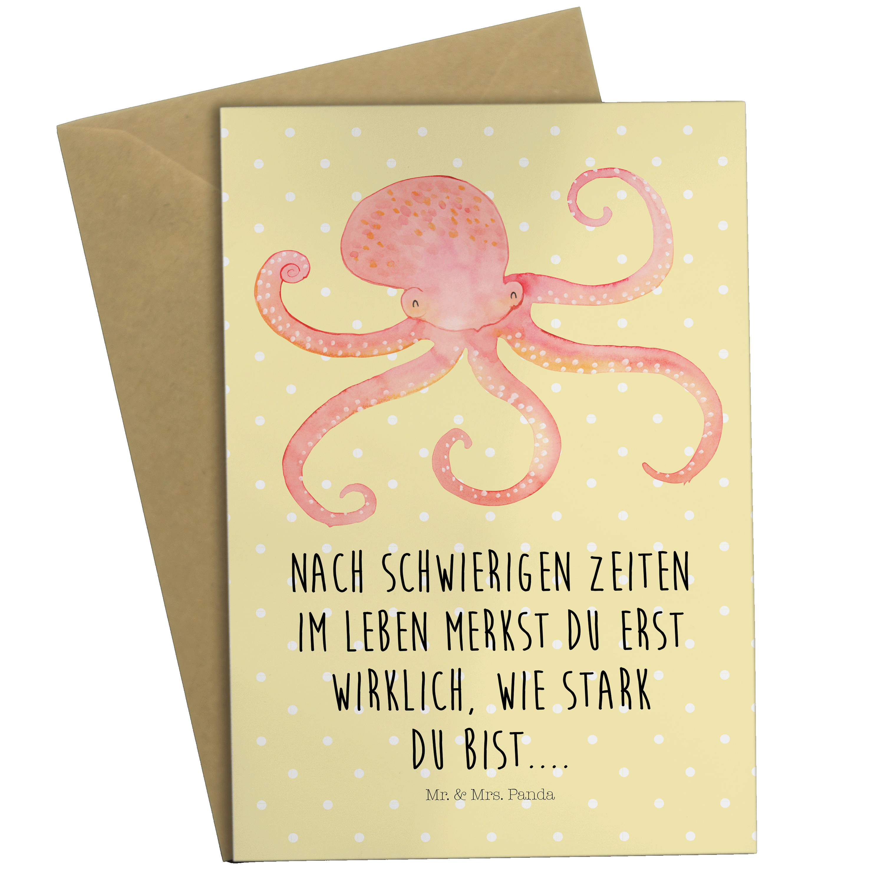 Grußkarte Tintenfisch - mit Spruch - Gelb Pastell