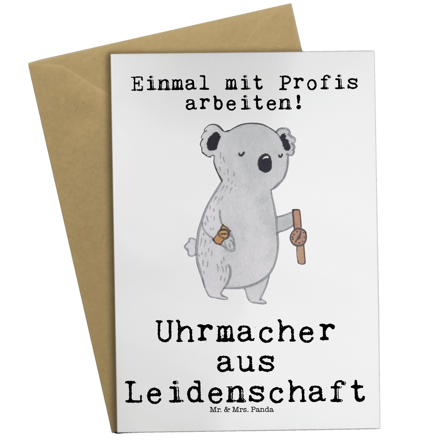 Grußkarte Uhrmacher aus Leidenschaft Klappkarte, Einladungskarte, Glückwunschkarte, Hochzeitskarte, Geburtstagskarte, Karte, Beruf, Ausbildung, Jubiläum, Abschied, Rente, Kollege, Kollegin, Geschenk, Schenken, Arbeitskollege, Mitarbeiter, Firma, Danke, Dankeschön