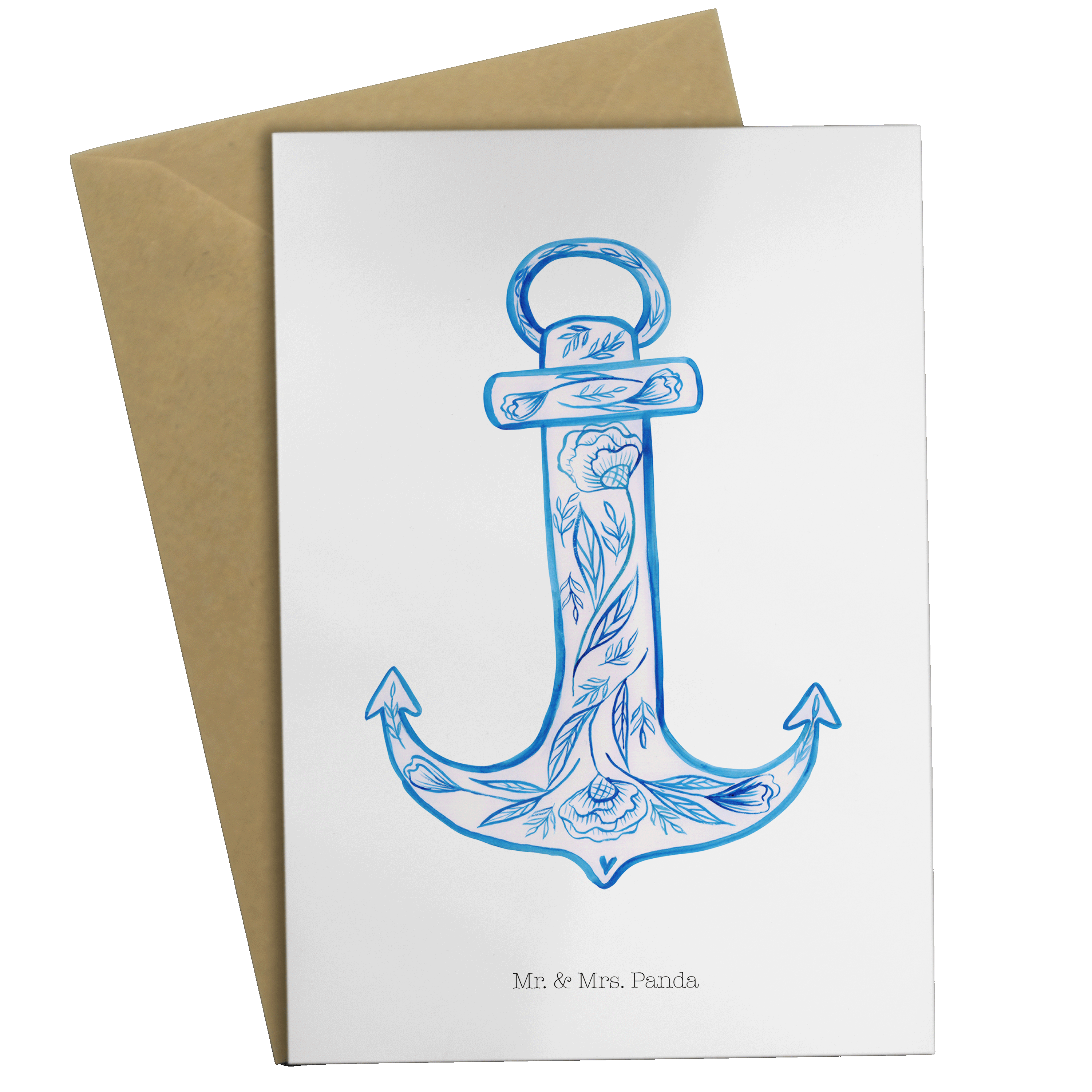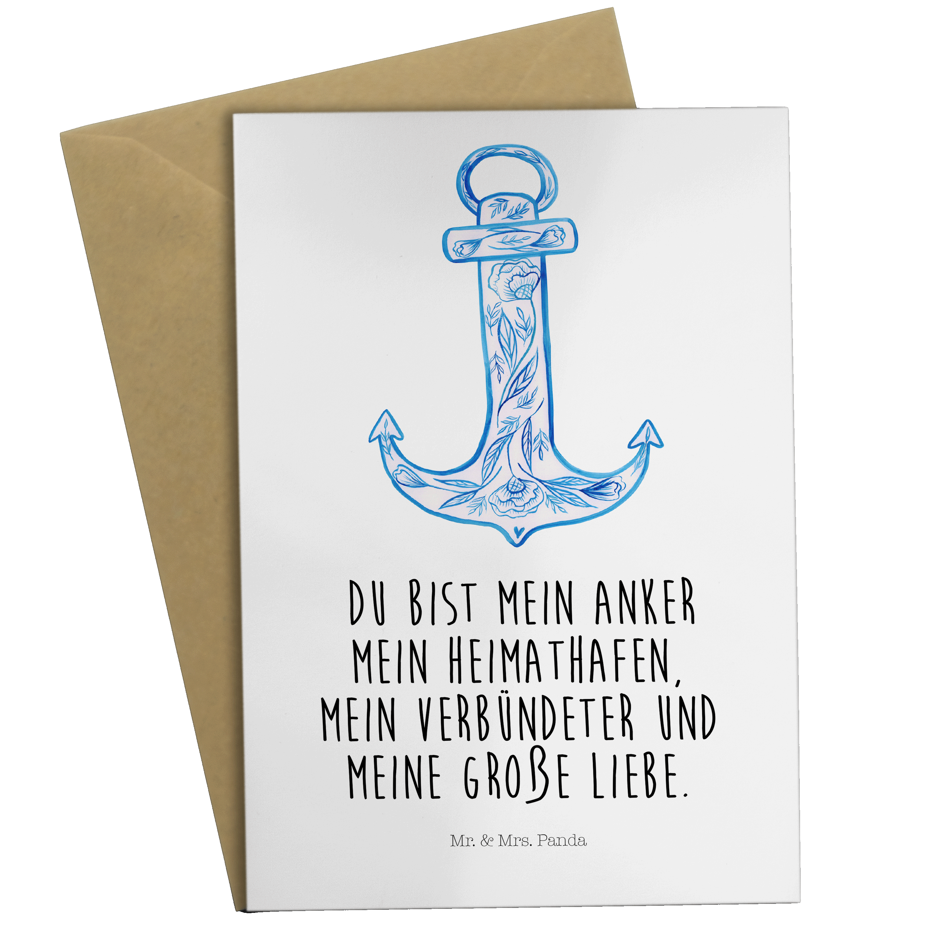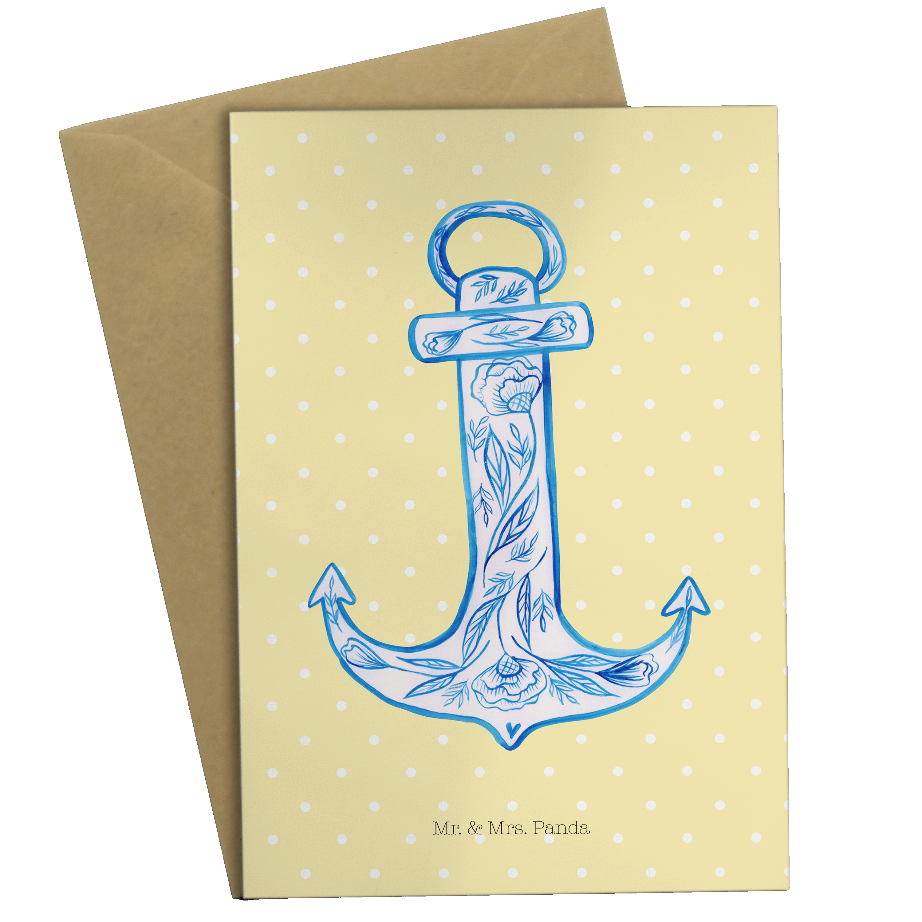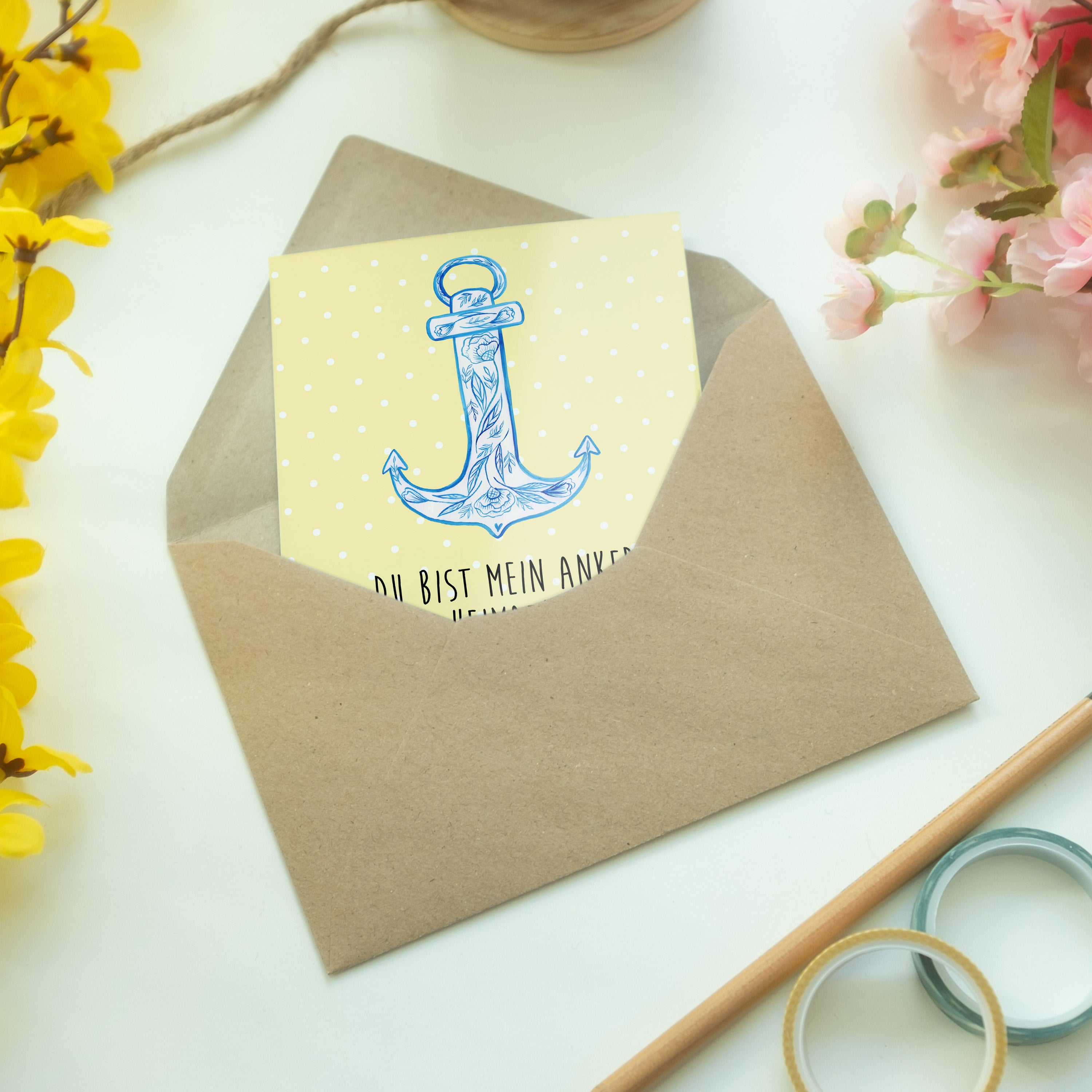 Grußkarte Anker Blau - mit Spruch - Gelb Pastell