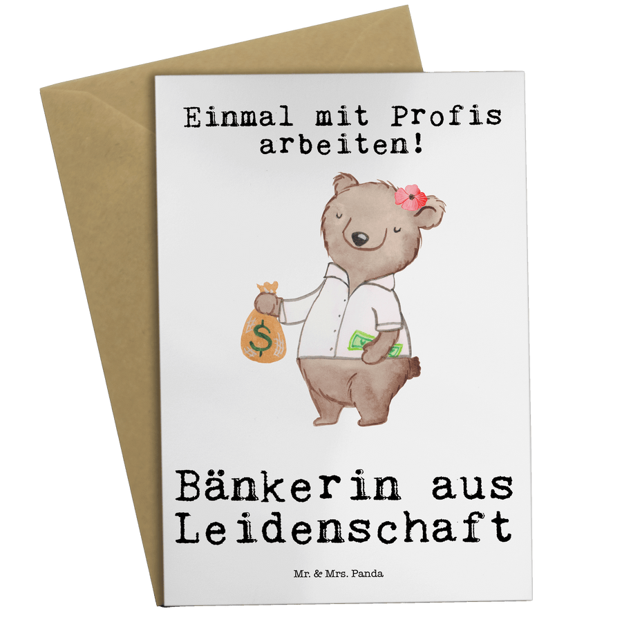 Grußkarte Bänkerin aus Leidenschaft Klappkarte, Einladungskarte, Glückwunschkarte, Hochzeitskarte, Geburtstagskarte, Karte, Beruf, Ausbildung, Jubiläum, Abschied, Rente, Kollege, Kollegin, Geschenk, Schenken, Arbeitskollege, Mitarbeiter, Firma, Danke, Dankeschön, Bänkerin, Bankfachfrau, Bankangestellte, Bankberaterin