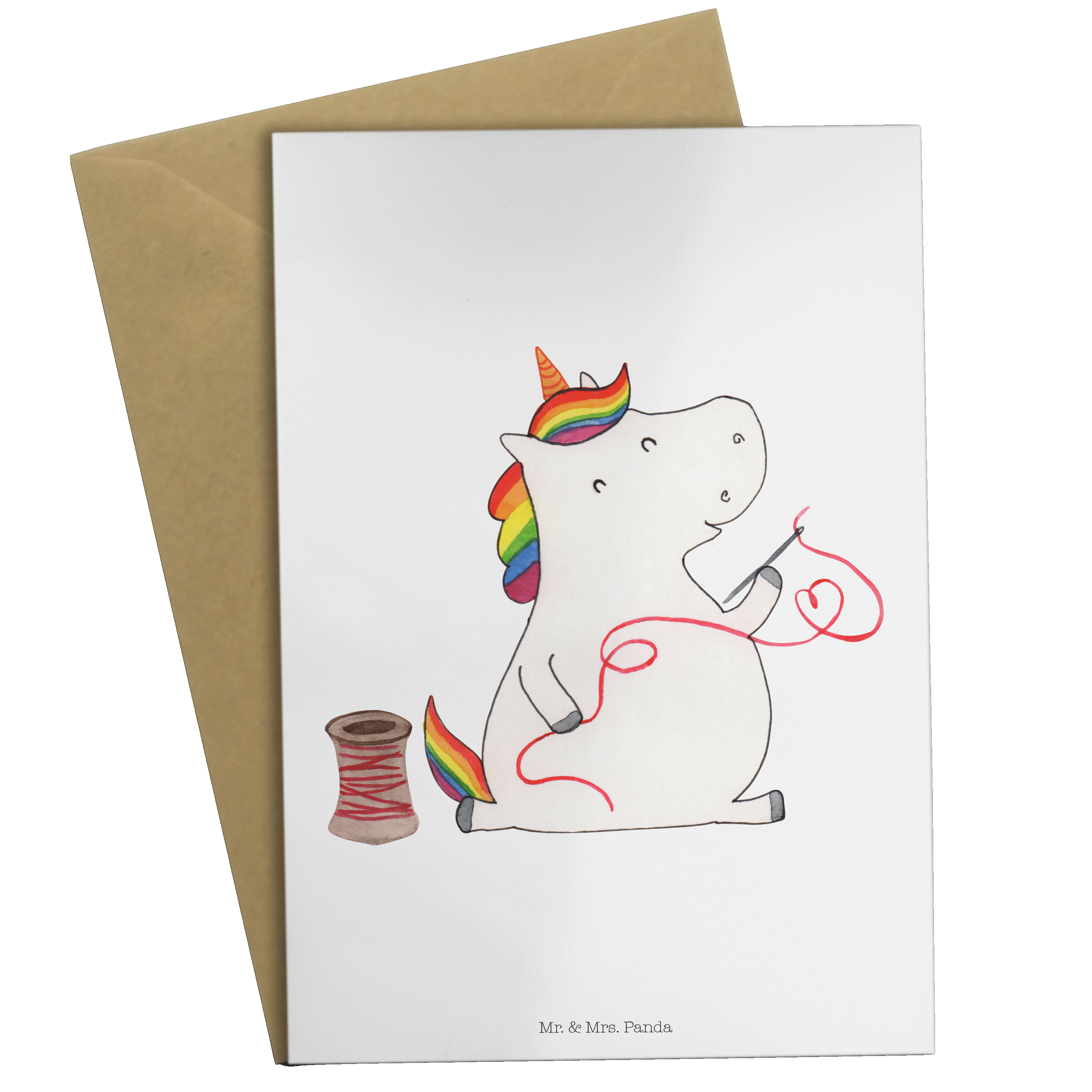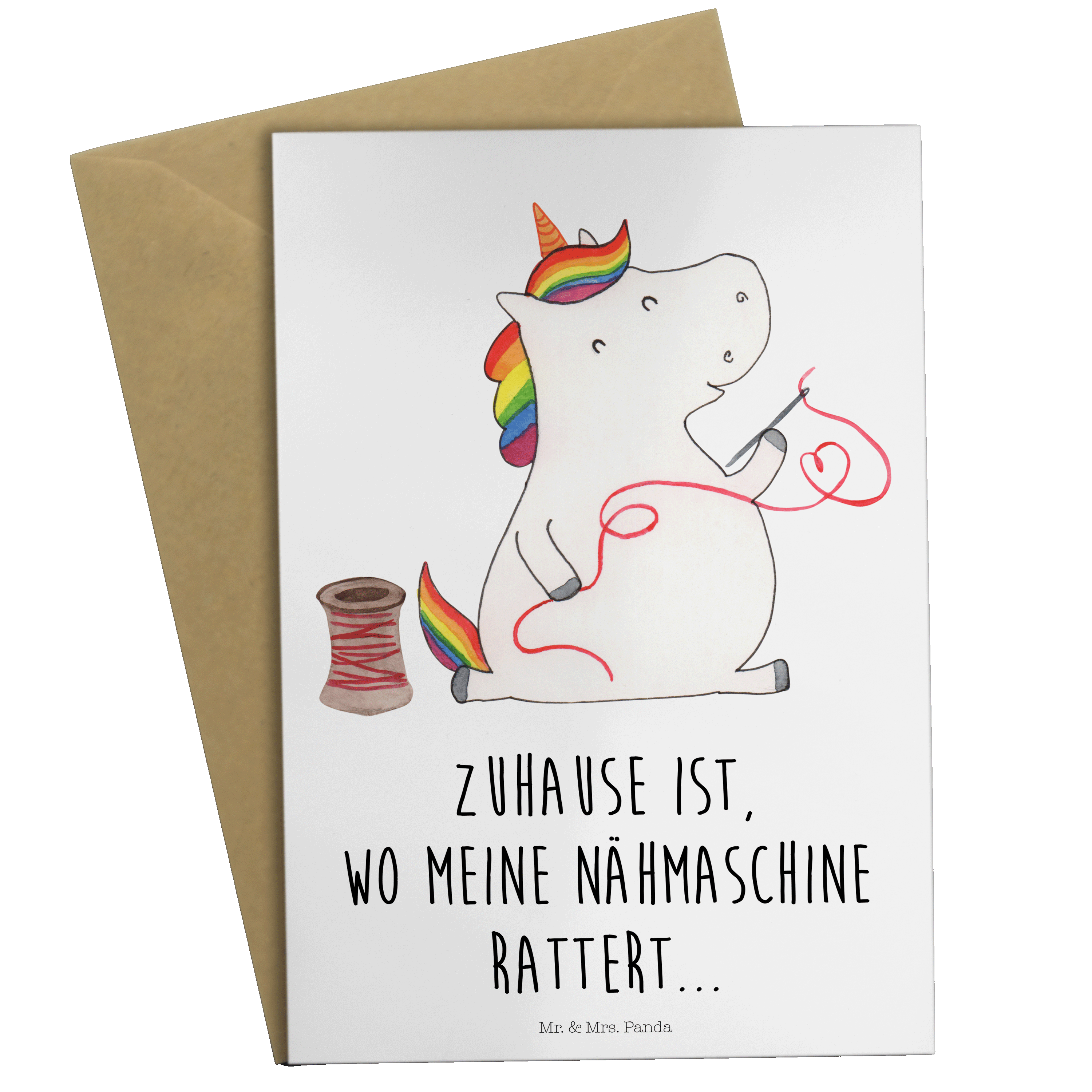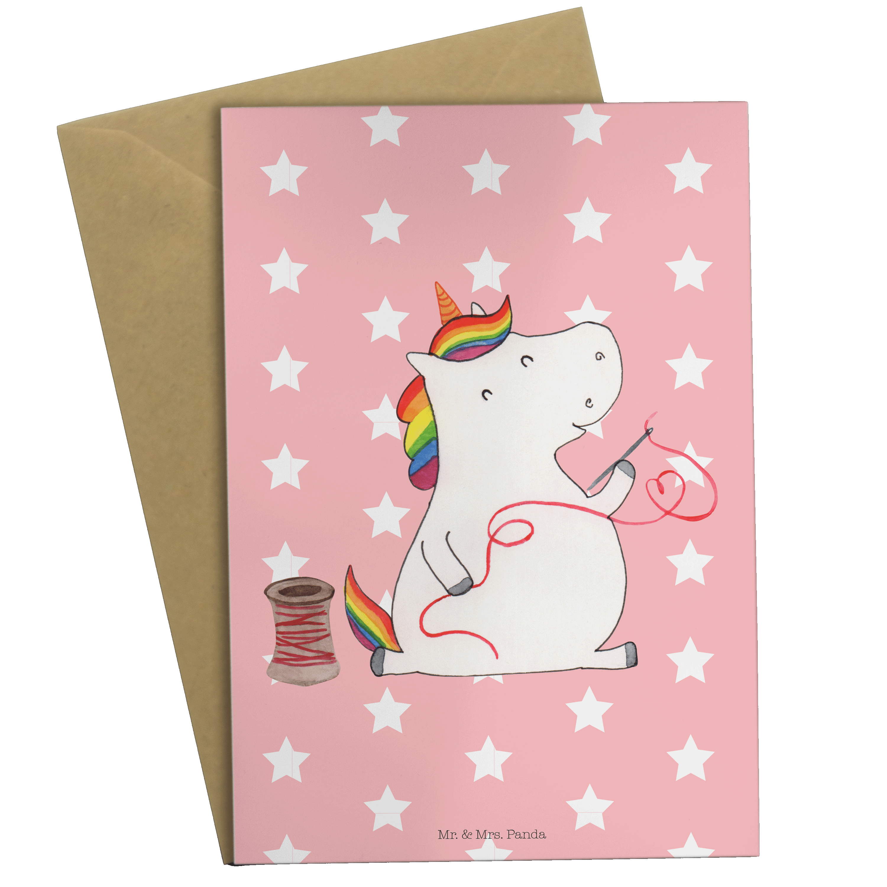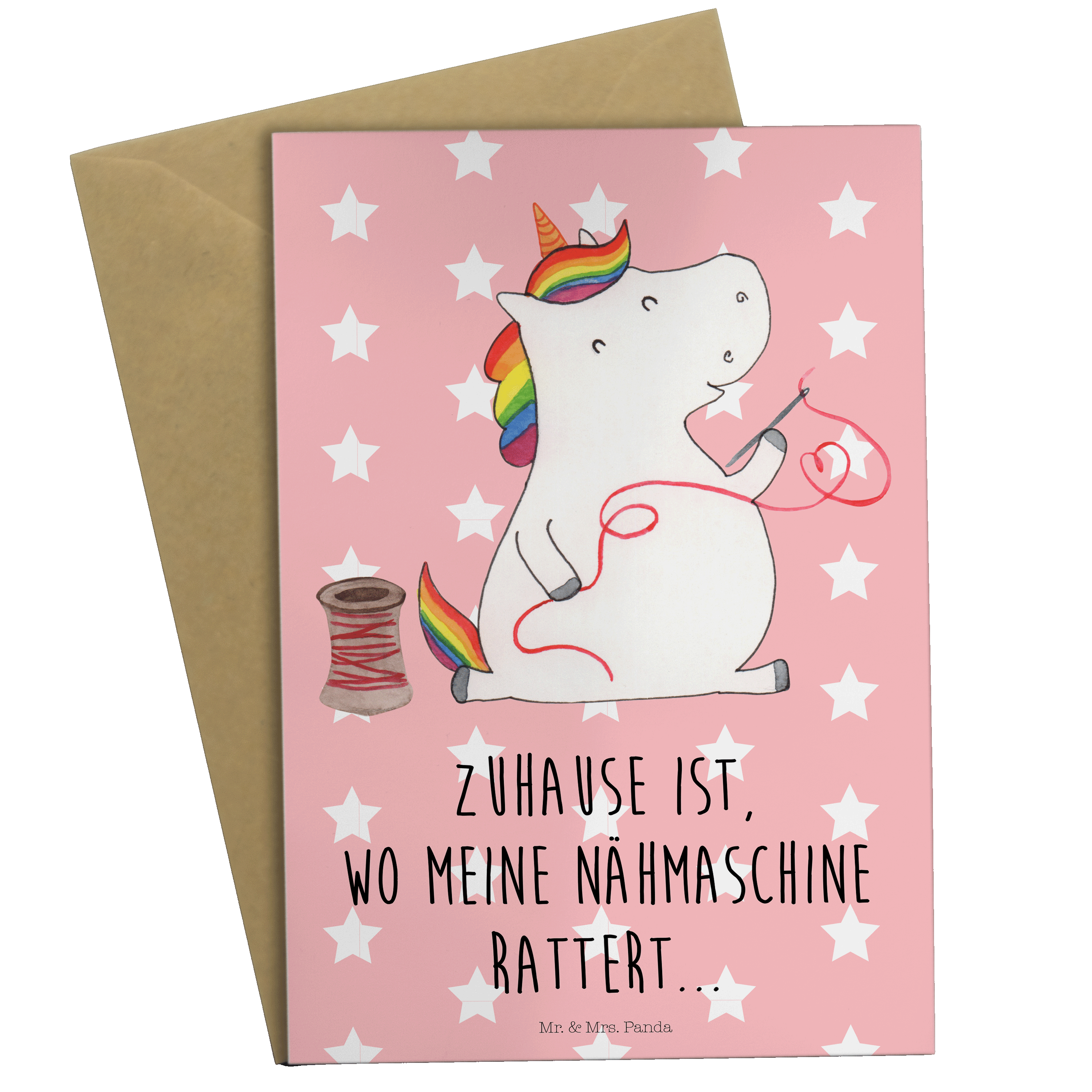 Grußkarte Einhorn Näherin - mit Spruch - Rot Pastell