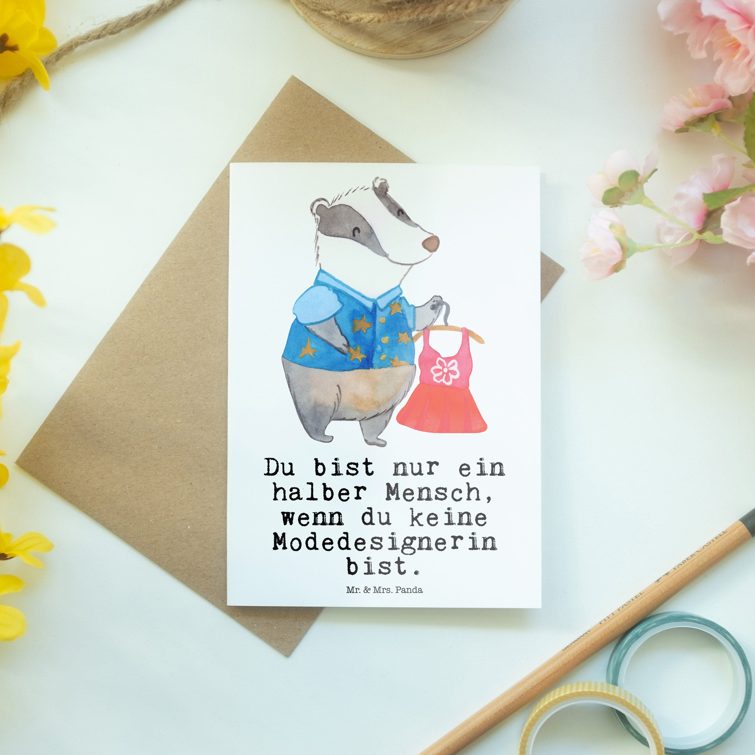 Unsere Mr. & Mrs. Panda Grußkarte zeichnet sich durch ihre besonders hochwertige Verarbeitung aus. Der Druck erfolgt mit erstklassigen Tinten, die 40 Jahre UV-Lichtbeständigkeit versprechen. Die blanko Innenseiten geben dir Platz für deine kreativen Ideen. Schreibe Texte, verfasse Gedichte oder male Bilder, tu’ was immer dir gefällt. Wir haben wunderschöne Motive, die Mrs. Panda von Hand gemalt hat für jeden Anlass. Finde weitere schöne Karten für die Hochzeit, Geburtstag, Babyfeier, Abschluss, Abitur, Ostern, Weihnachten, Taufe oder auch als Gutscheinkarte oder für ein Geldgeschenk. Wähle einfach dein Lieblingsmotiv aus, versehe die Karte mit liebevollen Worten und fertig ist deine persönliche Grußkarte für einen lieben Menschen! Wir haben Karten mit den verschiedensten lustigen Sprüchen für jeden Anlass.