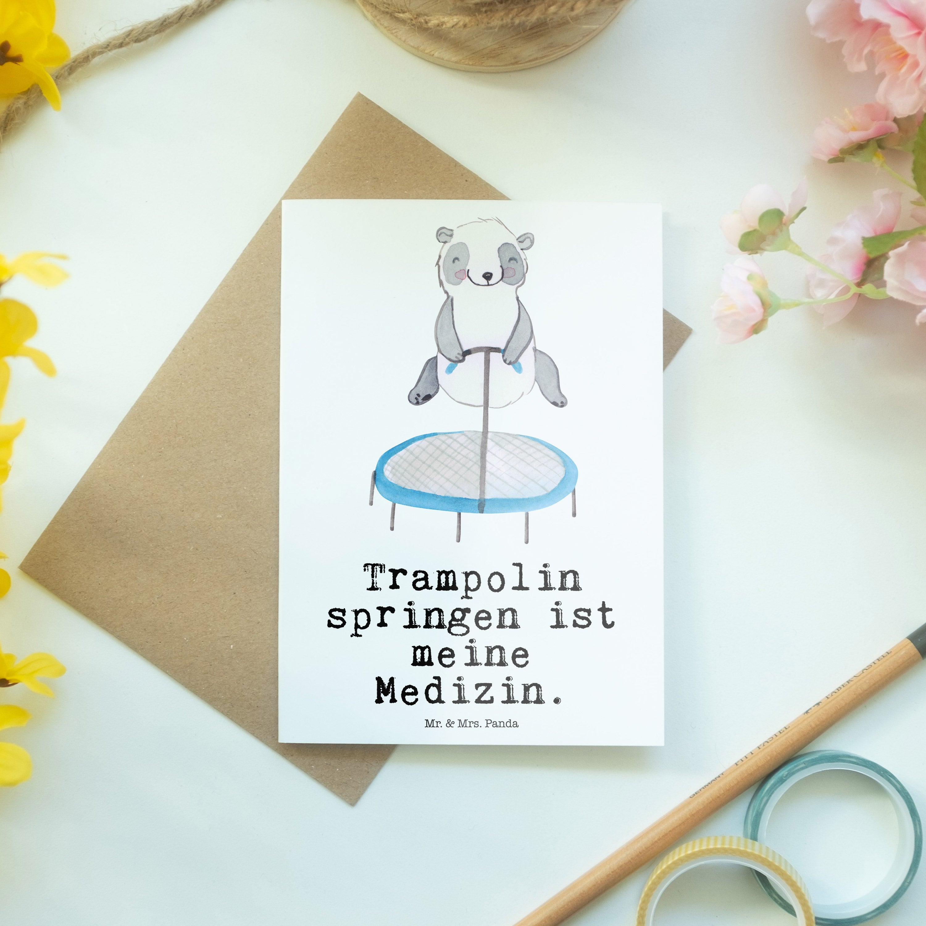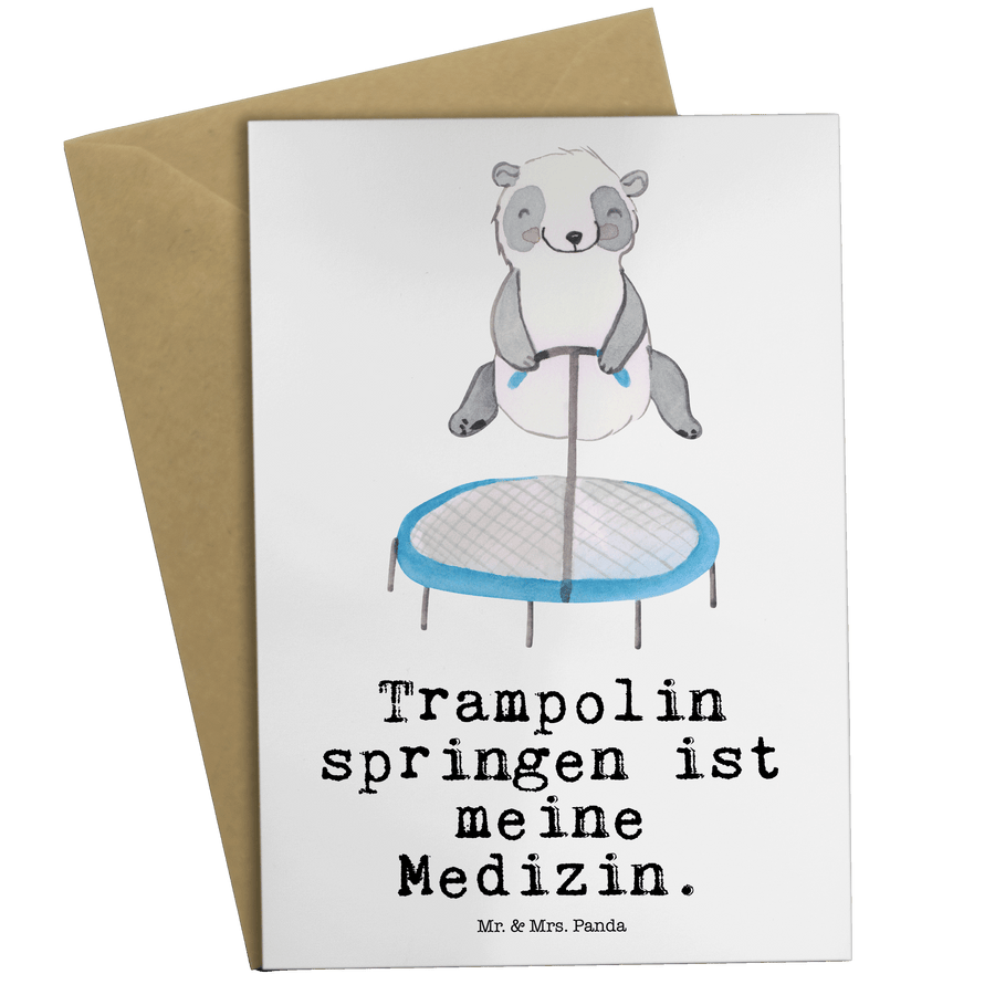 Grußkarte Panda Trampolin springen Medizin Klappkarte, Einladungskarte, Glückwunschkarte, Hochzeitskarte, Geburtstagskarte, Karte, Geschenk, Sport, Sportart, Hobby, Schenken, Danke, Dankeschön, Auszeichnung, Gewinn, Sportler, Trampolin springen, Trampolin Springen, Trampolin Turnen, Fitnessstudio, Trampolin-Übungen, Trampolin-Workout