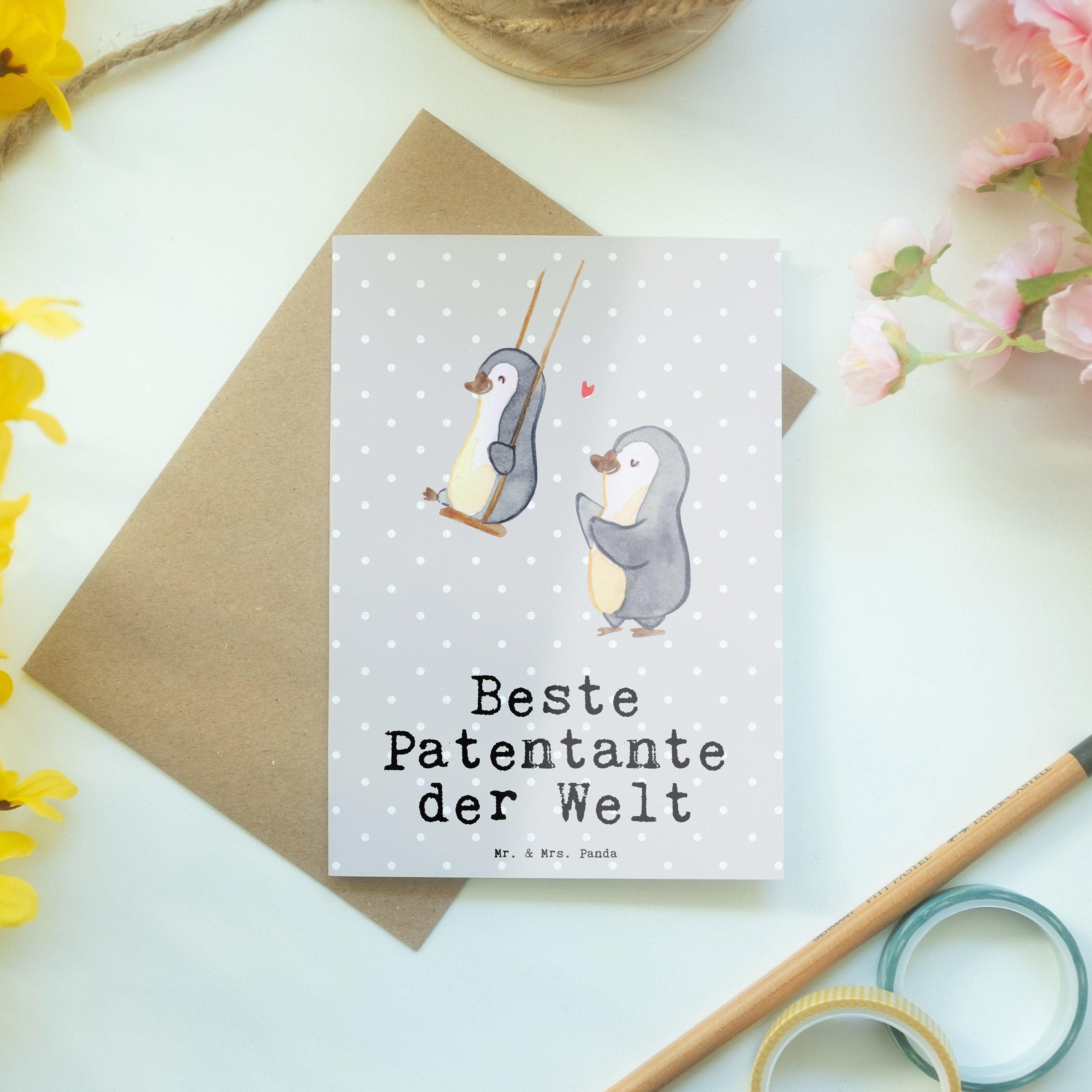 Grußkarte Pinguin Beste Patentante der Welt - Grau Pastell