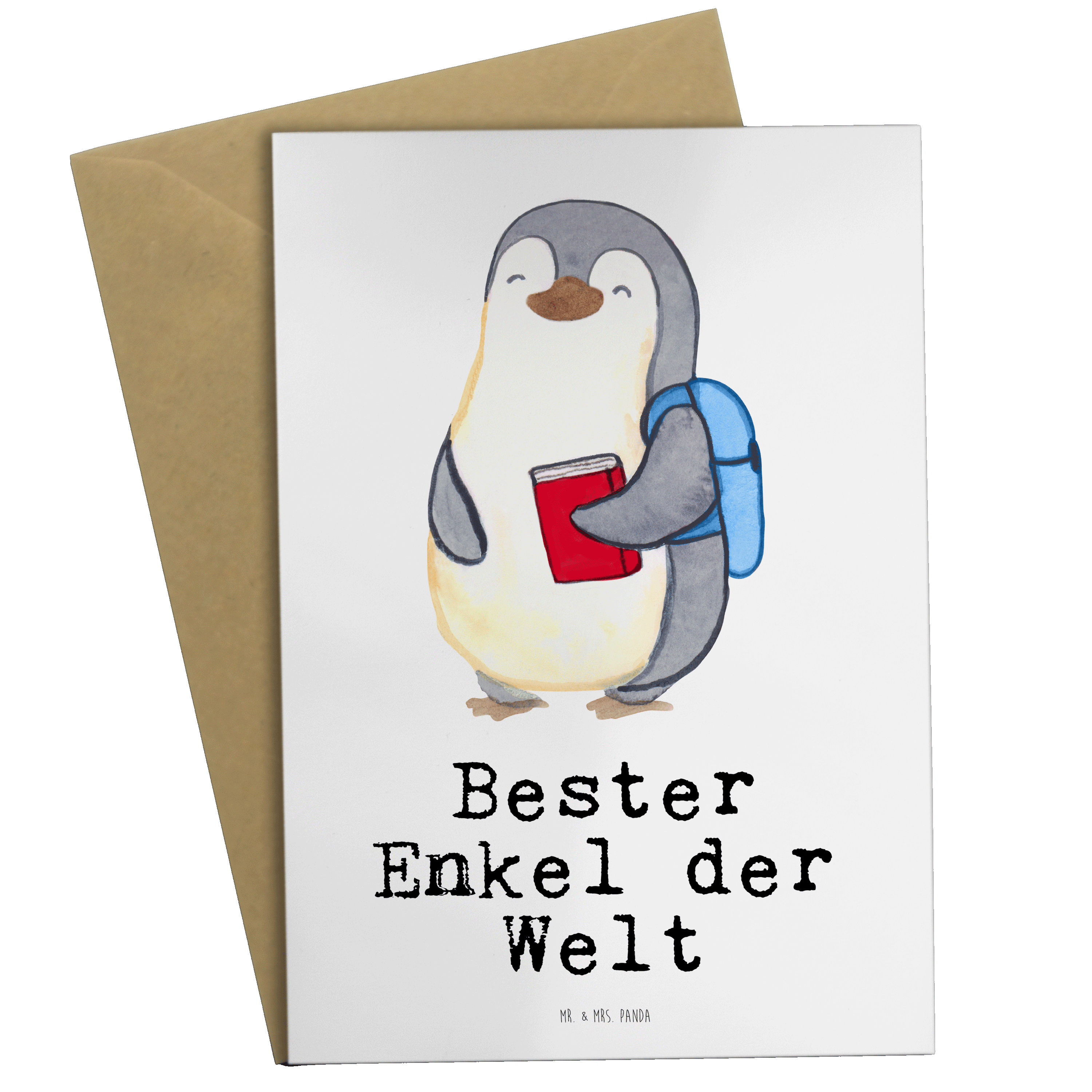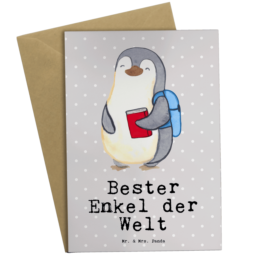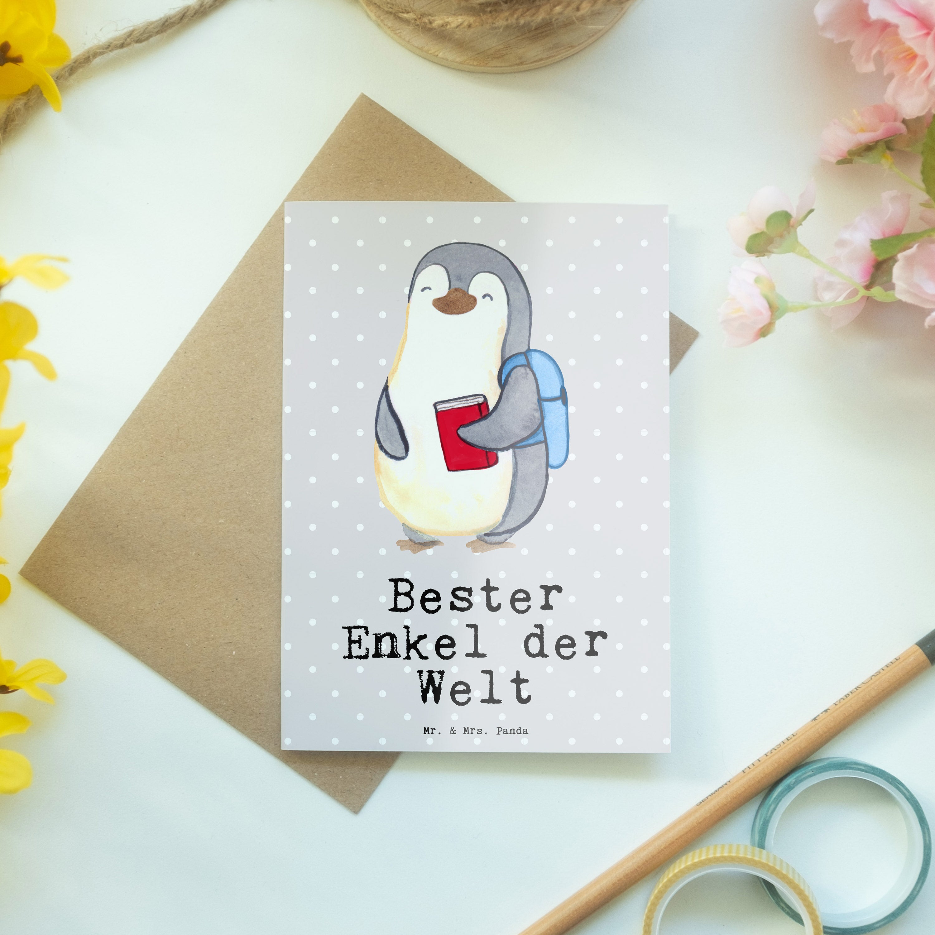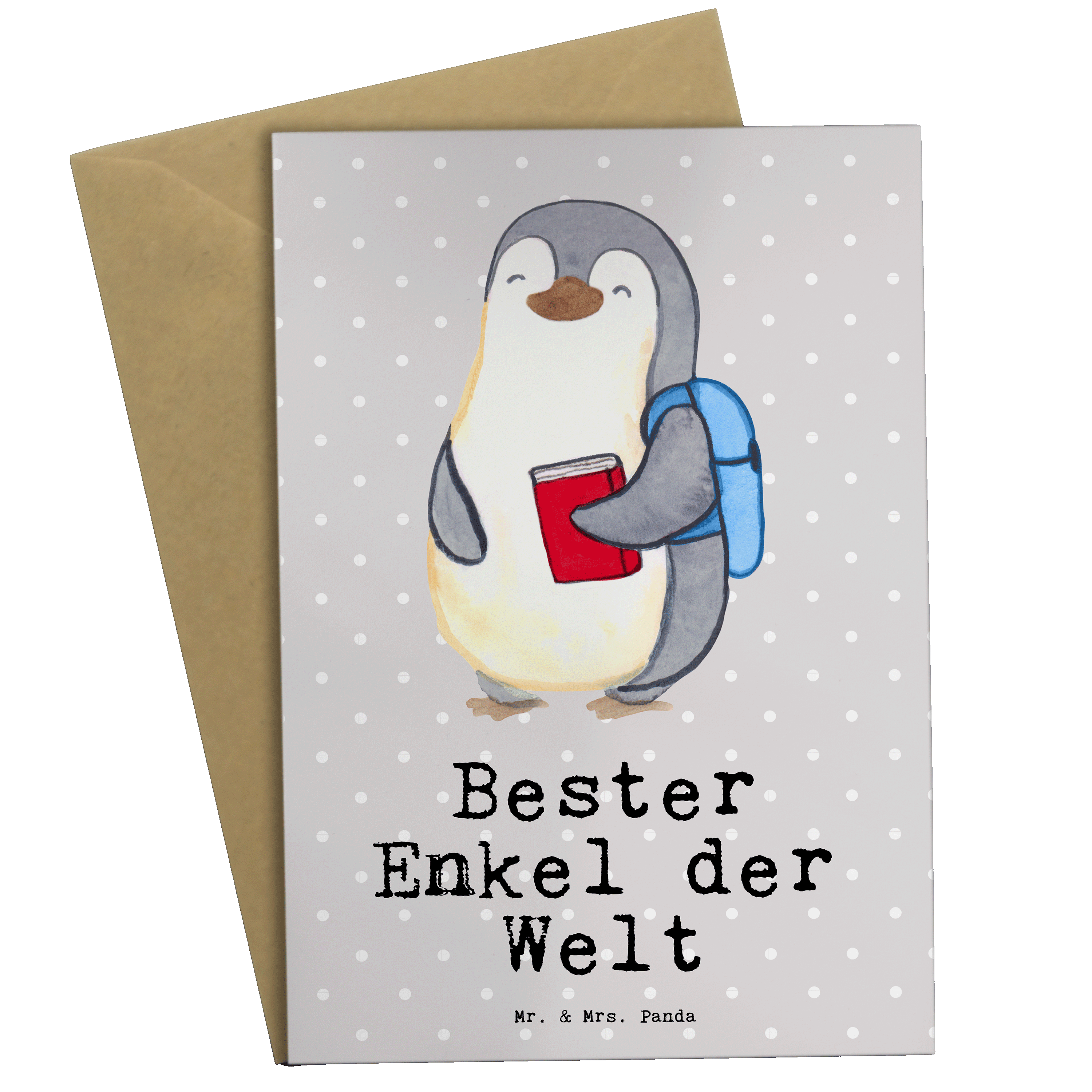 Grußkarte Pinguin Bester Enkel der Welt - Grau Pastell