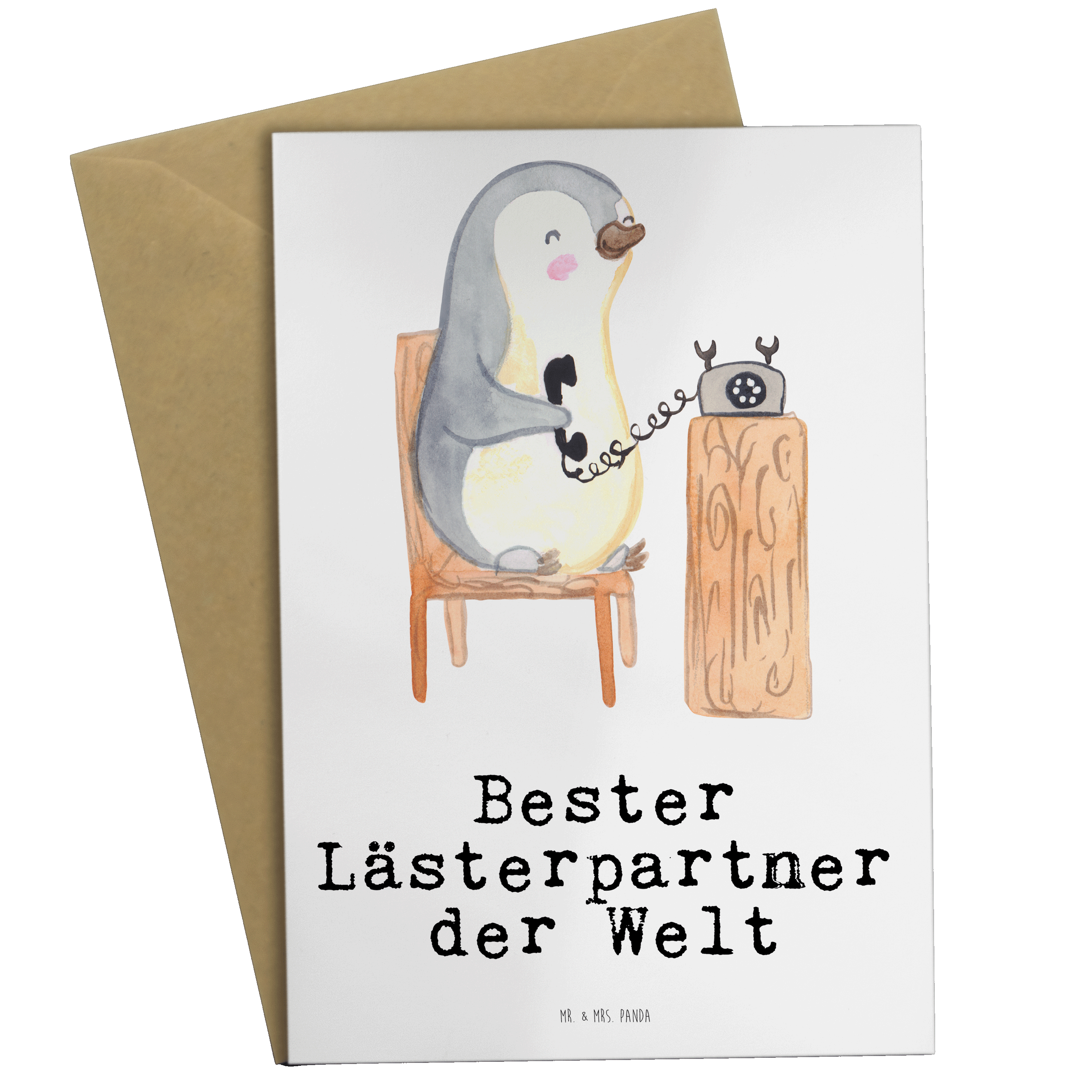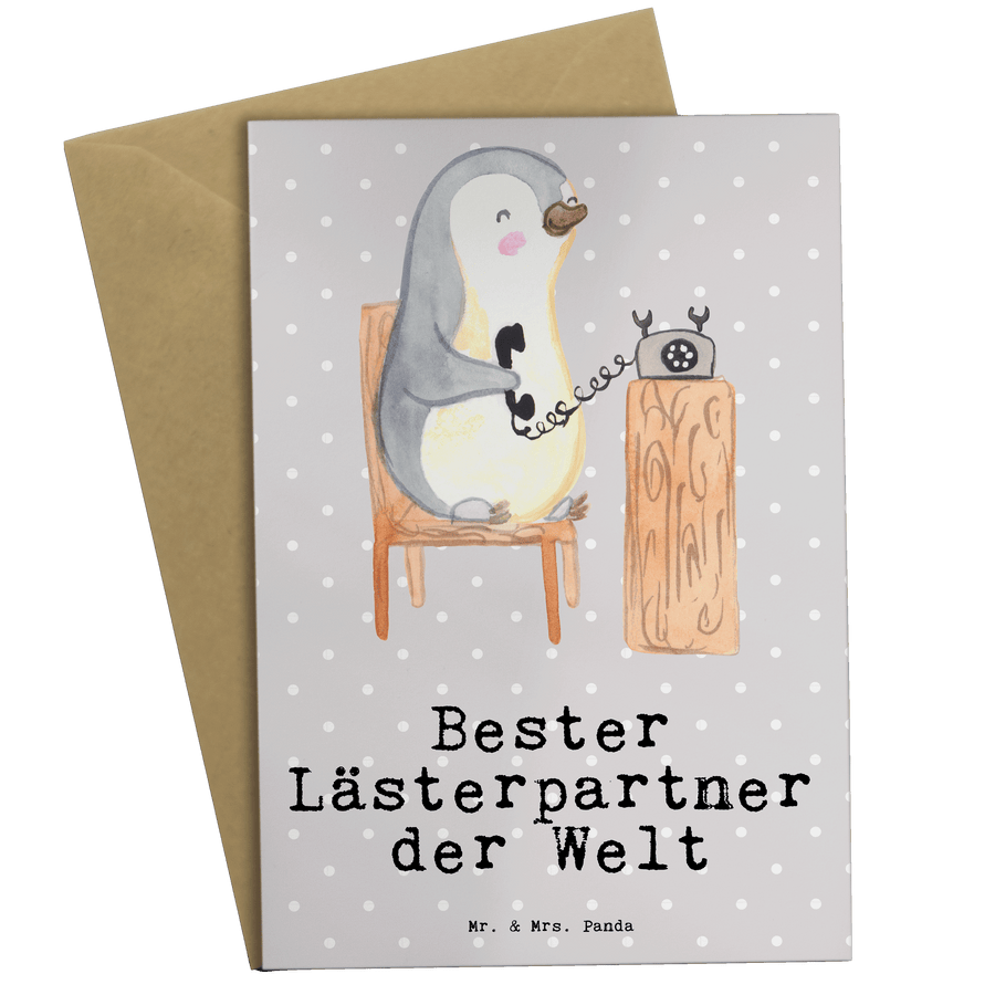 Grußkarte Pinguin Bester Lästerpartner der Welt - Grau Pastell