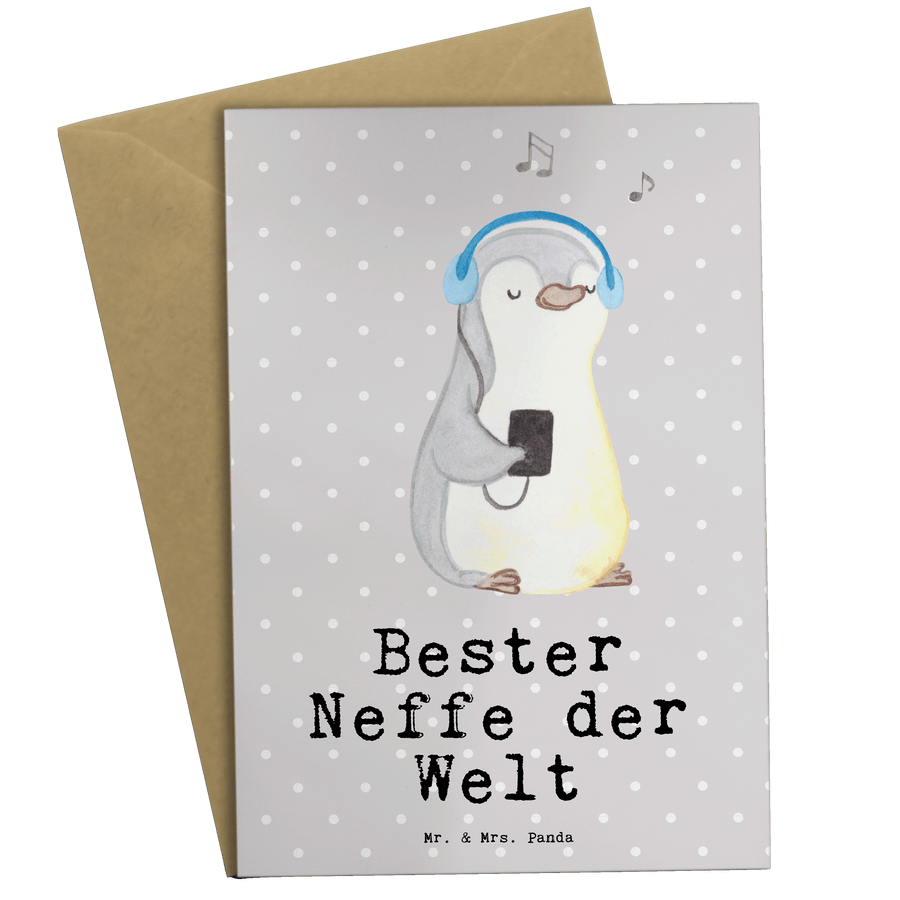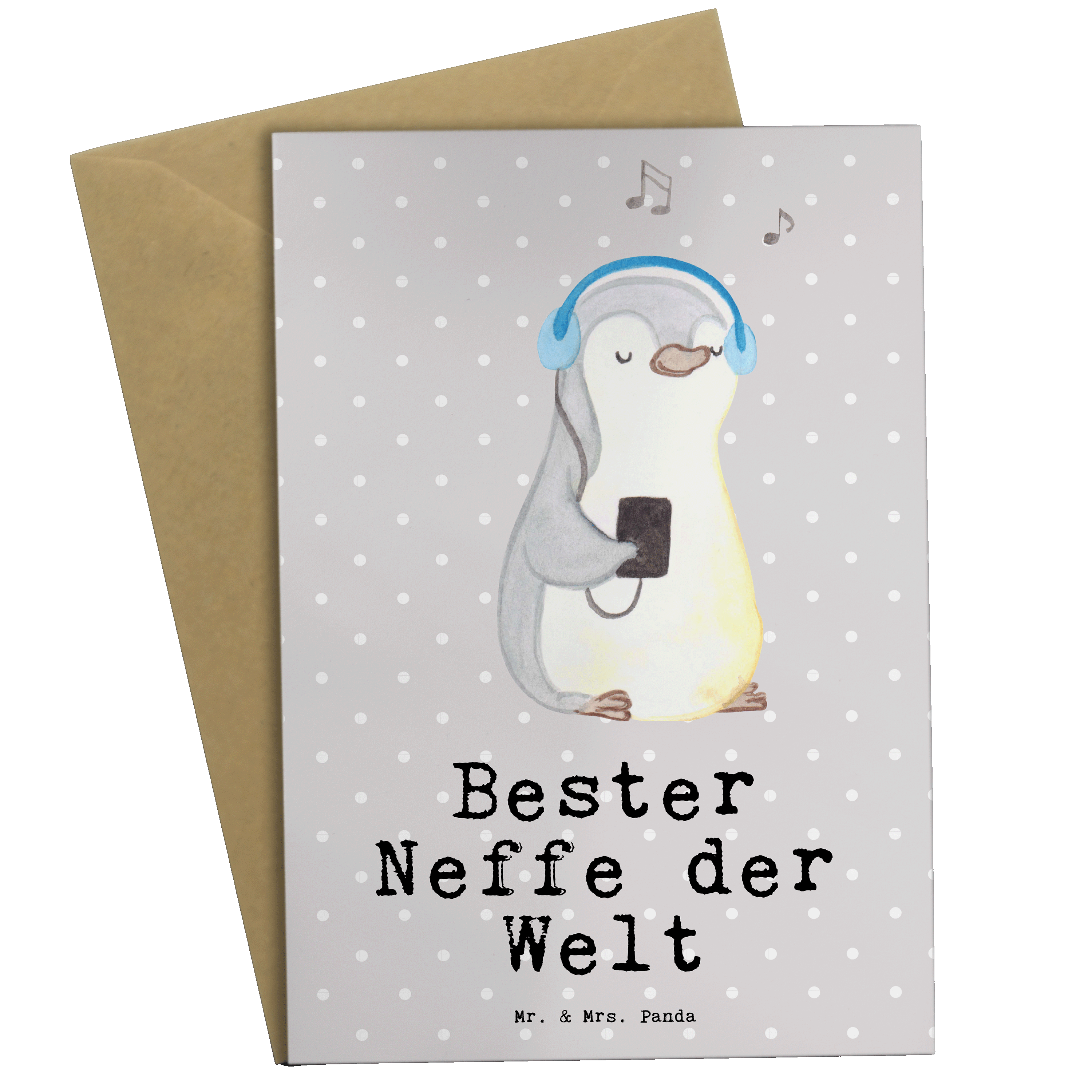 Grußkarte Pinguin Bester Neffe der Welt - Grau Pastell